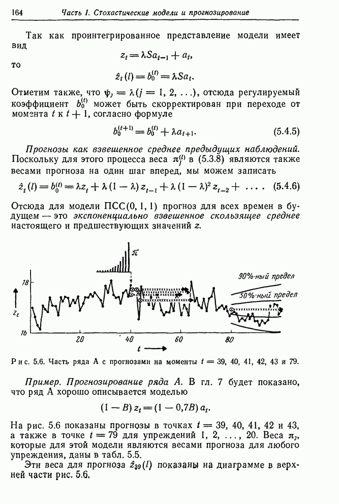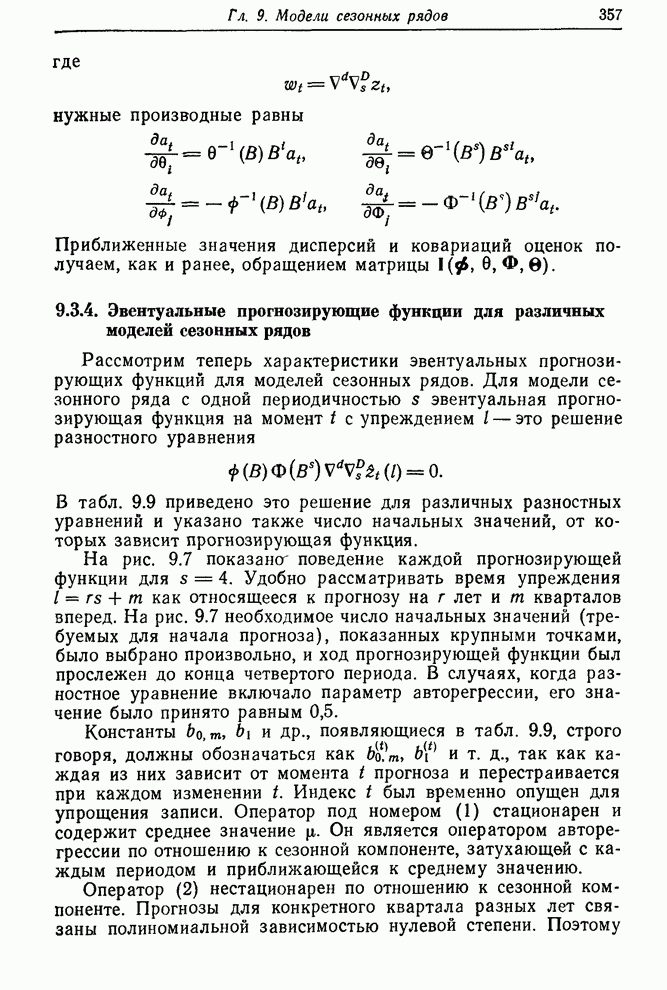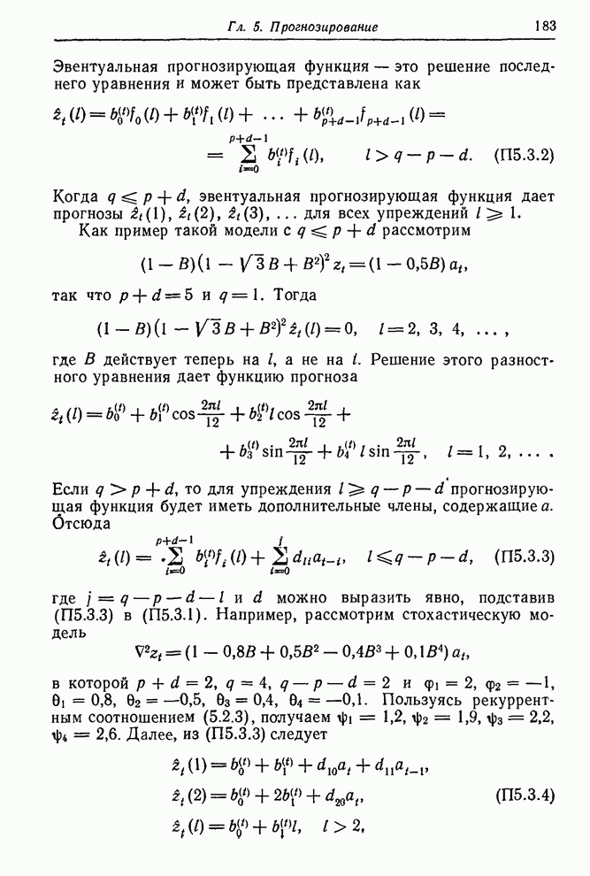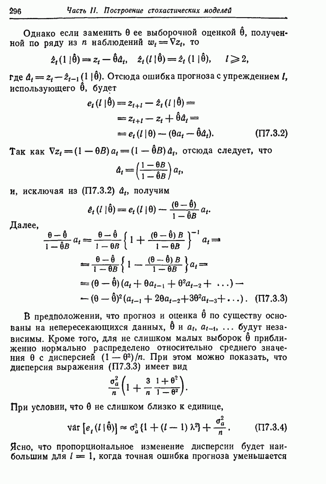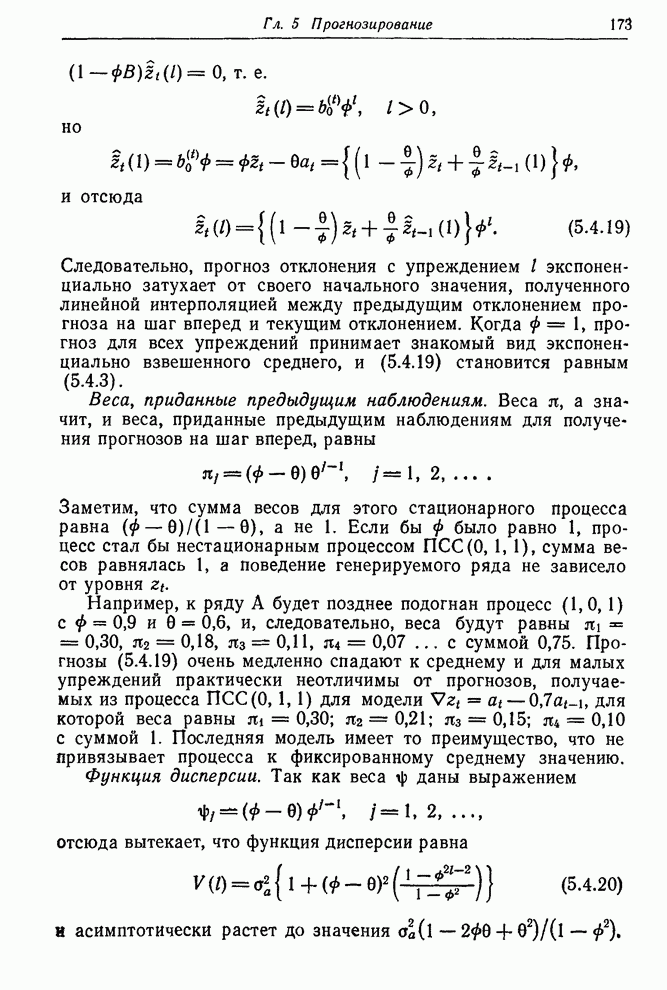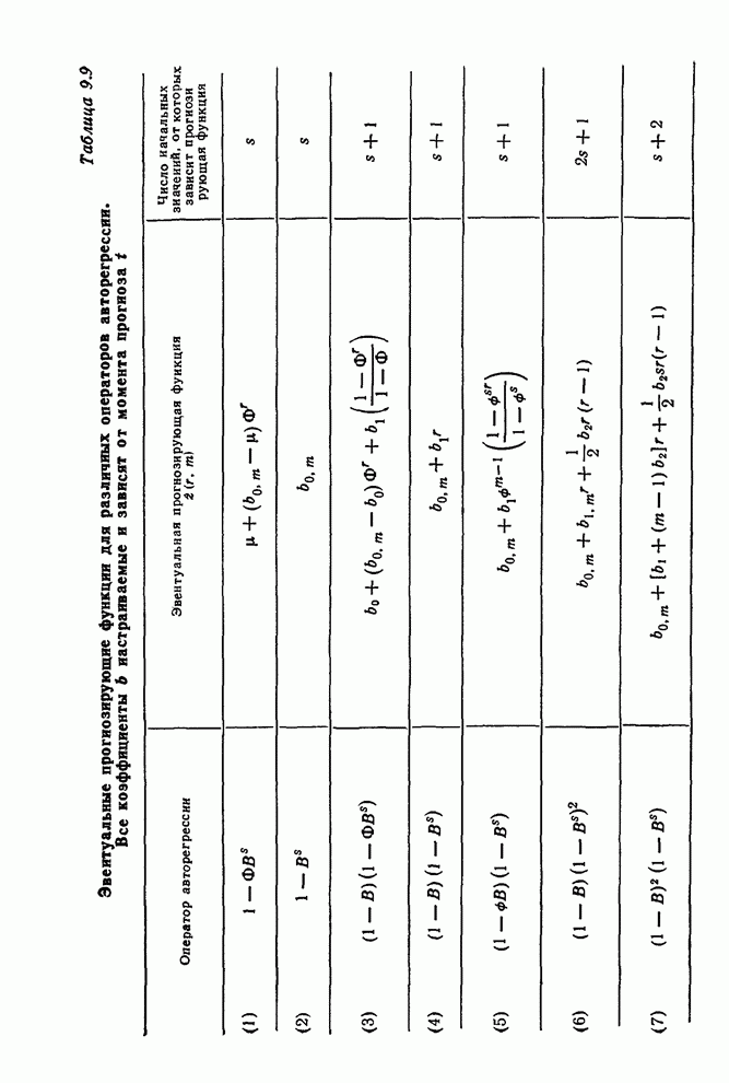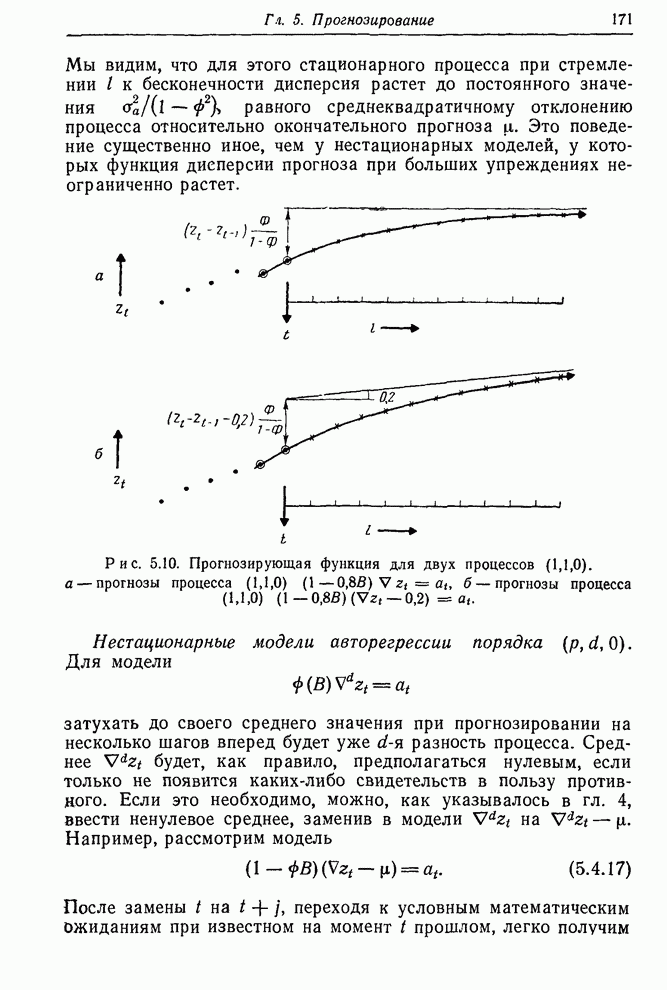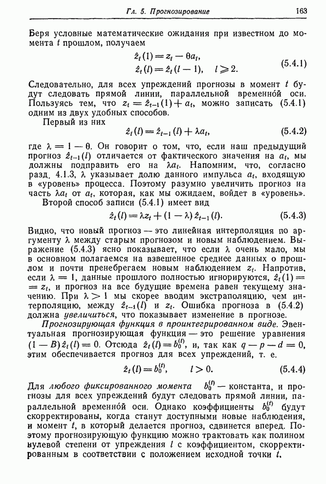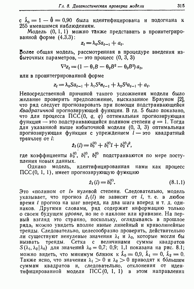 Рисунок 9 2 Ряд Прогнозирующая функция, ее коррекция и дисперсия ошибки прогноза. Как говорилось в гл. 5, способ разностного уравнения наиболее прост и удобен для фактического вычисления и коррекции прогнозов. Однако само разностное уравнение не объясняет в достаточной степени природу вычисляемых с его помощью прогнозов и характер коррекции. Чтобы оценить эти аспекты (а не предложить еще одну вычислительную процедуру), рассмотрим теперь прогнозирование с других точек зрения. Прогнозирующая функция. Используя (5.1.12), получаем