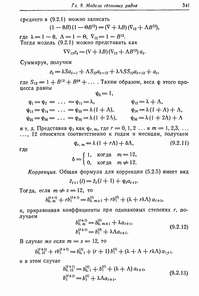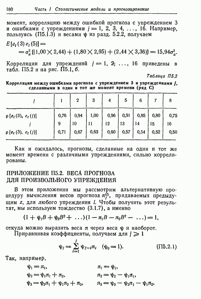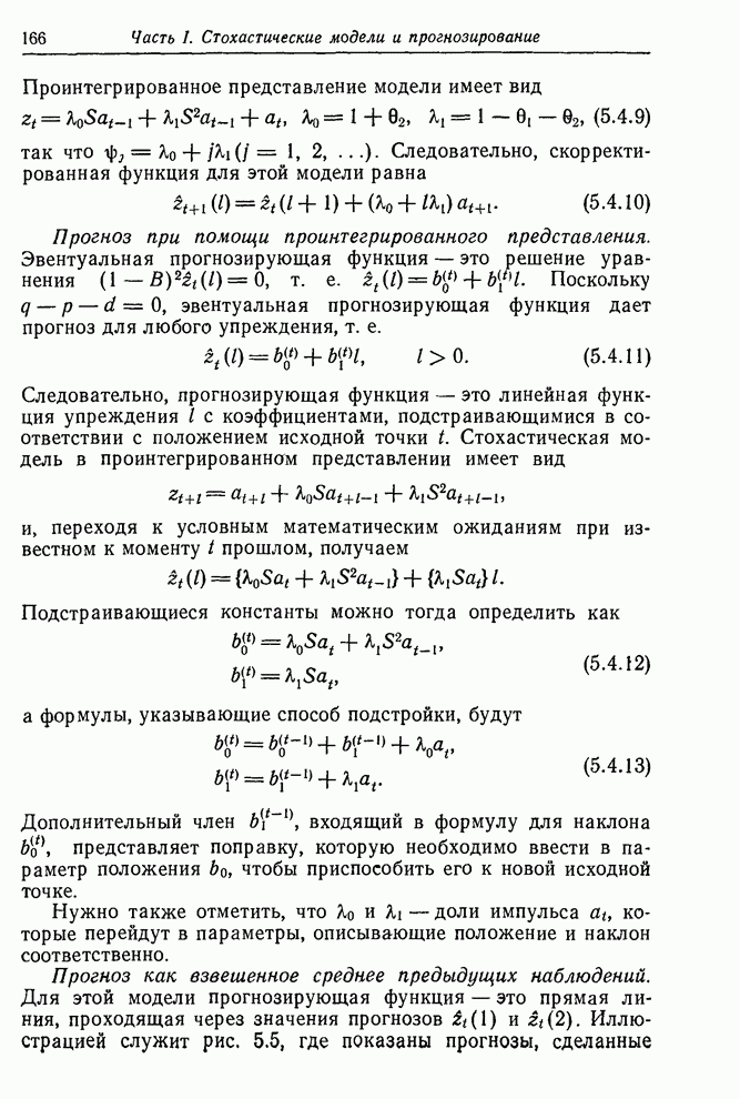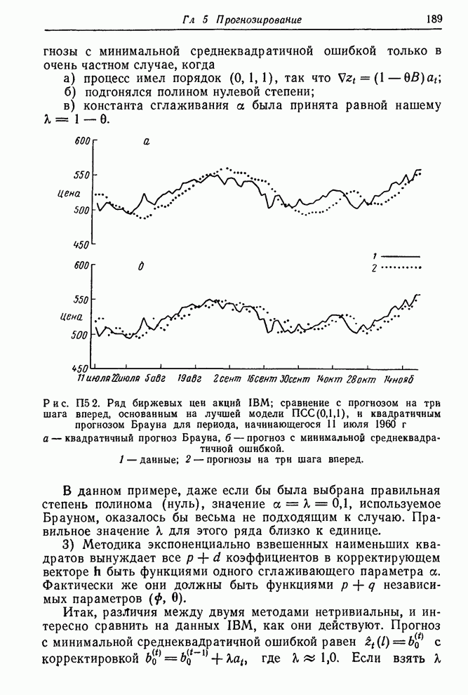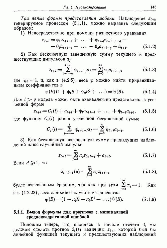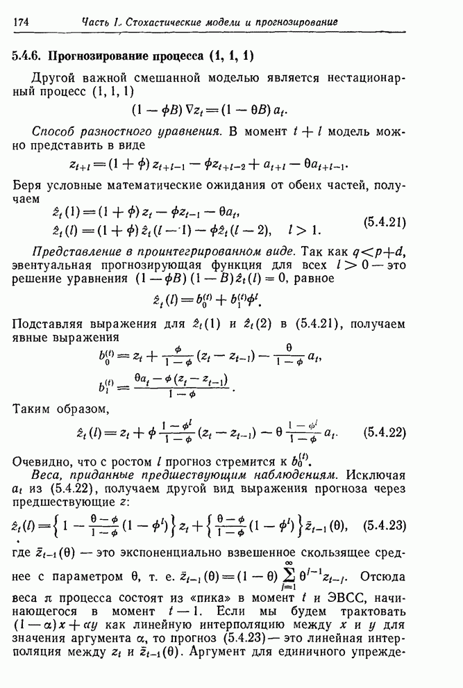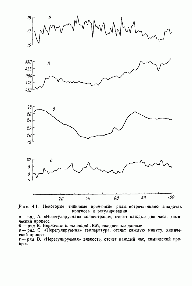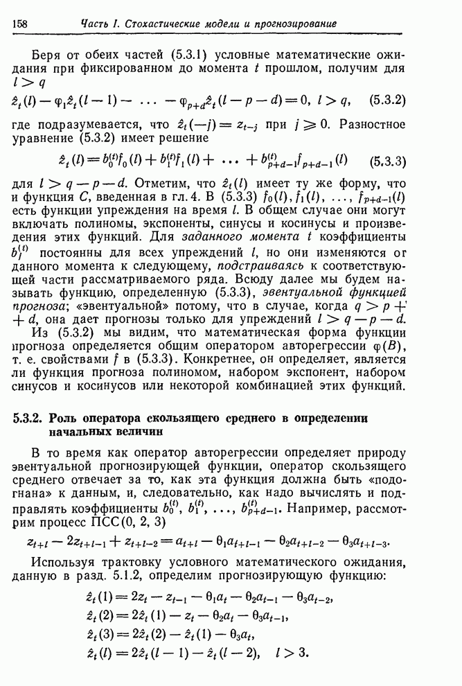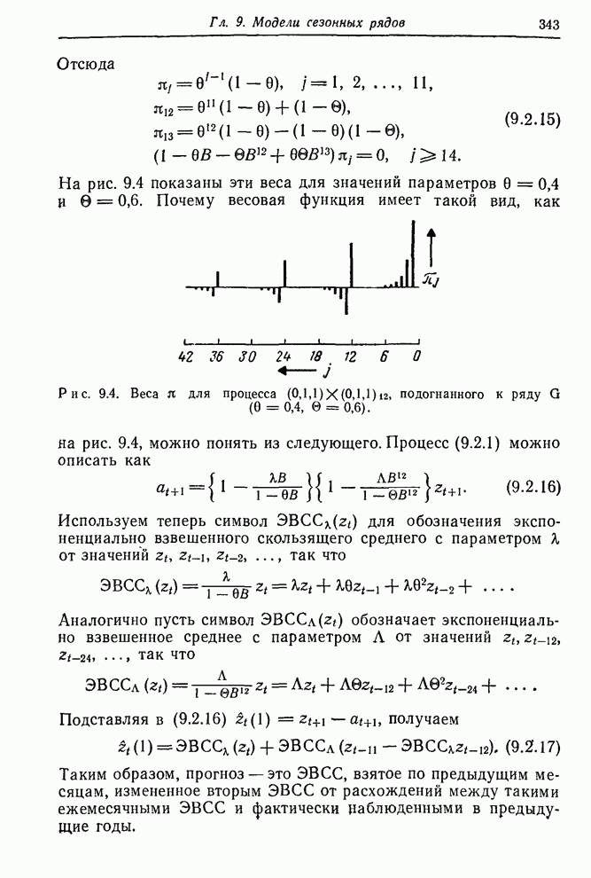 Рисунок 9 2 Ряд Прогнозирующая функция, ее коррекция и дисперсия ошибки прогноза. Как говорилось в гл. 5, способ разностного уравнения наиболее прост и удобен для фактического вычисления и коррекции прогнозов. Однако само разностное уравнение не объясняет в достаточной степени природу вычисляемых с его помощью прогнозов и характер коррекции. Чтобы оценить эти аспекты (а не предложить еще одну вычислительную процедуру), рассмотрим теперь прогнозирование с других точек зрения. Прогнозирующая функция. Используя (5.1.12), получаем
