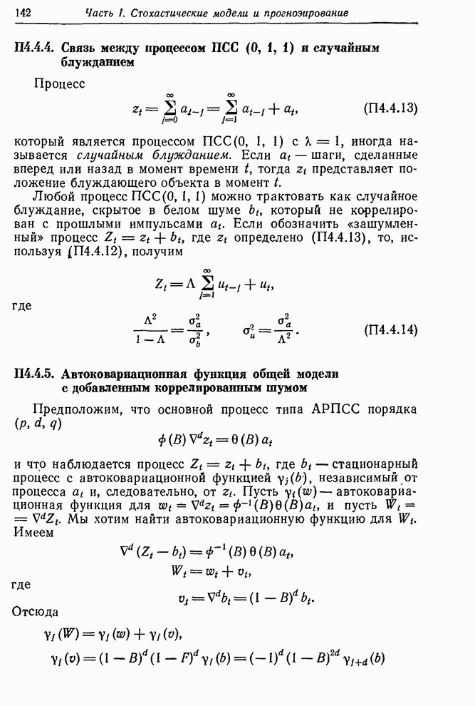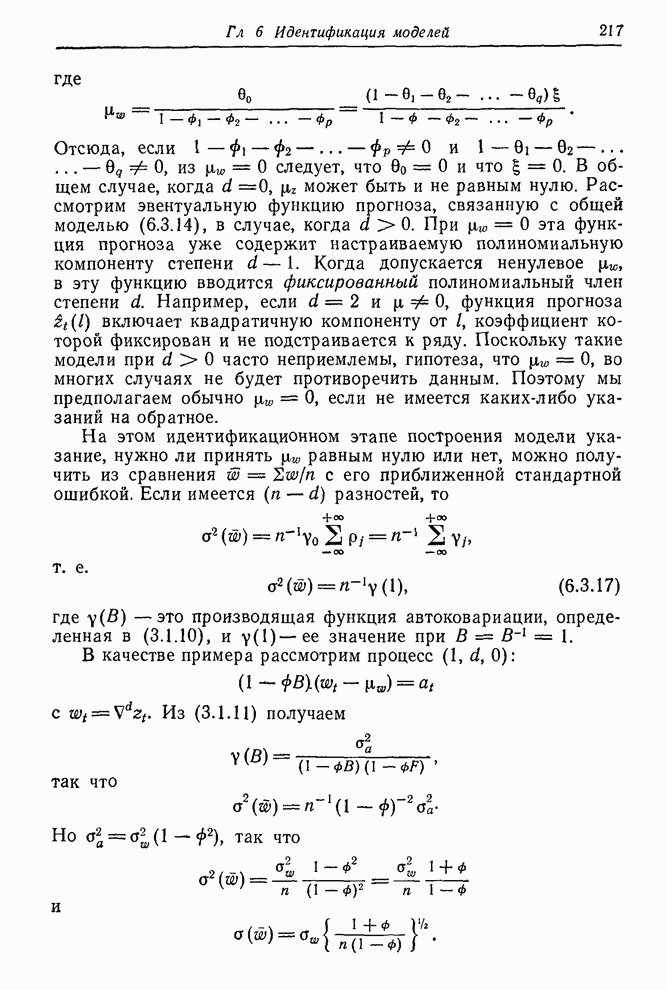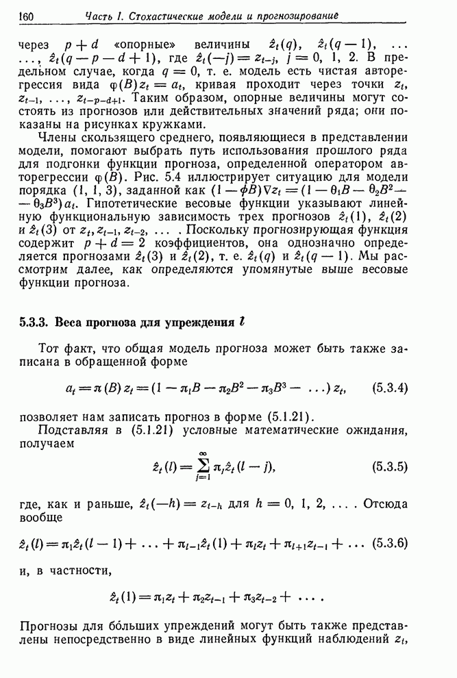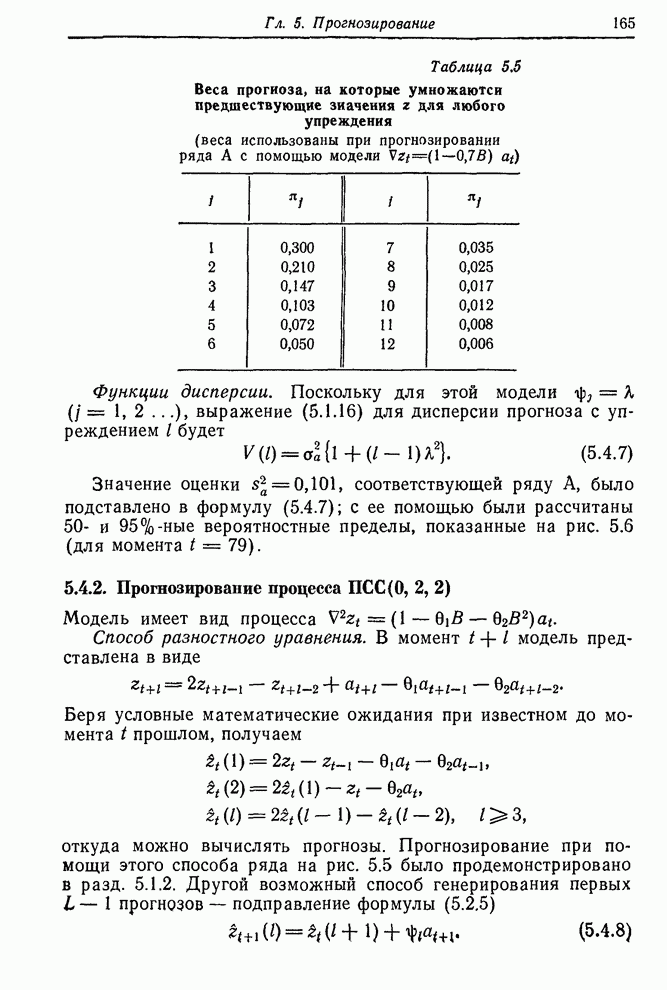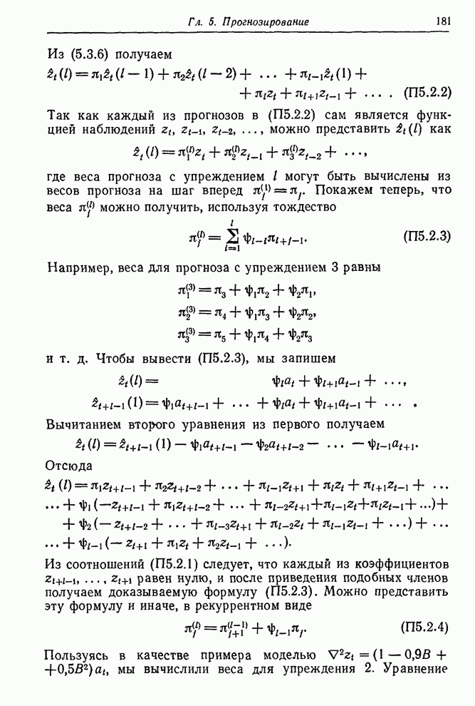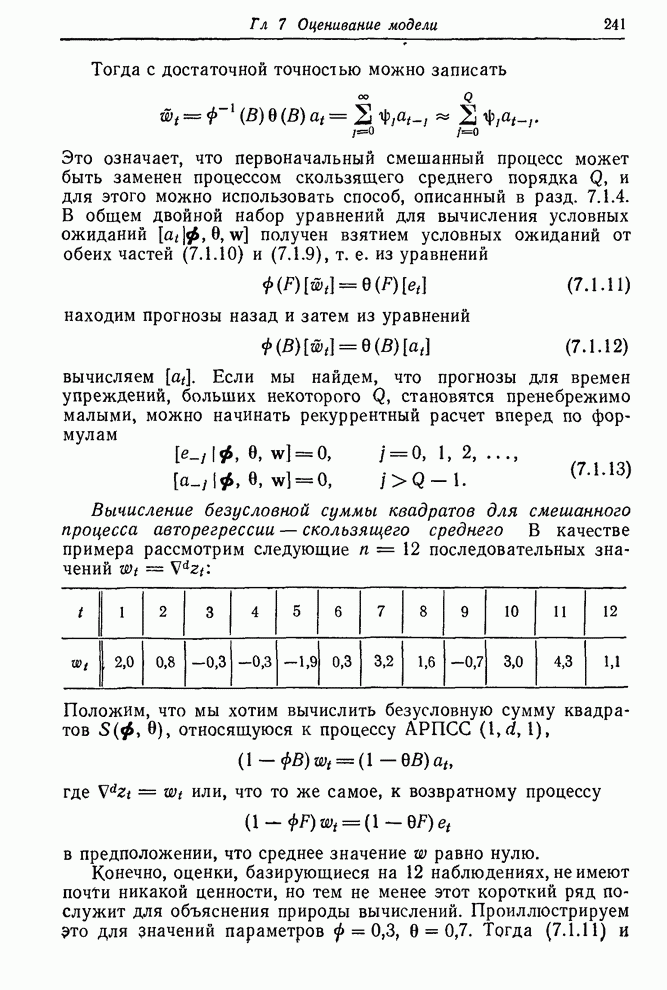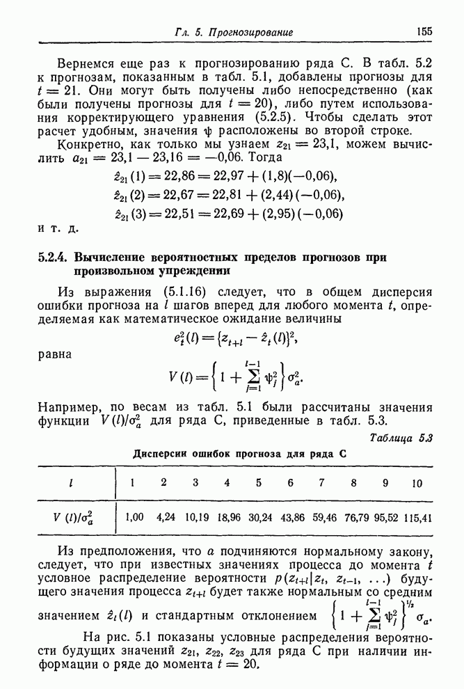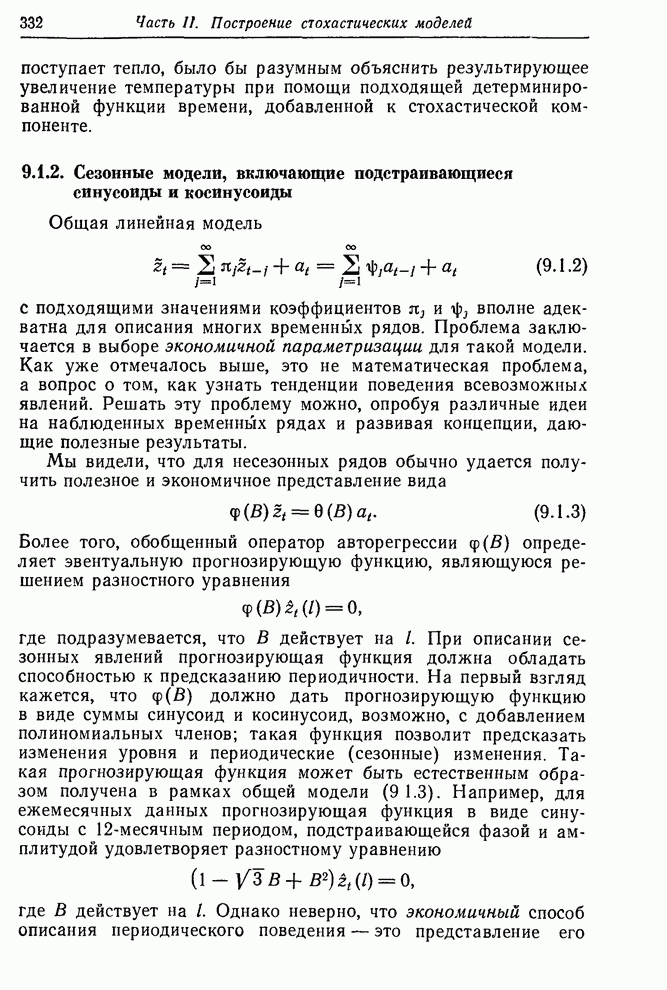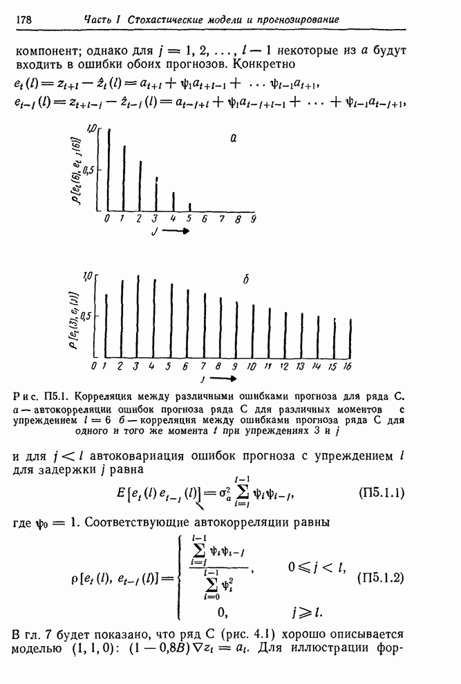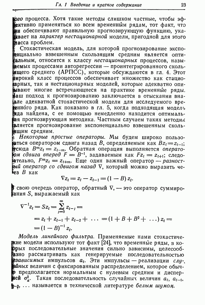 Рисунок 9 2 Ряд Прогнозирующая функция, ее коррекция и дисперсия ошибки прогноза. Как говорилось в гл. 5, способ разностного уравнения наиболее прост и удобен для фактического вычисления и коррекции прогнозов. Однако само разностное уравнение не объясняет в достаточной степени природу вычисляемых с его помощью прогнозов и характер коррекции. Чтобы оценить эти аспекты (а не предложить еще одну вычислительную процедуру), рассмотрим теперь прогнозирование с других точек зрения. Прогнозирующая функция. Используя (5.1.12), получаем