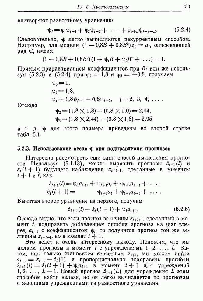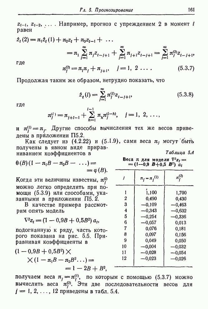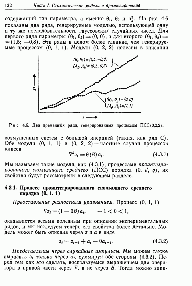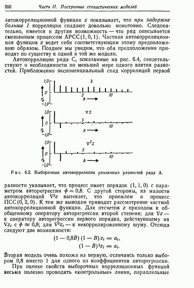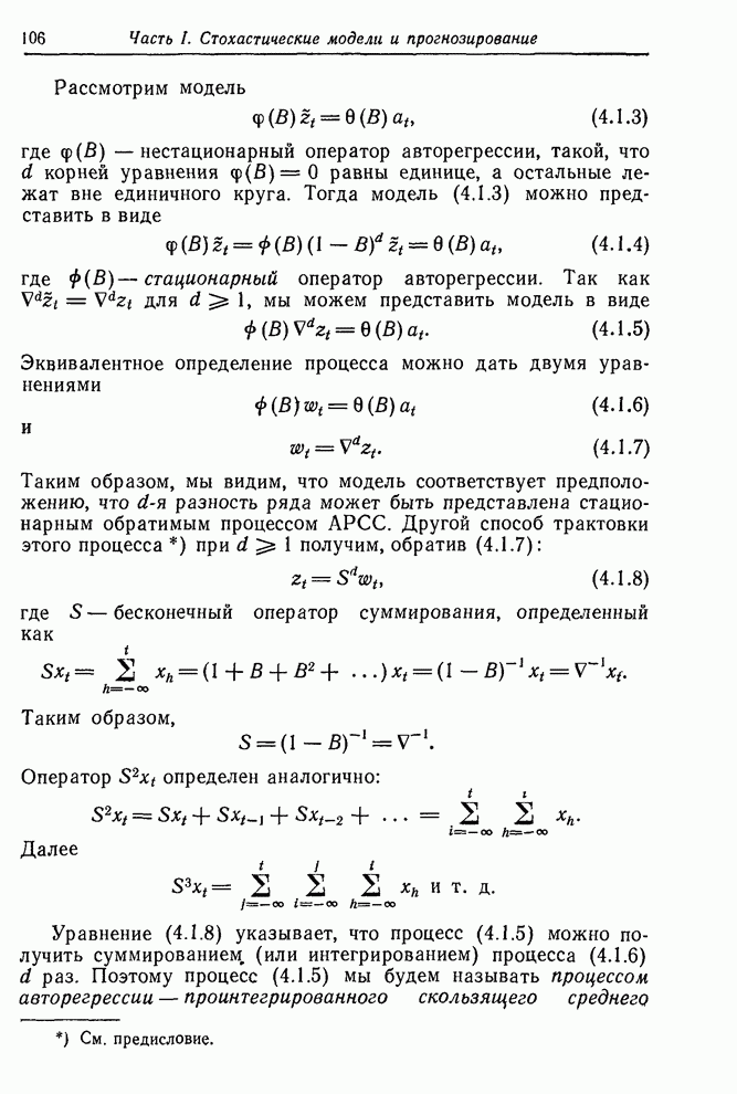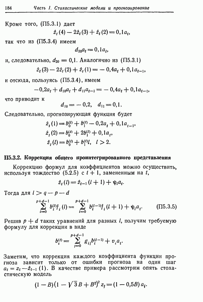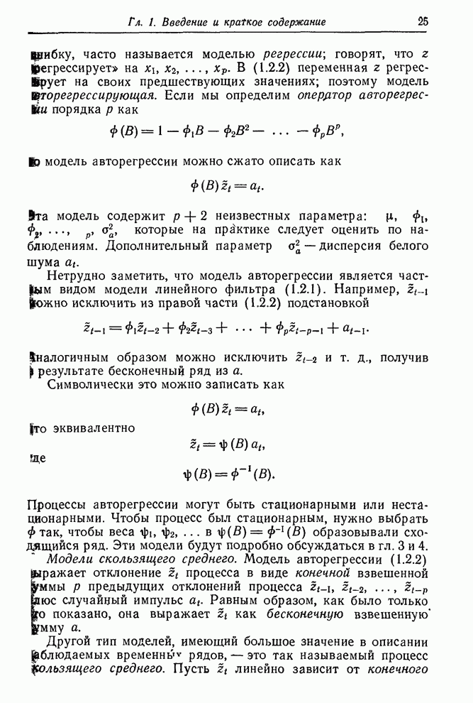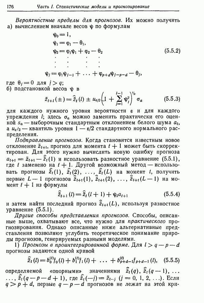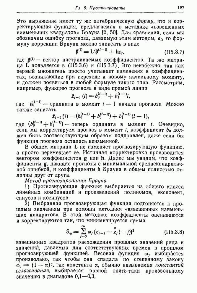 Рисунок 9 2 Ряд Прогнозирующая функция, ее коррекция и дисперсия ошибки прогноза. Как говорилось в гл. 5, способ разностного уравнения наиболее прост и удобен для фактического вычисления и коррекции прогнозов. Однако само разностное уравнение не объясняет в достаточной степени природу вычисляемых с его помощью прогнозов и характер коррекции. Чтобы оценить эти аспекты (а не предложить еще одну вычислительную процедуру), рассмотрим теперь прогнозирование с других точек зрения. Прогнозирующая функция. Используя (5.1.12), получаем