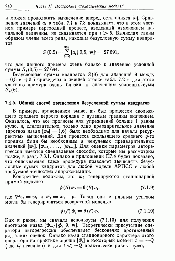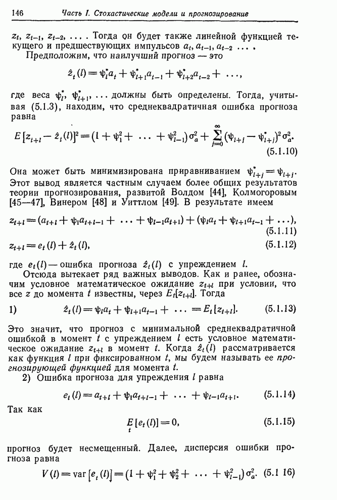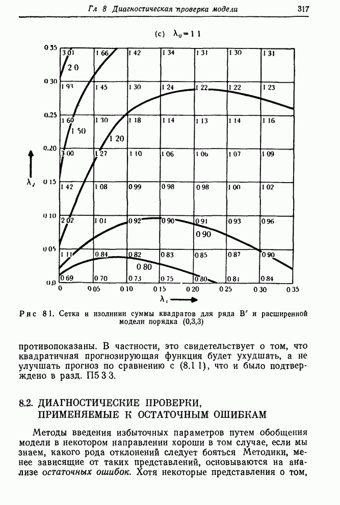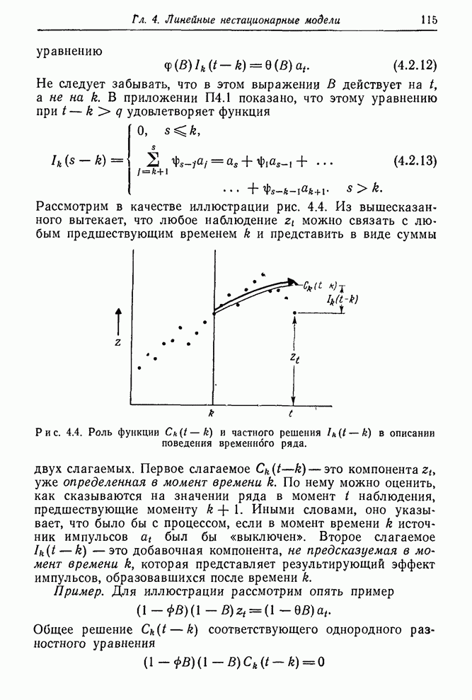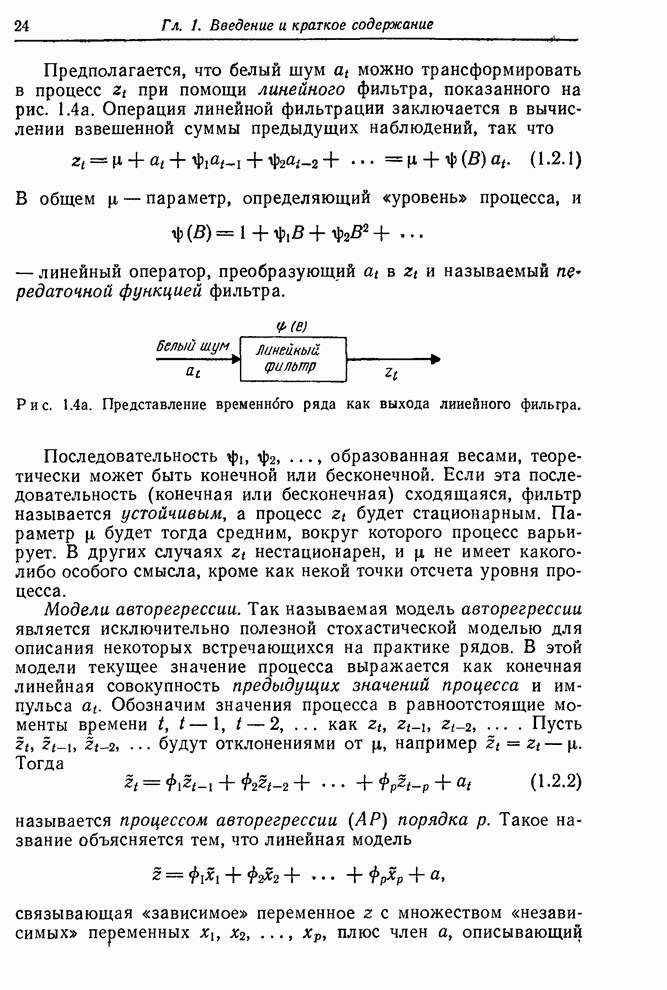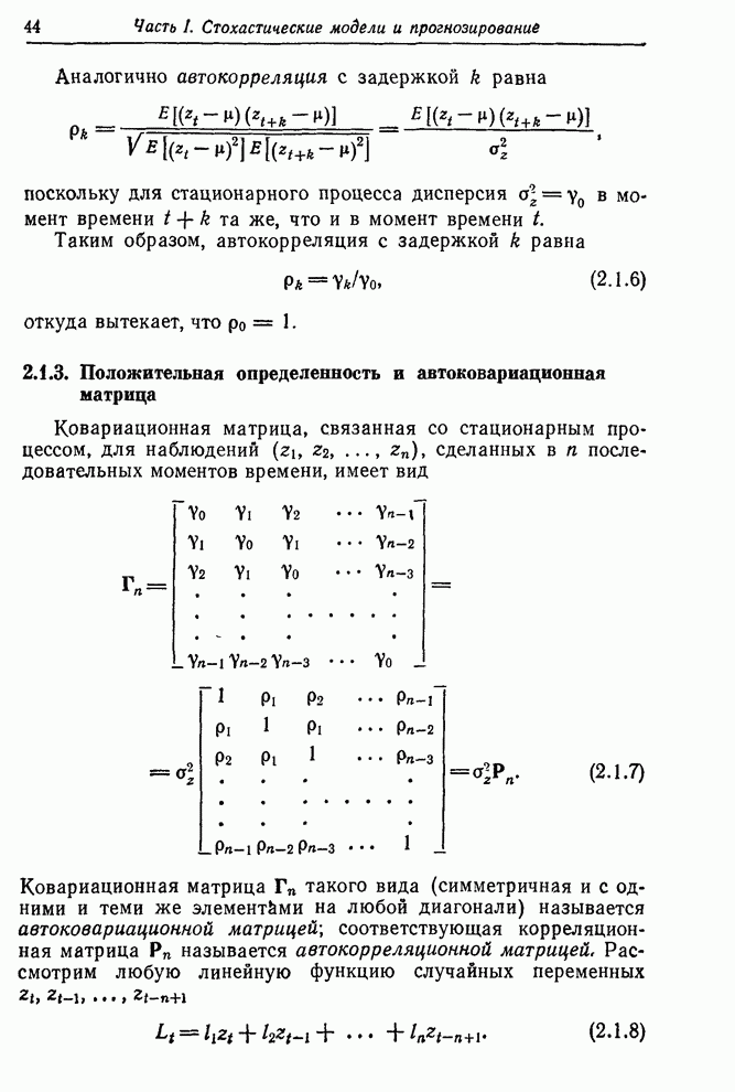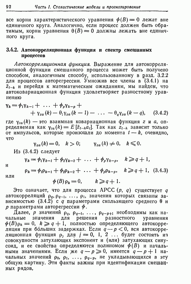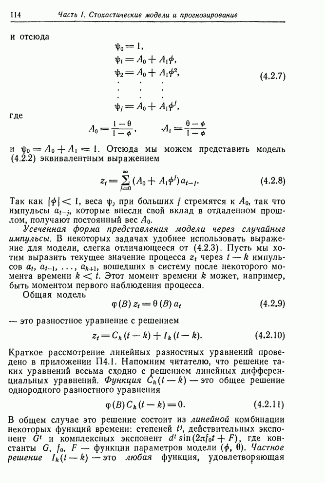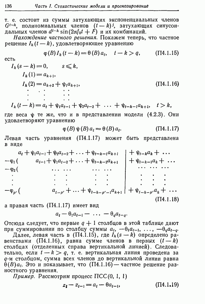 Рисунок 9 2 Ряд Прогнозирующая функция, ее коррекция и дисперсия ошибки прогноза. Как говорилось в гл. 5, способ разностного уравнения наиболее прост и удобен для фактического вычисления и коррекции прогнозов. Однако само разностное уравнение не объясняет в достаточной степени природу вычисляемых с его помощью прогнозов и характер коррекции. Чтобы оценить эти аспекты (а не предложить еще одну вычислительную процедуру), рассмотрим теперь прогнозирование с других точек зрения. Прогнозирующая функция. Используя (5.1.12), получаем