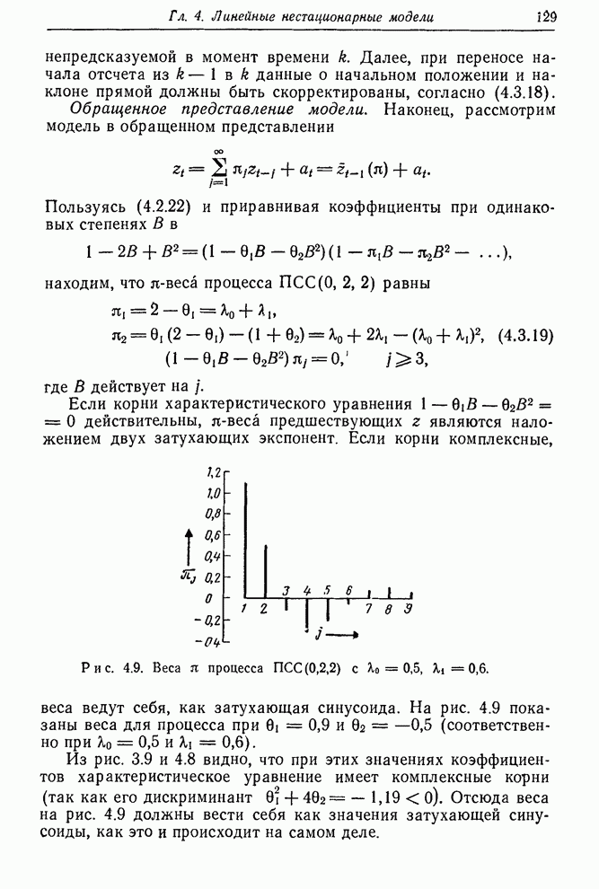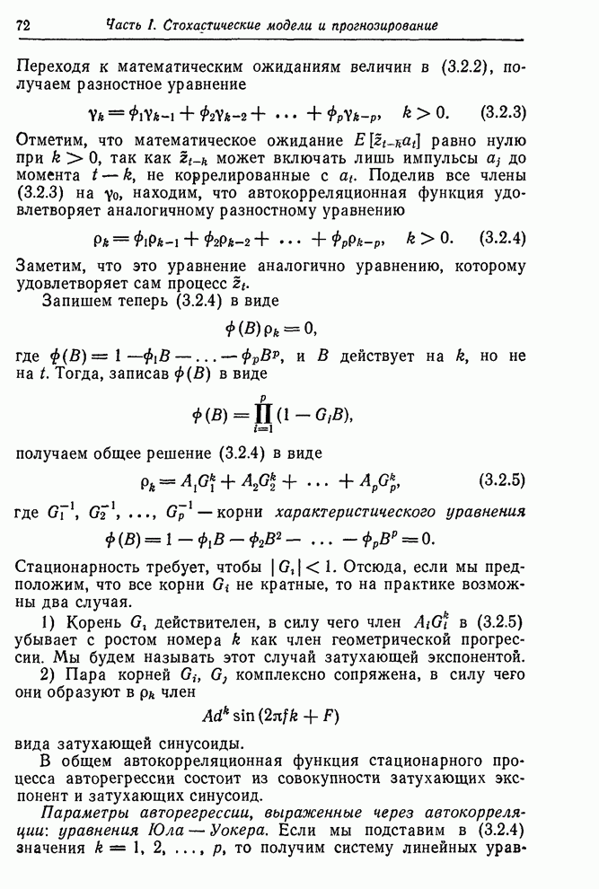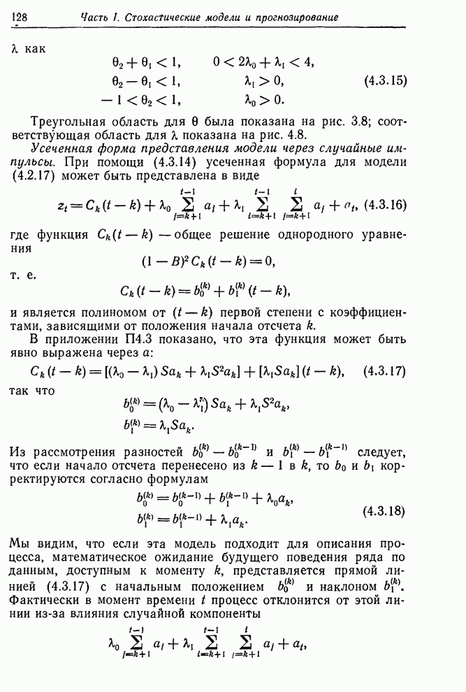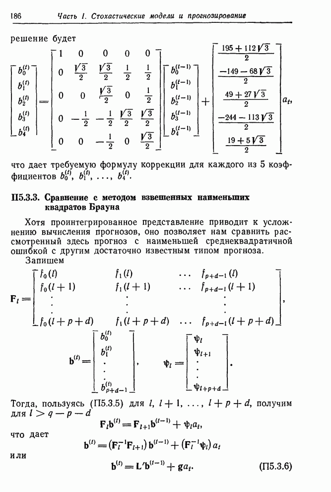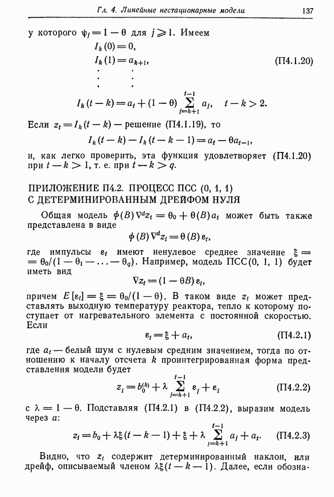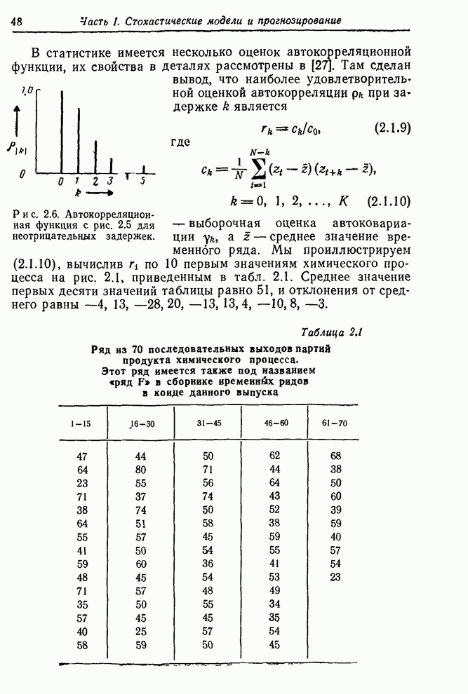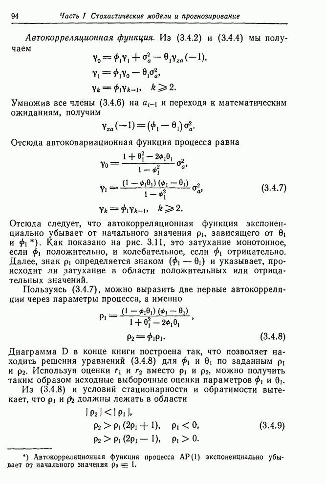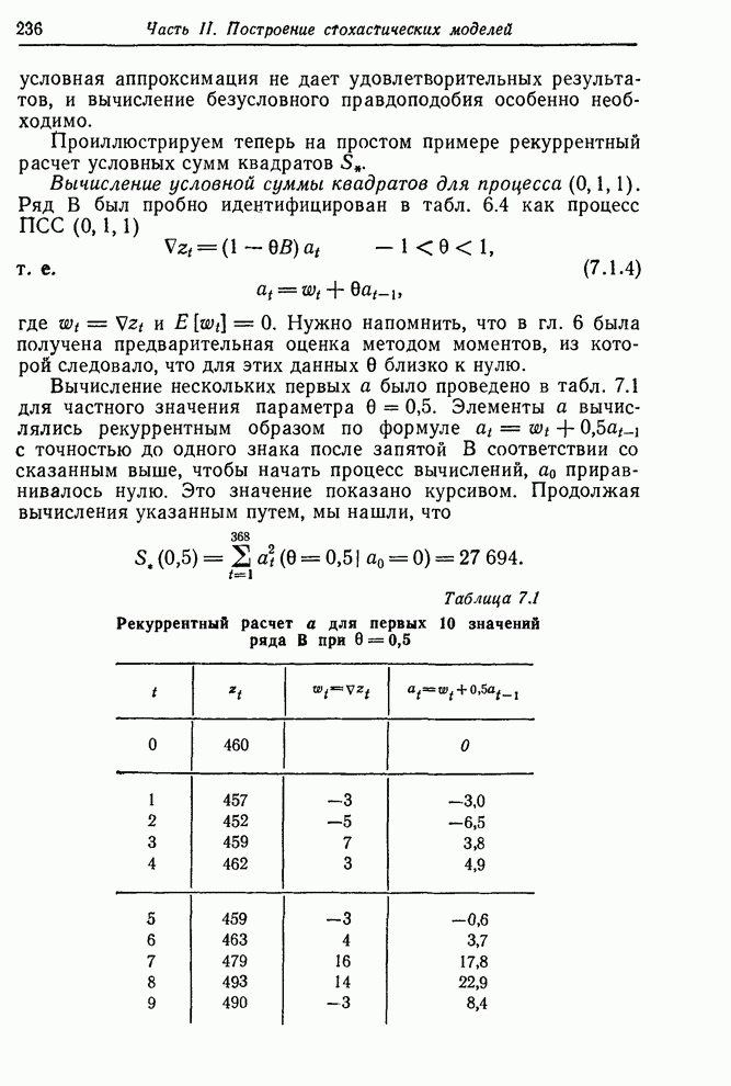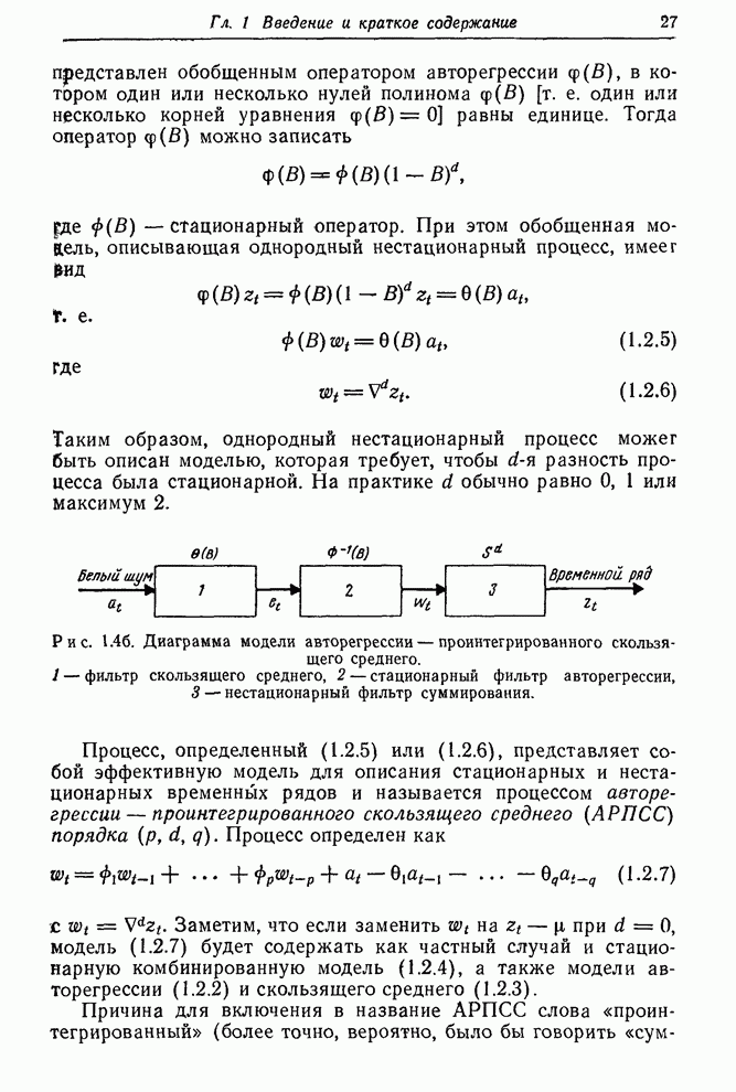 Рисунок 9 2 Ряд Прогнозирующая функция, ее коррекция и дисперсия ошибки прогноза. Как говорилось в гл. 5, способ разностного уравнения наиболее прост и удобен для фактического вычисления и коррекции прогнозов. Однако само разностное уравнение не объясняет в достаточной степени природу вычисляемых с его помощью прогнозов и характер коррекции. Чтобы оценить эти аспекты (а не предложить еще одну вычислительную процедуру), рассмотрим теперь прогнозирование с других точек зрения. Прогнозирующая функция. Используя (5.1.12), получаем