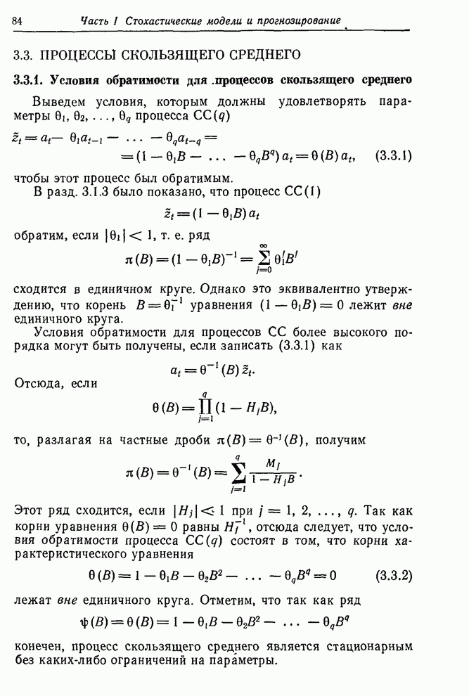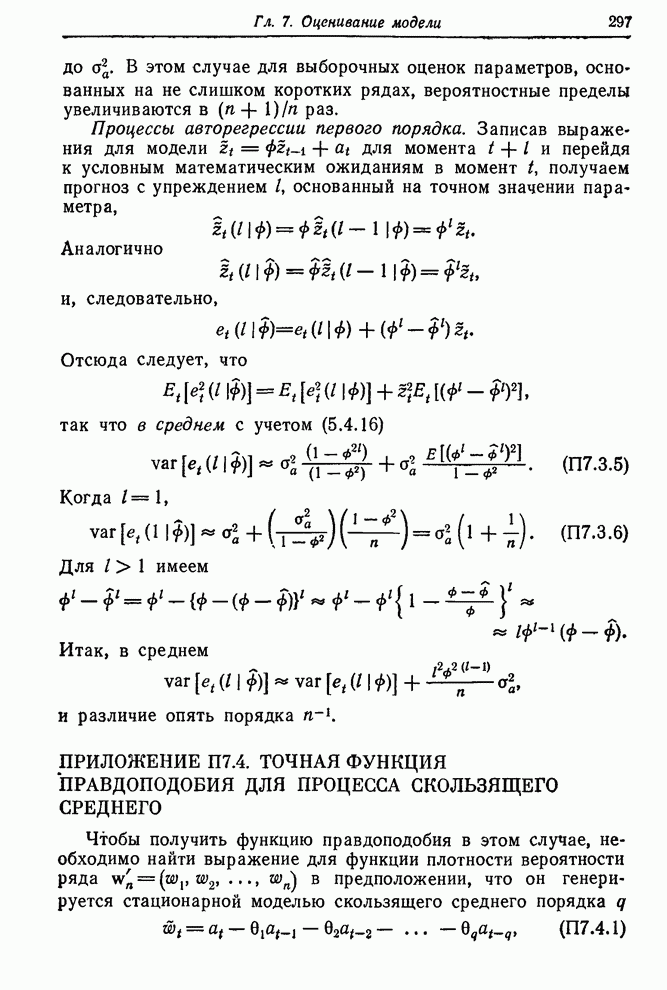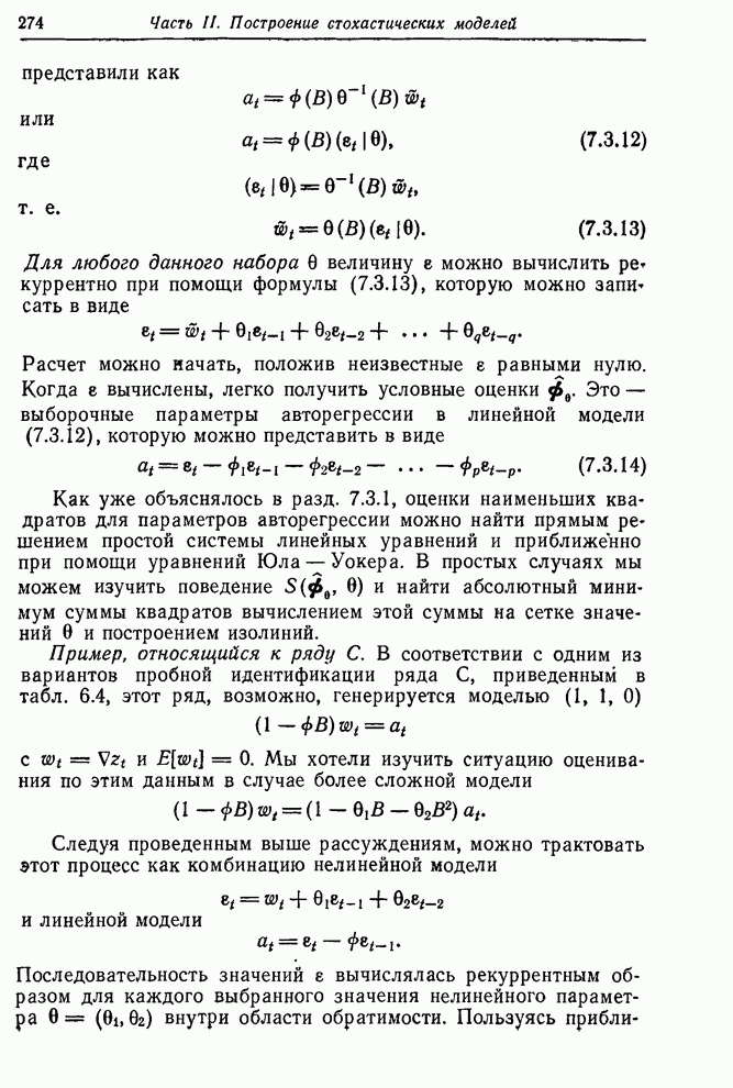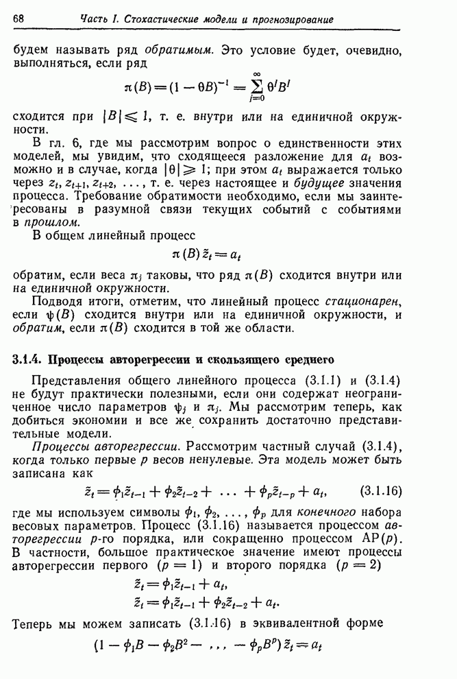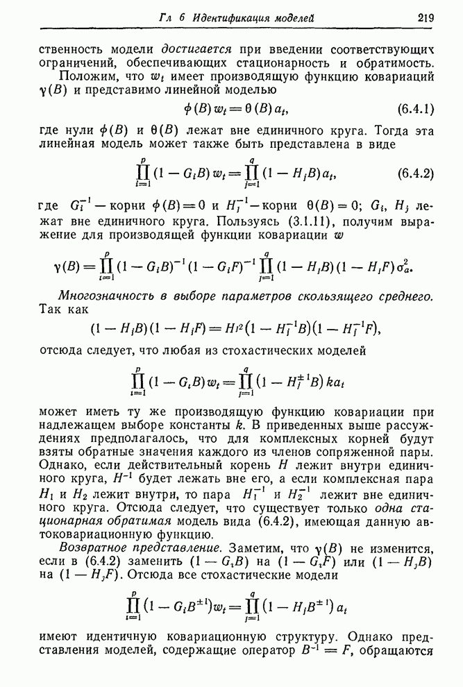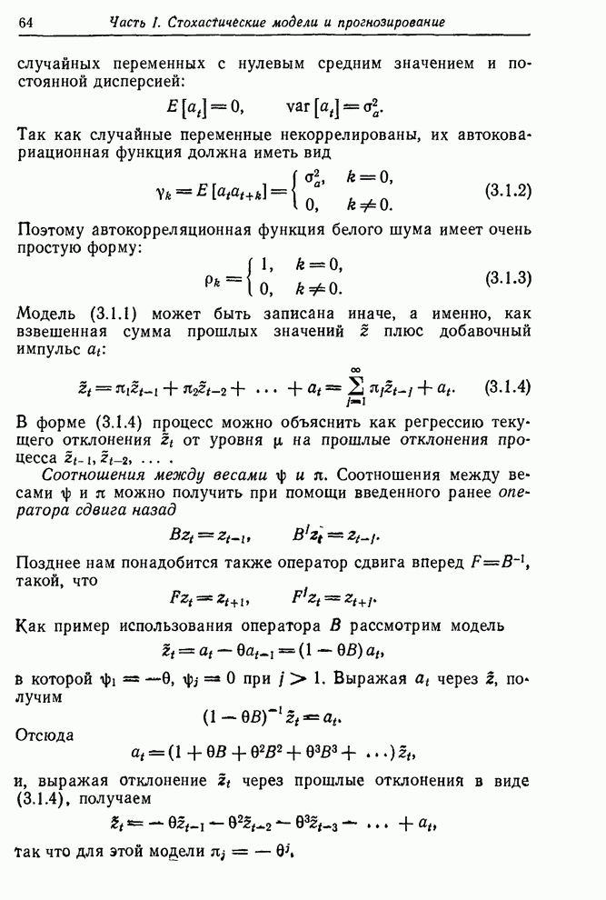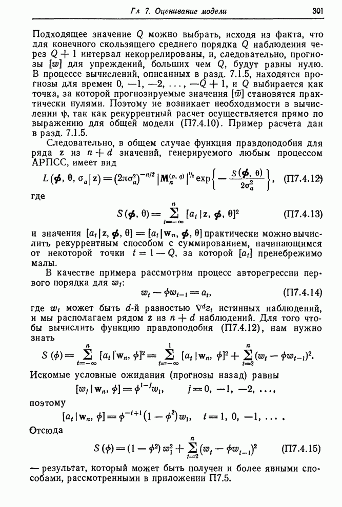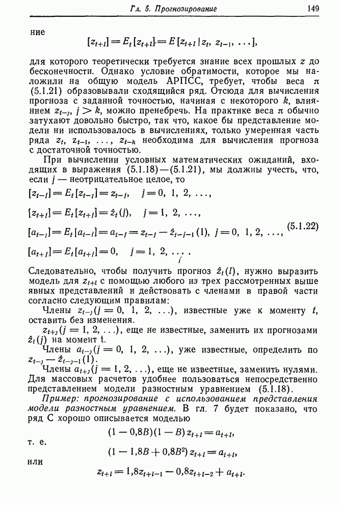 условным математическим ожиданием Практическое применение зависит от ряда фактов: а) обратимые модели после подгонок к реальным рядам дают прогнозы, существенно зависящие только от сравнительно недавних значений ряда; б) прогнозы нечувствительны к малым изменениям значений параметров, вносимым, например, ошибками оценивания. Имеем
