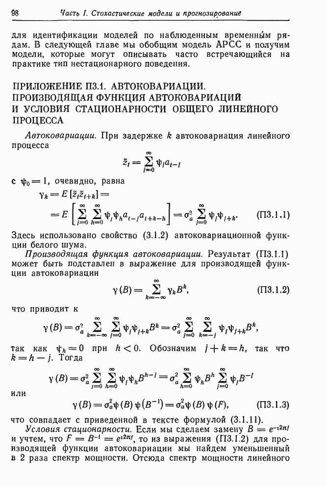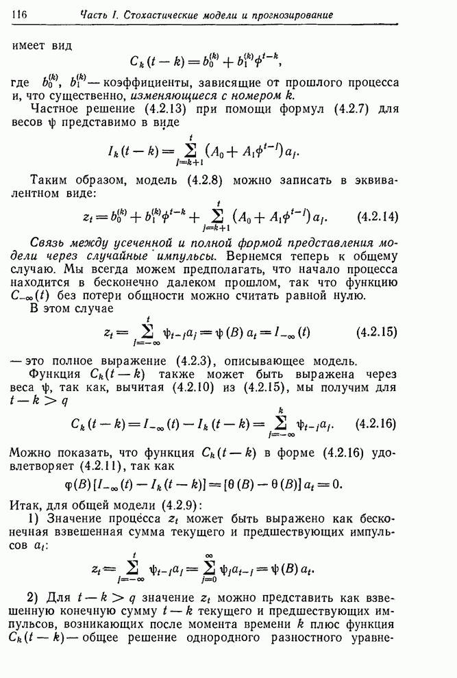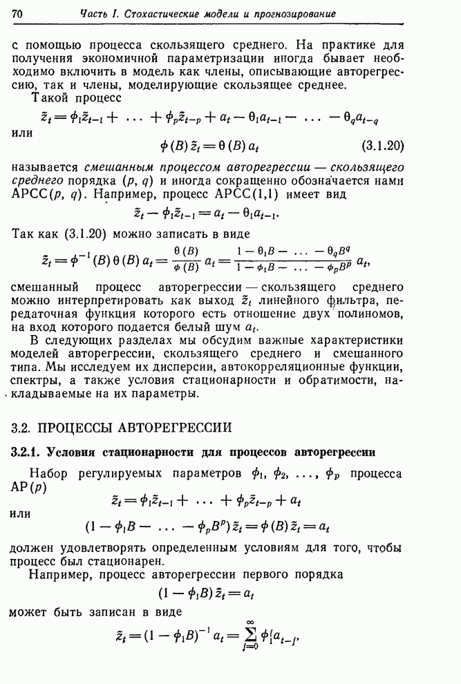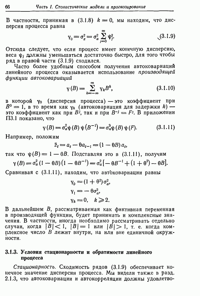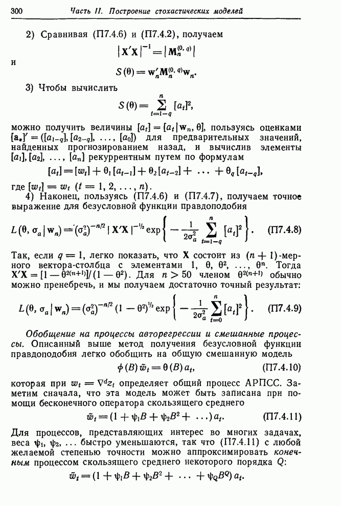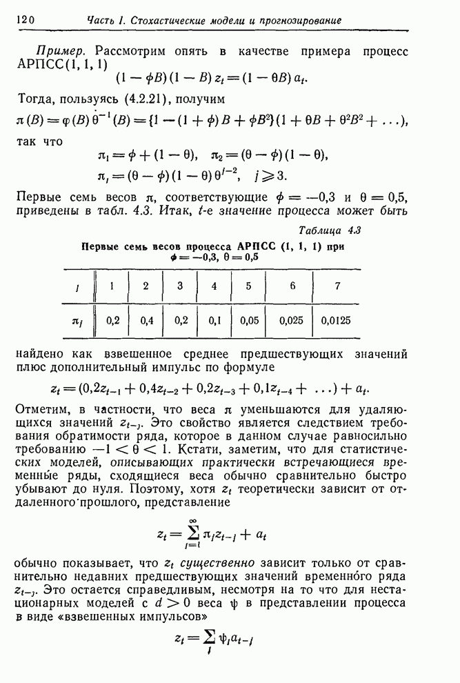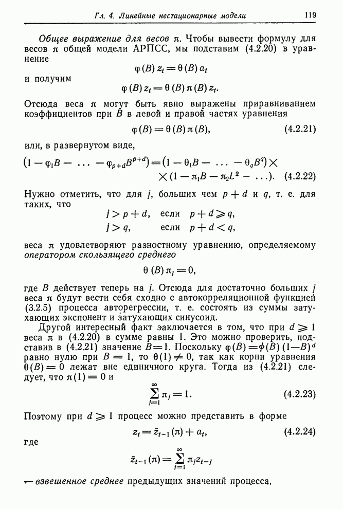 условным математическим ожиданием Практическое применение зависит от ряда фактов: а) обратимые модели после подгонок к реальным рядам дают прогнозы, существенно зависящие только от сравнительно недавних значений ряда; б) прогнозы нечувствительны к малым изменениям значений параметров, вносимым, например, ошибками оценивания. Имеем