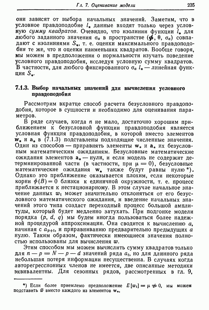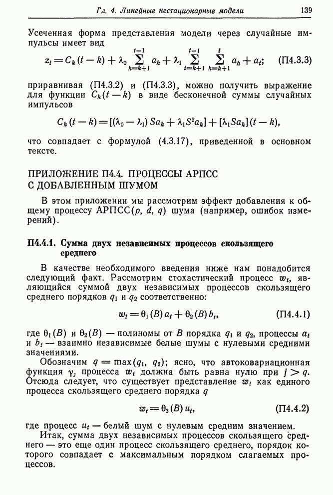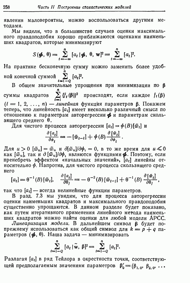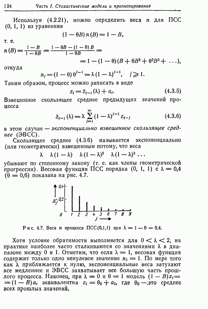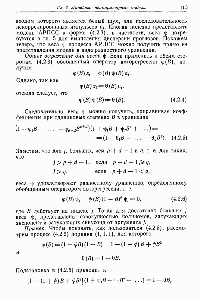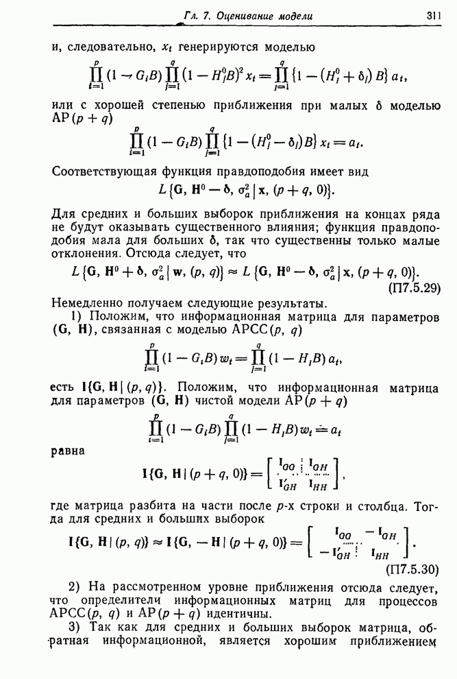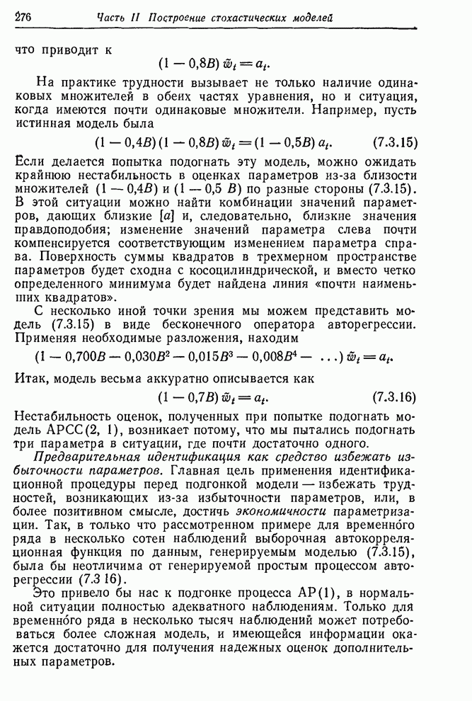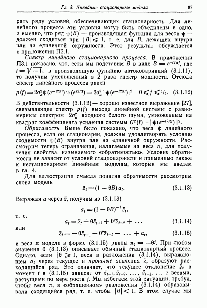 условным математическим ожиданием Практическое применение зависит от ряда фактов: а) обратимые модели после подгонок к реальным рядам дают прогнозы, существенно зависящие только от сравнительно недавних значений ряда; б) прогнозы нечувствительны к малым изменениям значений параметров, вносимым, например, ошибками оценивания. Имеем