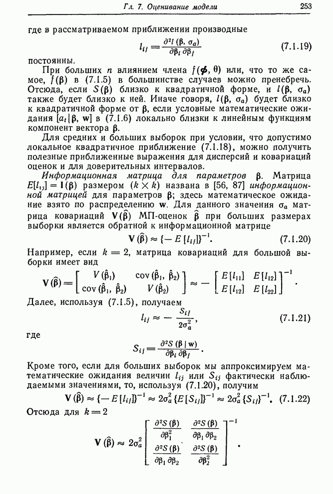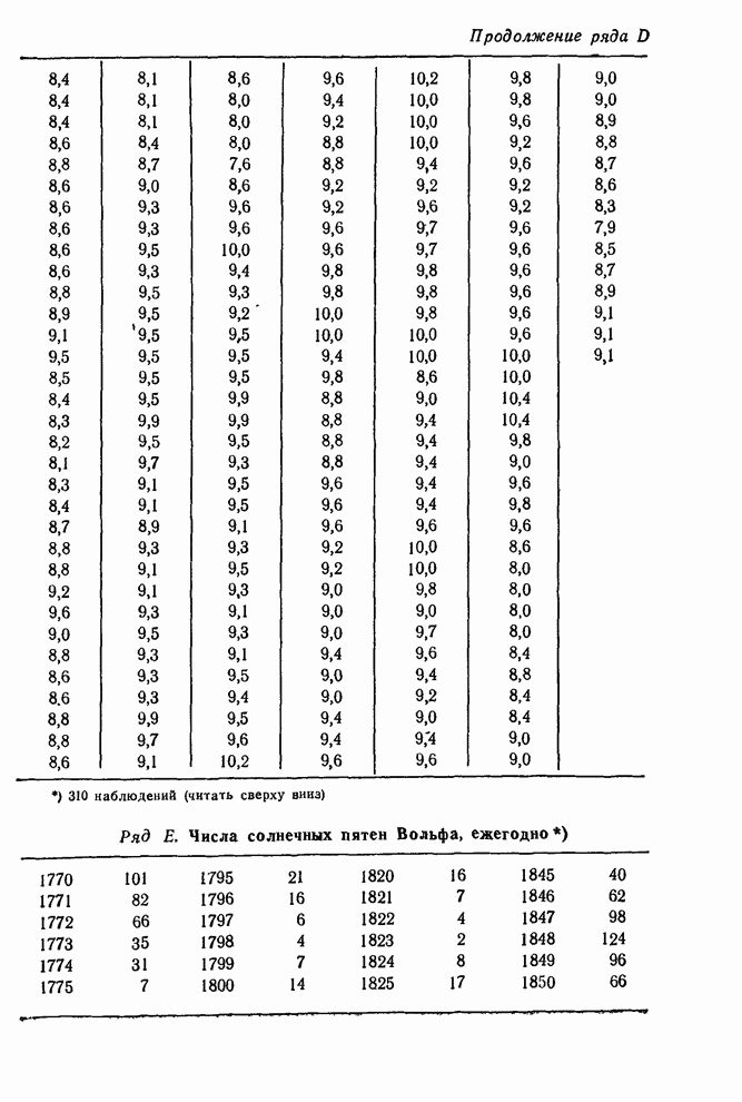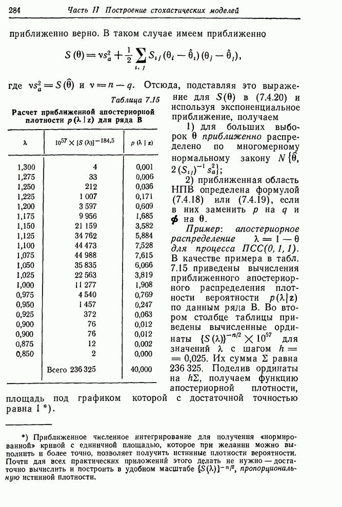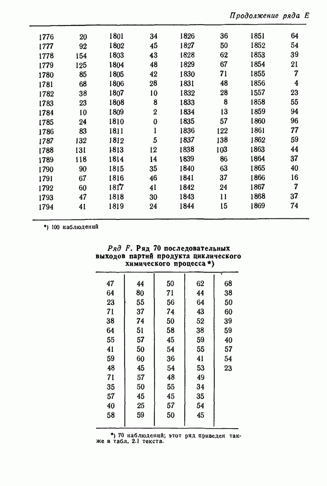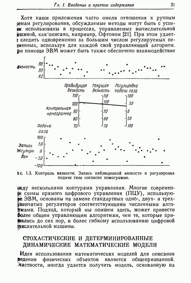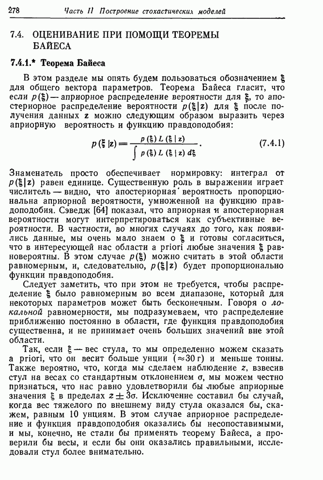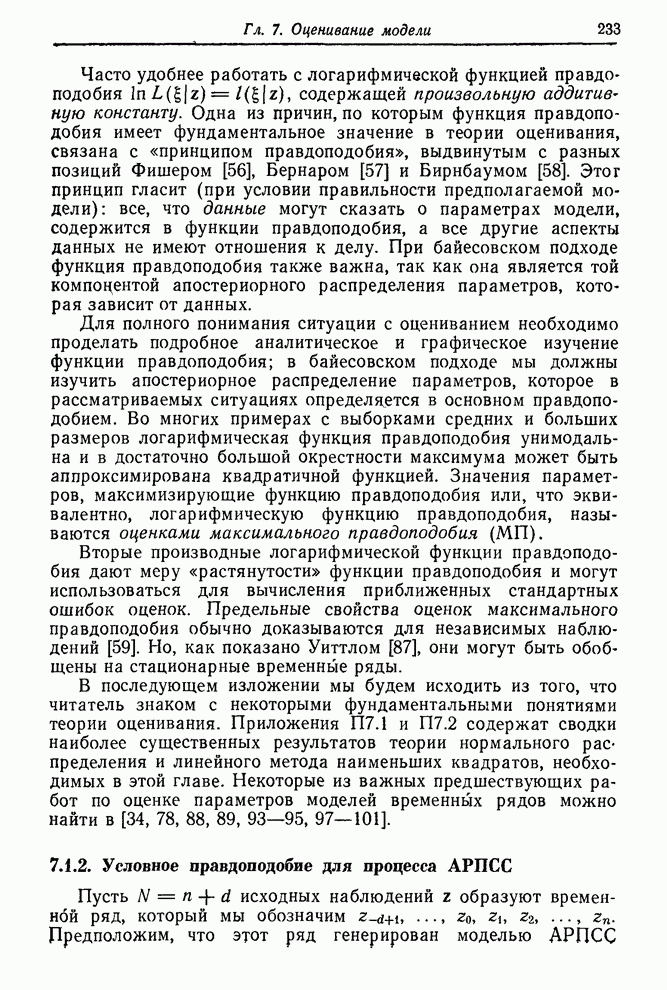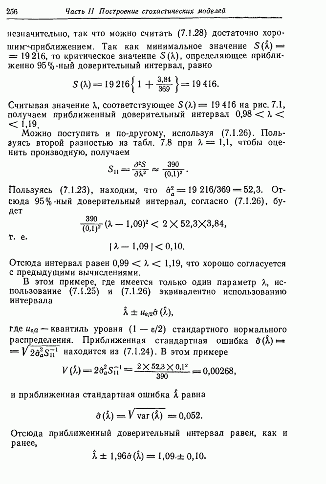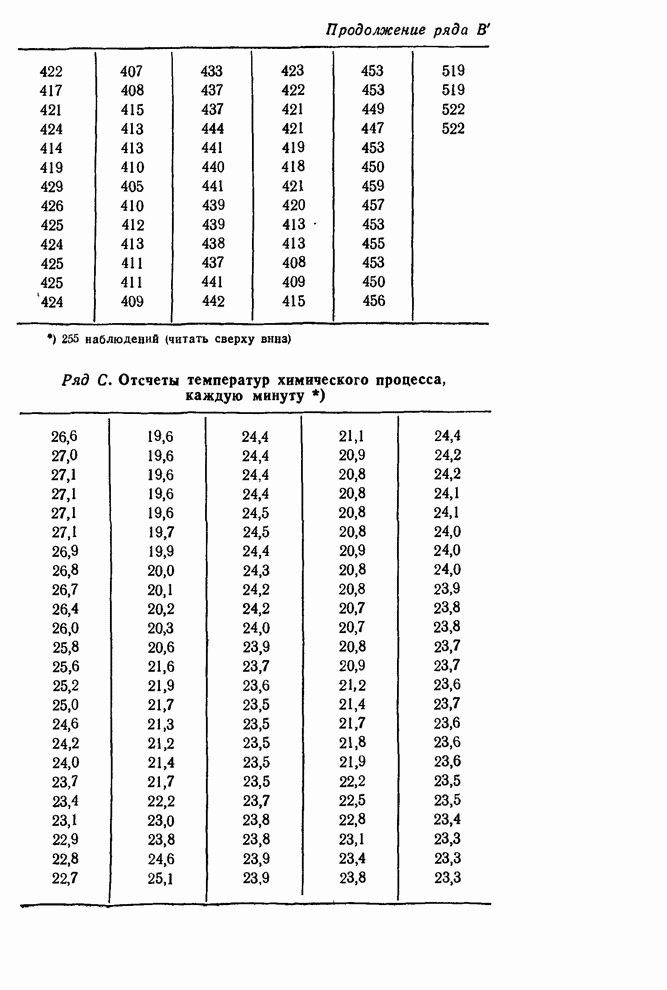 предыдущие На рис. 9.2 показаны прогнозы для упреждений до 36 месяцев, сделанные на один и тот же произвольный момент — июль 1957 г. Видно, что простая модель, содержащая только два параметра, хорошо воспроизводит сезонные особенности и дает превосходные прогнозы. Следует помнить, конечно, что, как и все предсказания, получаемые из общей линейной стохастической модели, прогнозирующая функция подстраивается к данным. Когда происходят изменения в сезонных явлениях, они соответствующим образом отражаются в прогнозе. Нужно заметить, что если прогноз на месяц вперед дает завышенное значение, у всех более отдаленных прогнозов на тот же момент времени существует тенденция к завышению. Этого следовало ожидать, потому что, как указано в приложении П5.1, ошибки прогноза на один и тот же момент времени с различными упреждениями сильно коррелированы. Конечно, прогноз далеко вперед, скажем на 36 мес, неизбежно может содержать значительную ошибку. Однако на практике первоначально отдаленный прогноз будет непрерывно корректироваться, и по мере уменьшения упреждения будет достигаться все большая точность. Описанная