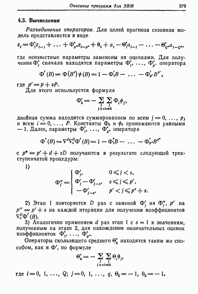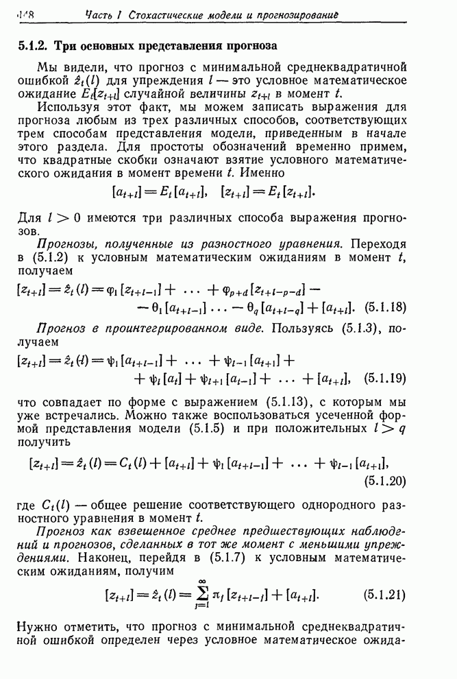 9.2.2. ПрогнозированиеВ гл. 4 мы видели, что имеются три разных способа рассмотрения общей модели, каждый из которых привел в гл. 5 к различным взглядам на прогноз. Мы рассмотрим теперь, как эти три подхода можно применить к прогнозированию с помощью модели сезонного ряда (9.2.1).