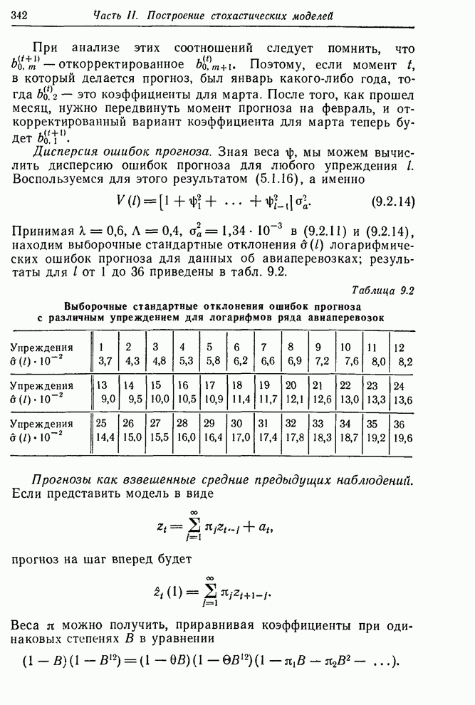 Принимая Таблица 9.2. Выборочные стандартные отклонения ошибок прогноза с различным упреждением для логарифмов ряда авиаперевозок