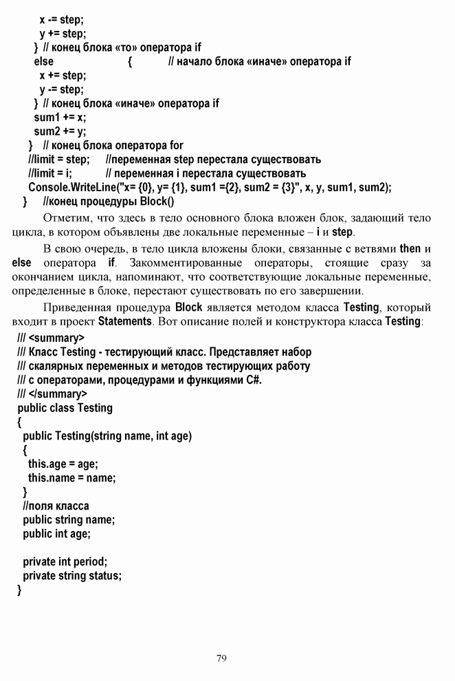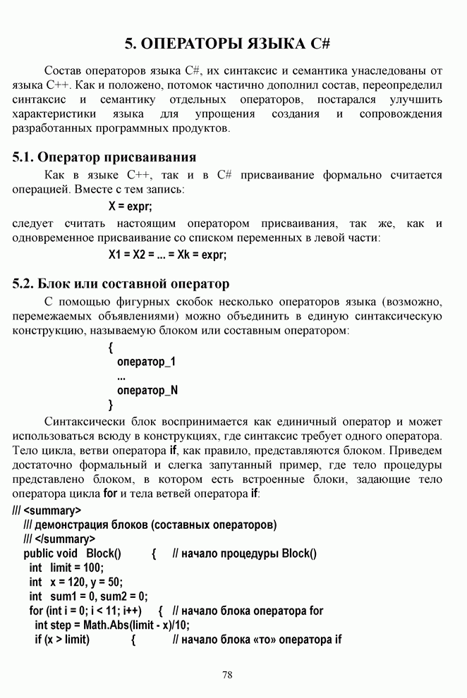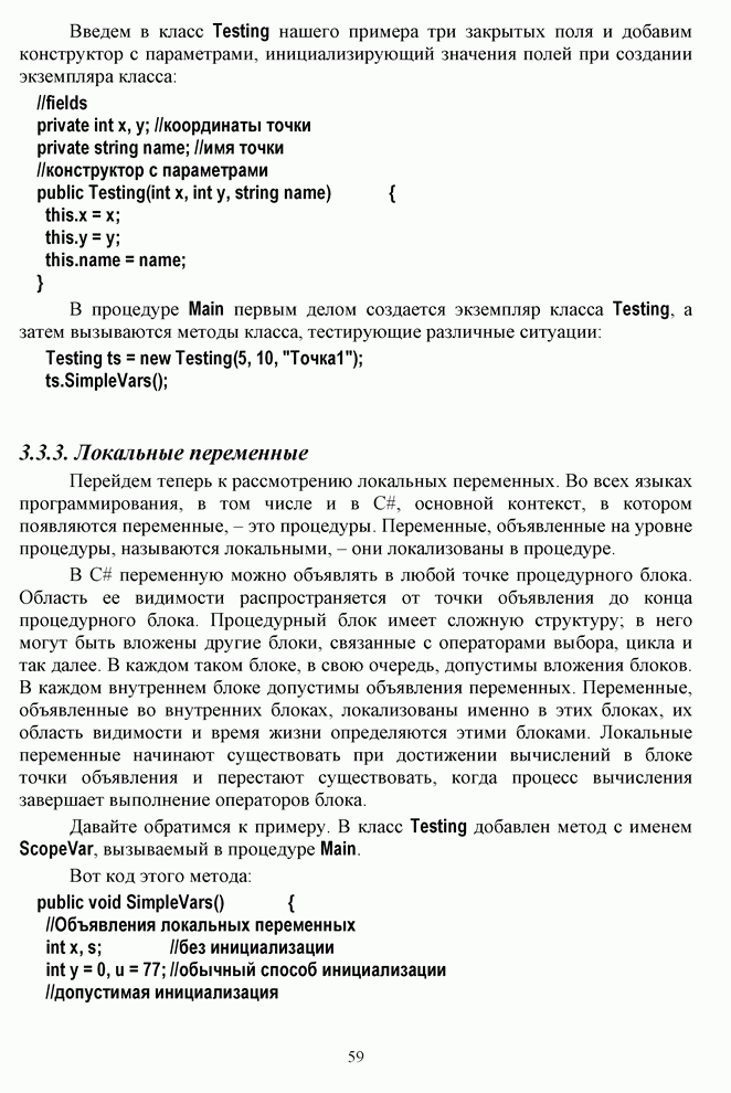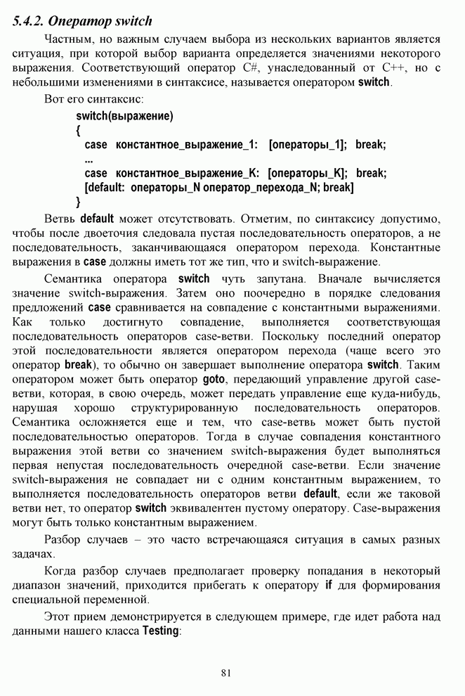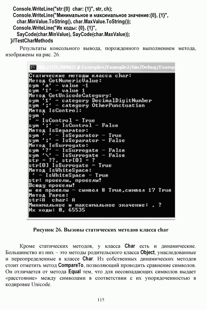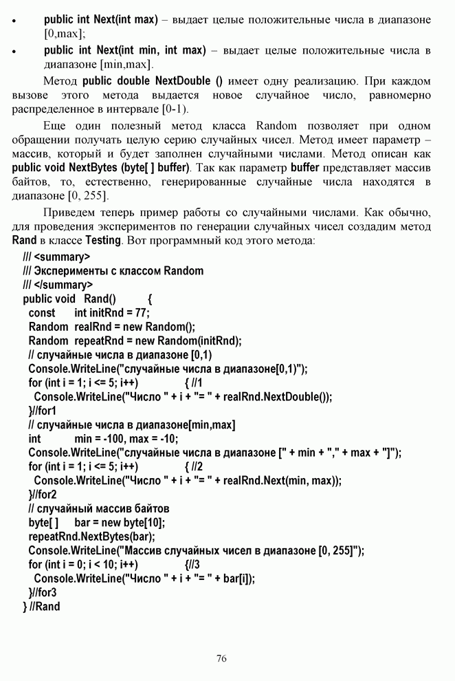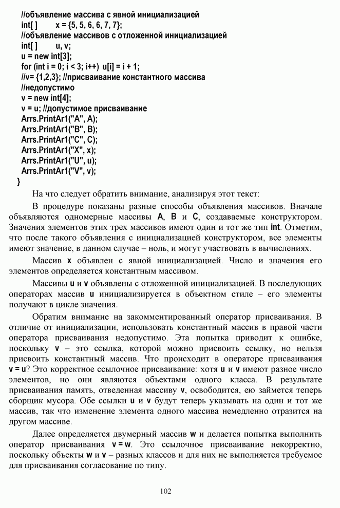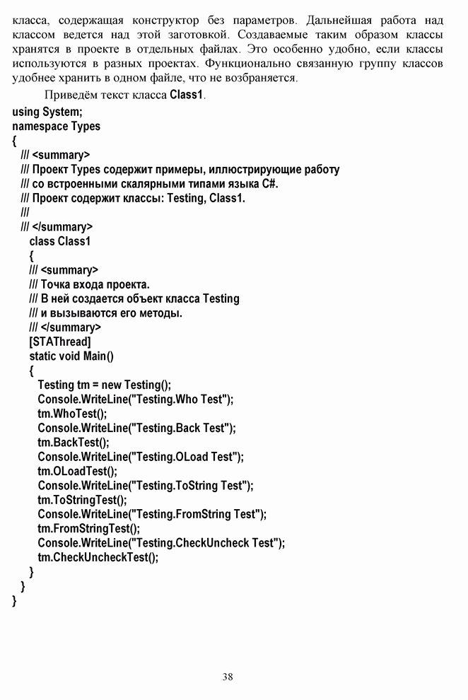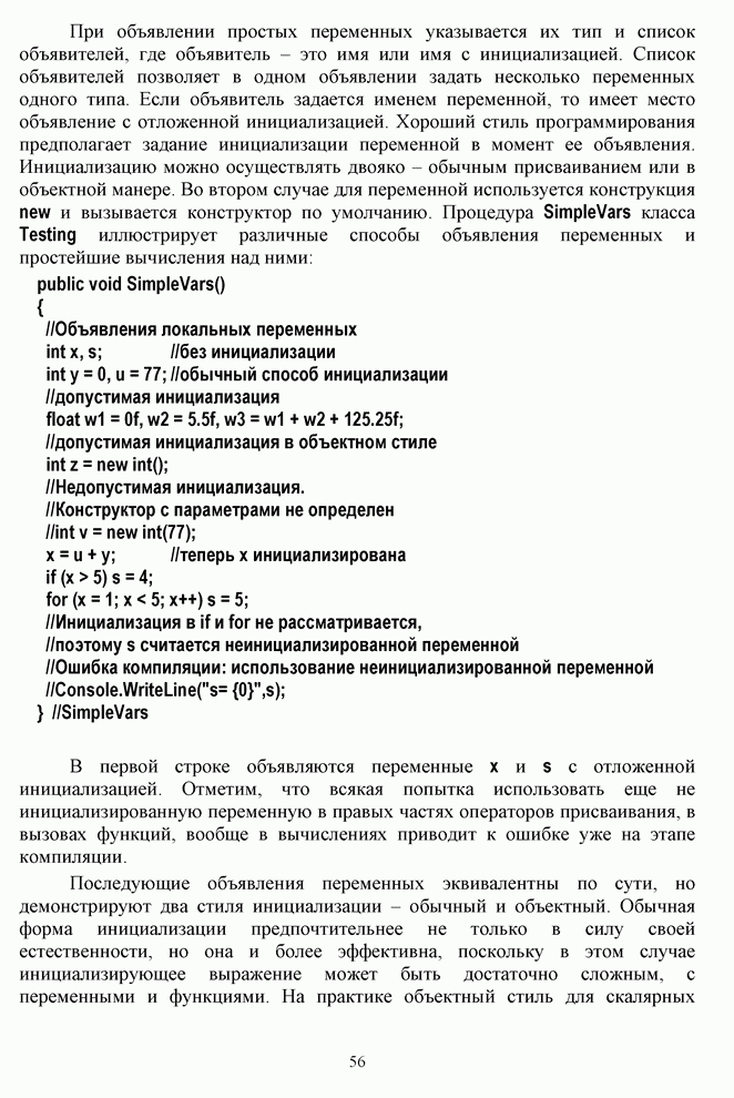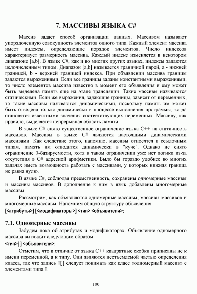 8.3.1. Объявление строк. Конструкторы класса StringОбъекты класса String объявляются как все прочие объекты простых типов - с явной или отложенной инициализацией, с явным или неявным вызовом конструктора класса. Чаще всего, при объявлении строковой переменной конструктор явно не вызывается, а инициализация задается строковой константой. Но у класса String достаточно много конструкторов. Они позволяют сконструировать строку из: - символа, повторенного заданное число раз; - массива символов char[ ]; - части массива символов. Некоторым конструкторам в качестве параметра инициализации можно передать строку, заданную типом char*. Но все это небезопасно, и подобные примеры приводиться и обсуждаться не будут. Приведем примеры объявления строк с вызовом разных конструкторов: public void TestDeclStrings() {