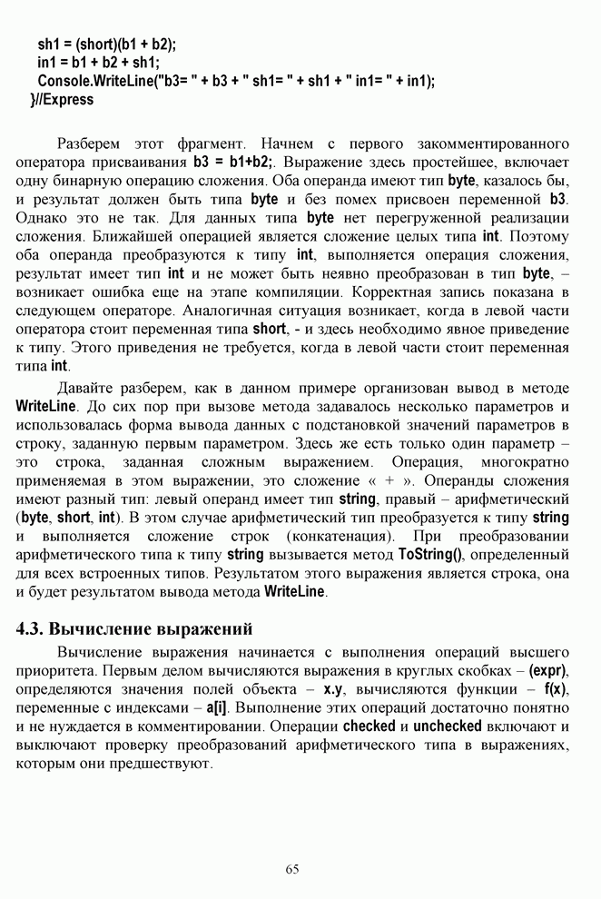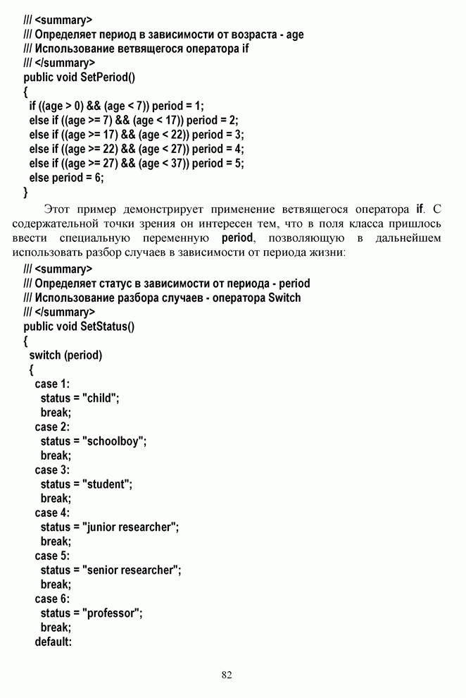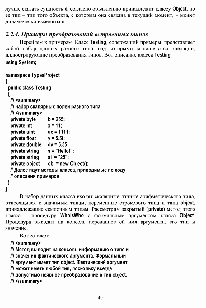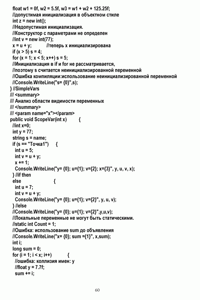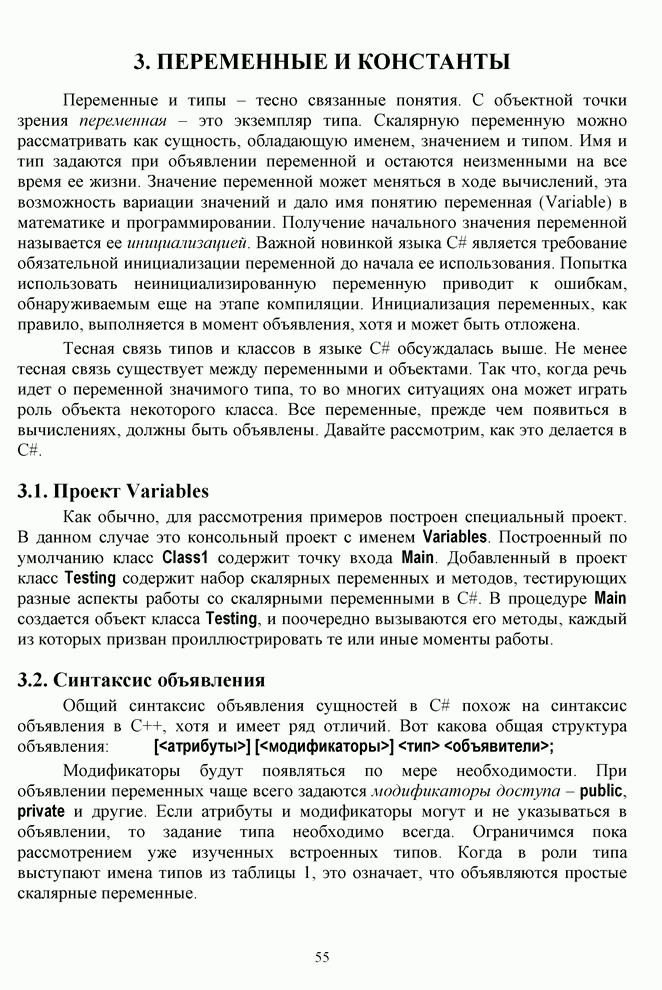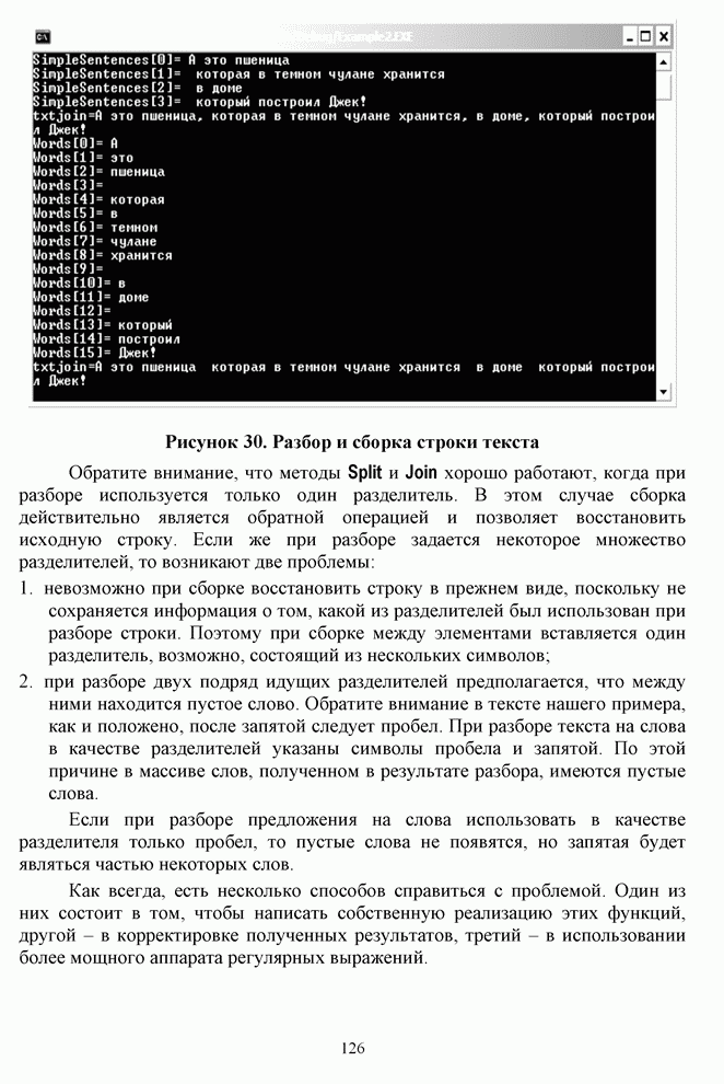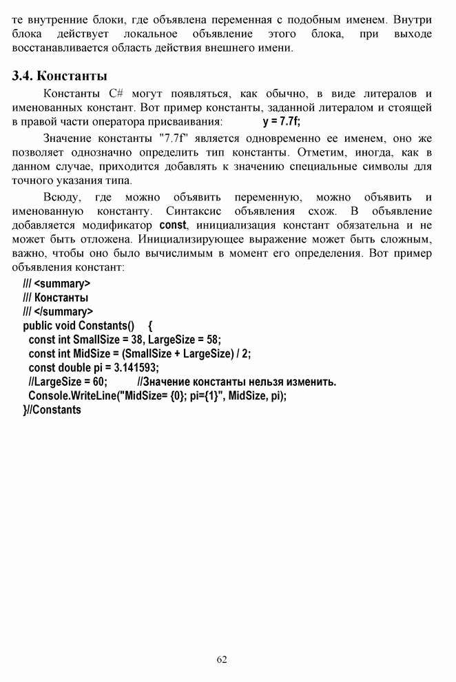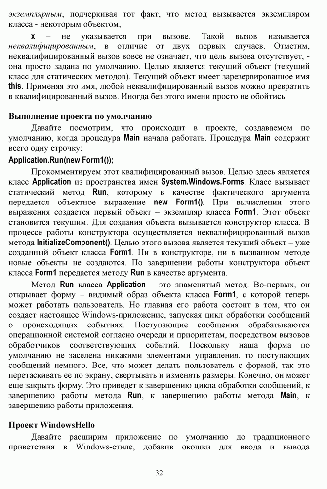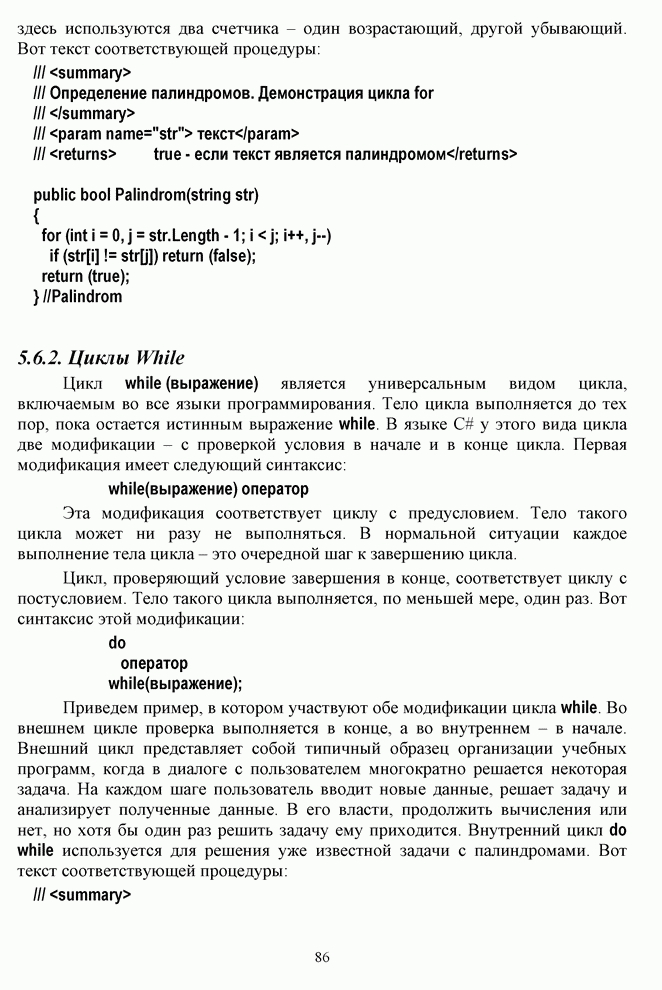 8.3.1. Объявление строк. Конструкторы класса StringОбъекты класса String объявляются как все прочие объекты простых типов - с явной или отложенной инициализацией, с явным или неявным вызовом конструктора класса. Чаще всего, при объявлении строковой переменной конструктор явно не вызывается, а инициализация задается строковой константой. Но у класса String достаточно много конструкторов. Они позволяют сконструировать строку из: - символа, повторенного заданное число раз; - массива символов char[ ]; - части массива символов. Некоторым конструкторам в качестве параметра инициализации можно передать строку, заданную типом char*. Но все это небезопасно, и подобные примеры приводиться и обсуждаться не будут. Приведем примеры объявления строк с вызовом разных конструкторов: public void TestDeclStrings() {