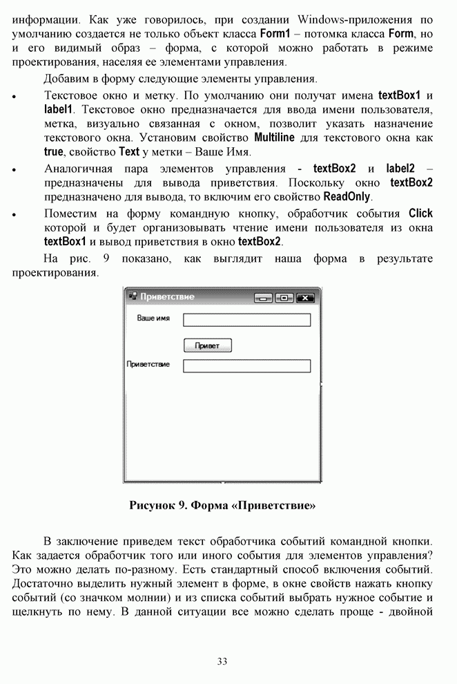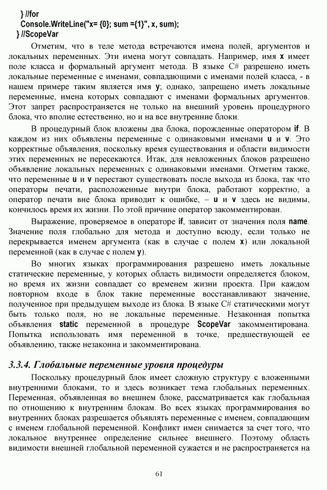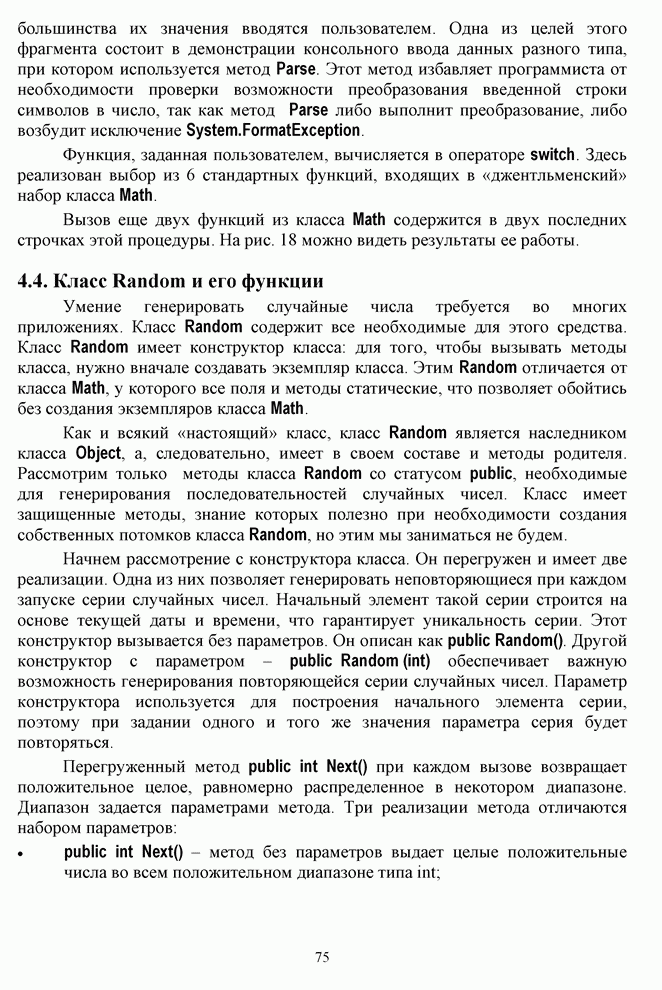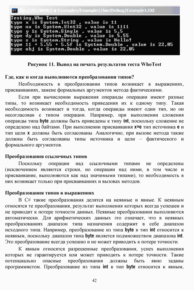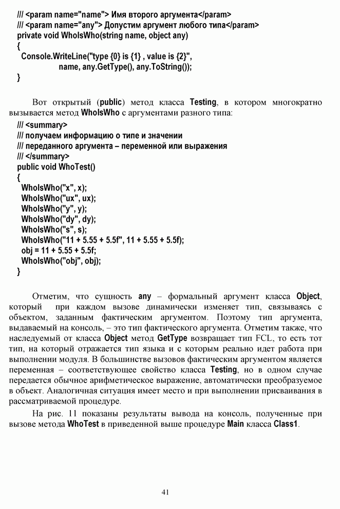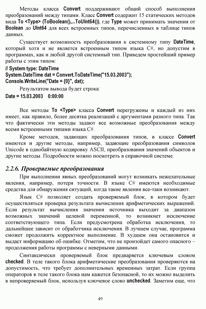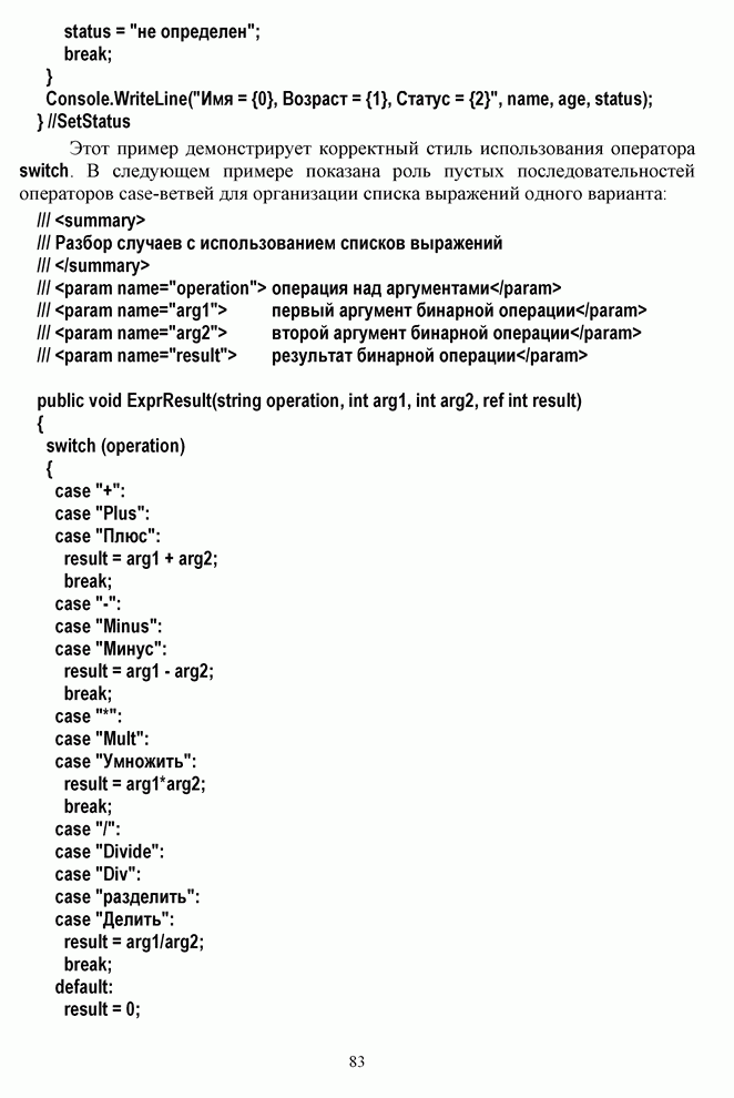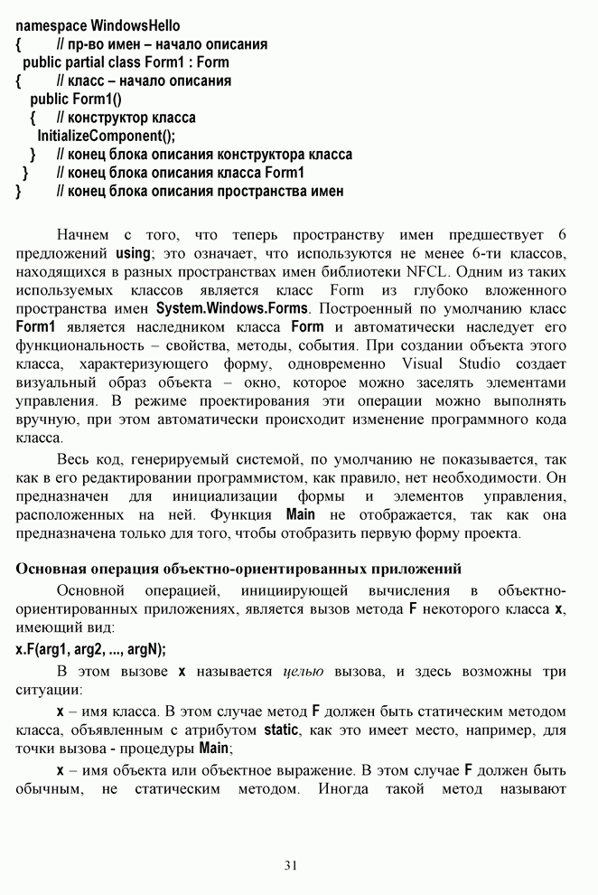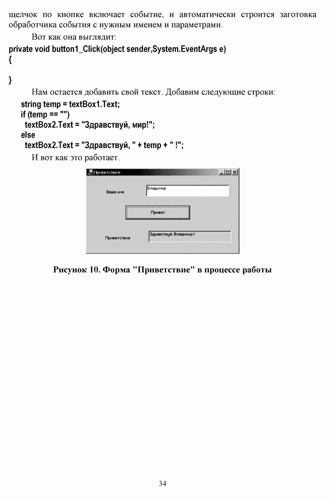 8.3.1. Объявление строк. Конструкторы класса StringОбъекты класса String объявляются как все прочие объекты простых типов - с явной или отложенной инициализацией, с явным или неявным вызовом конструктора класса. Чаще всего, при объявлении строковой переменной конструктор явно не вызывается, а инициализация задается строковой константой. Но у класса String достаточно много конструкторов. Они позволяют сконструировать строку из: - символа, повторенного заданное число раз; - массива символов char[ ]; - части массива символов. Некоторым конструкторам в качестве параметра инициализации можно передать строку, заданную типом char*. Но все это небезопасно, и подобные примеры приводиться и обсуждаться не будут. Приведем примеры объявления строк с вызовом разных конструкторов: public void TestDeclStrings() {