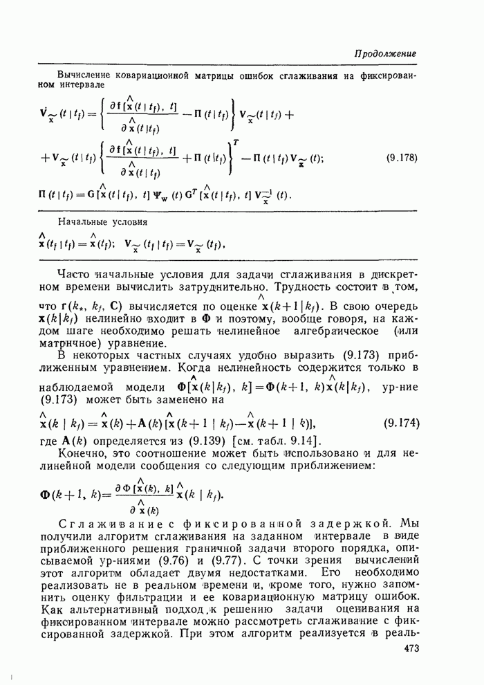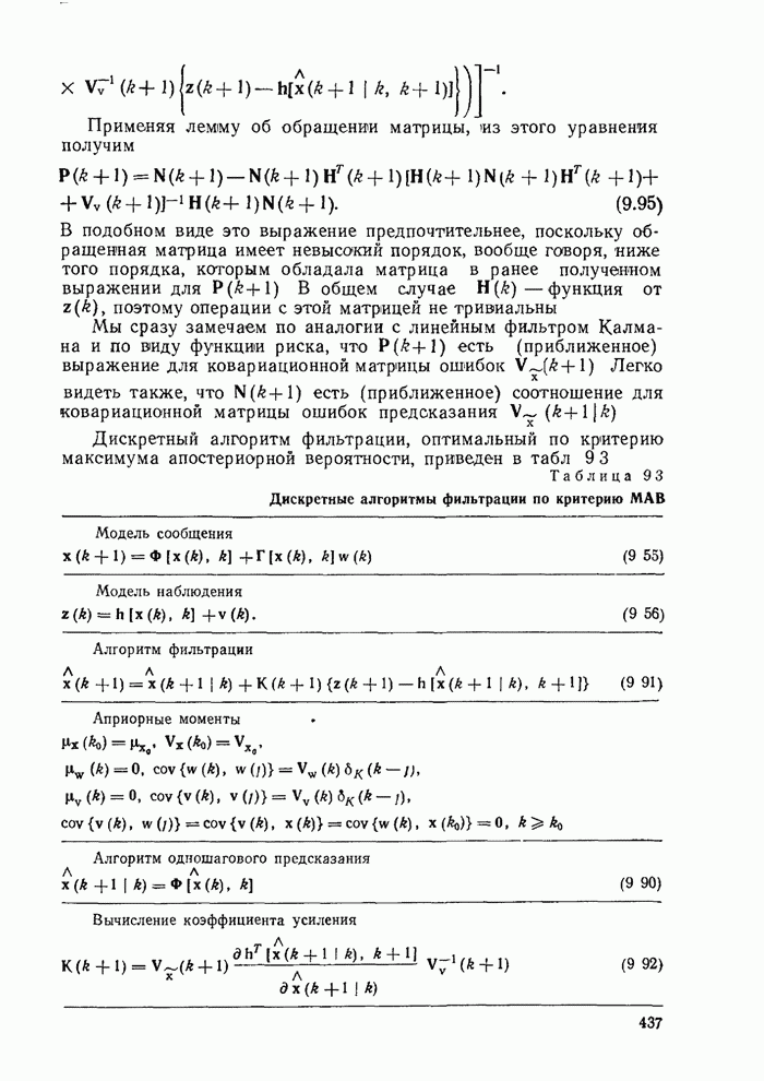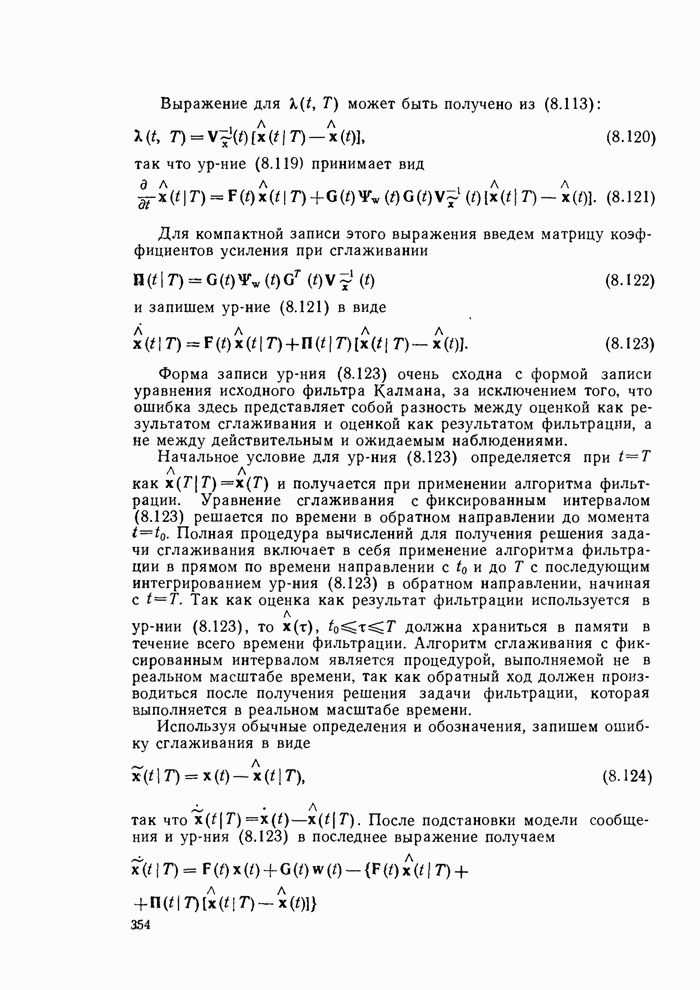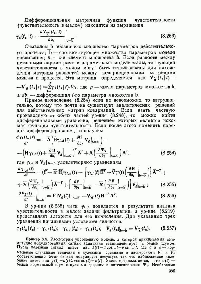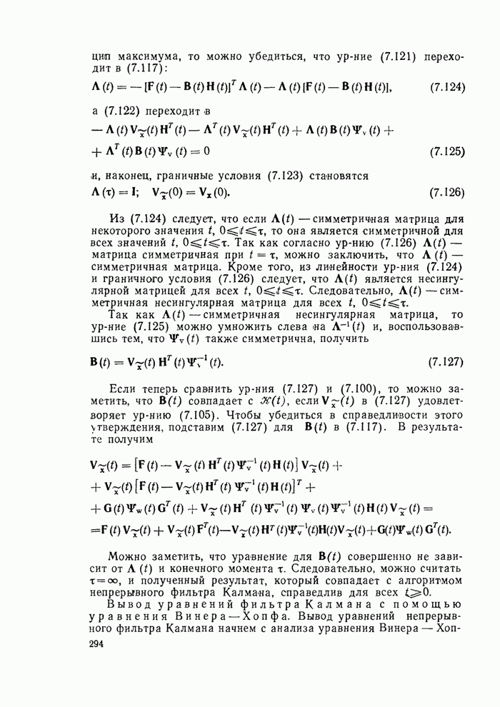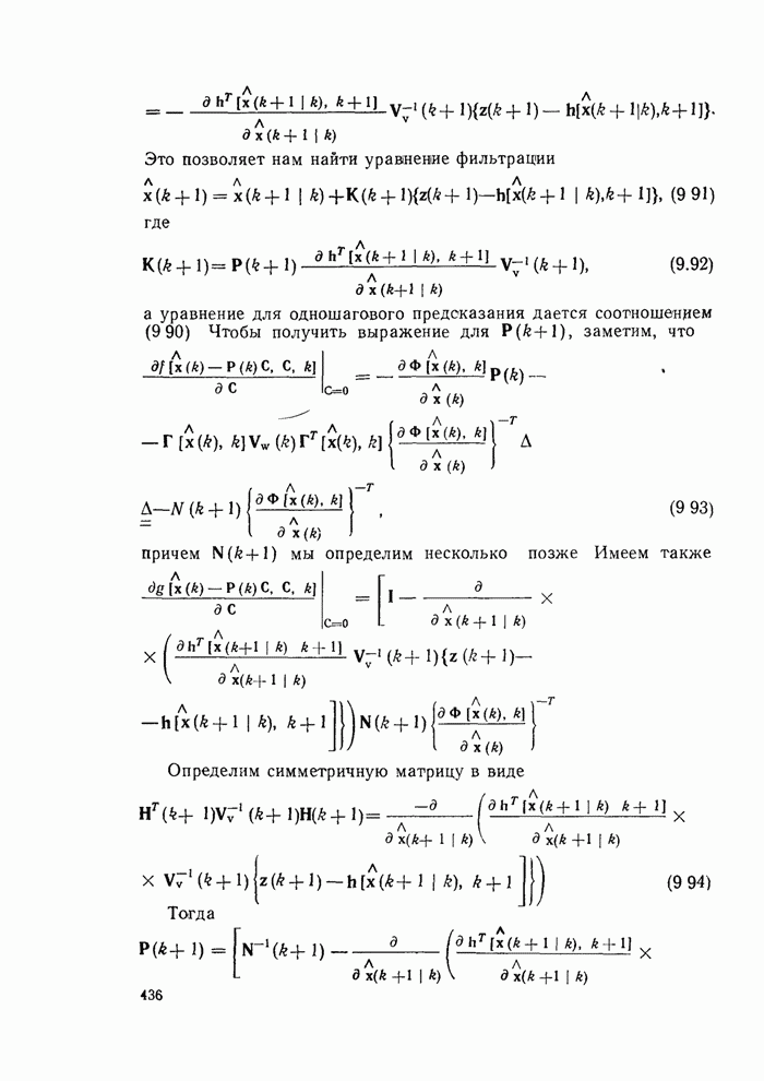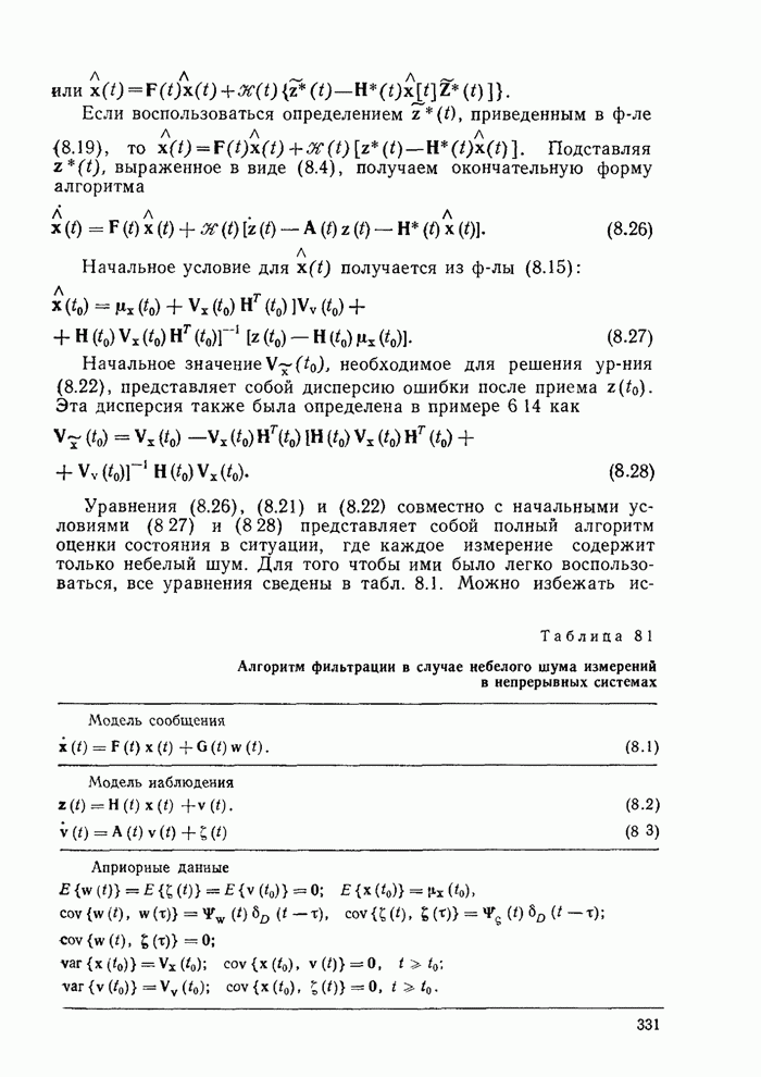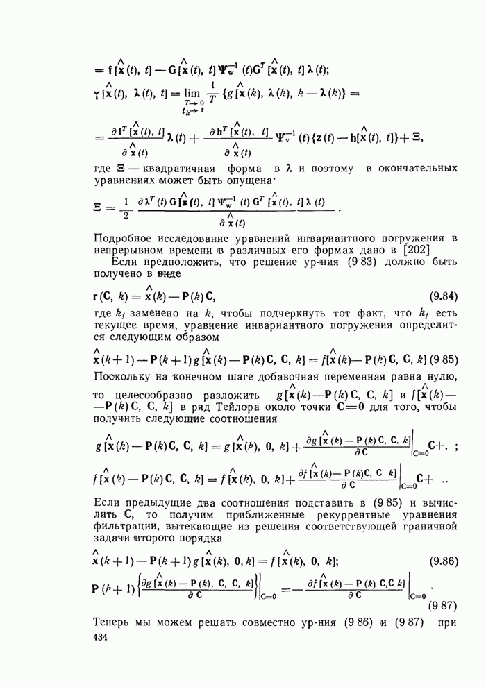мы выбираем В заключение главы интересно, хотя бы вкратце, рассмотреть один из способов аналитического решения нелинейного уравнения дисперсии путем решения системы линейных матричных дифференциальных уравнений. В вычислительном отношении этот метод не представляет большой ценности, поскольку, за исключением случая стационарных моделей сообщения и наблюдений, получающиеся при этом уравнения не могут быть достаточно легко решены. С другой стороны, этот метод часто оказывается весьма полезным при формулировке общих выводов о характере решения уравнения дисперсии. Пусть
