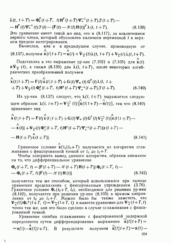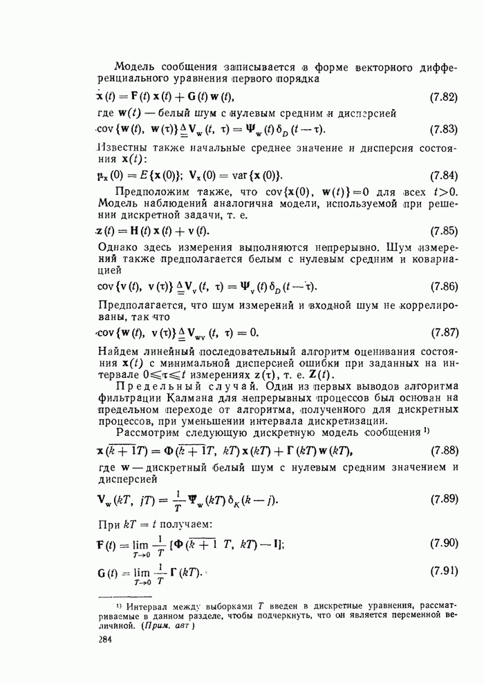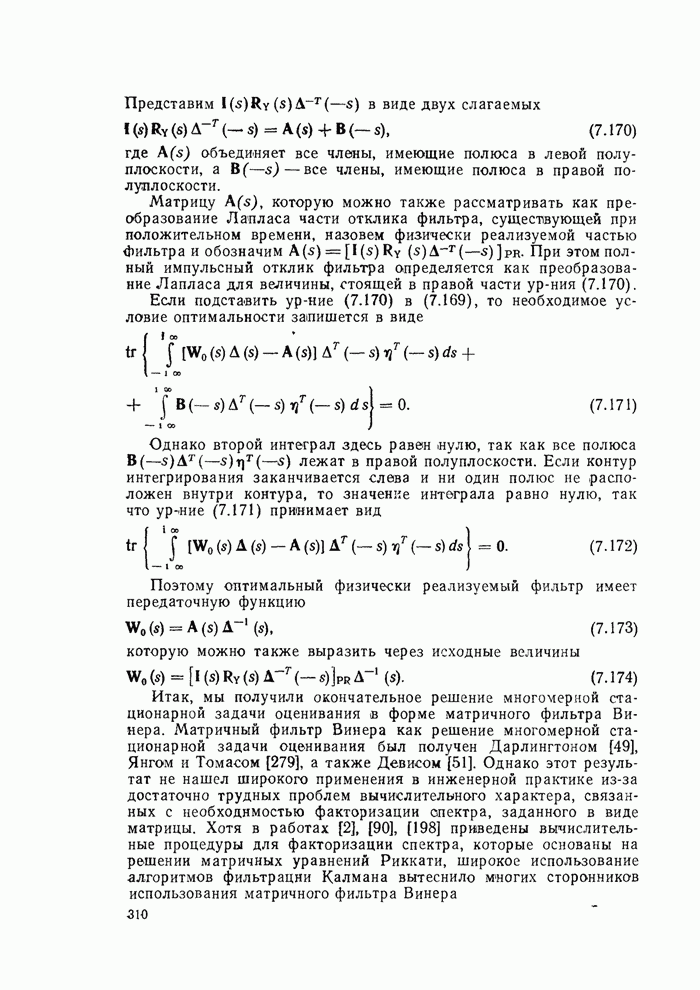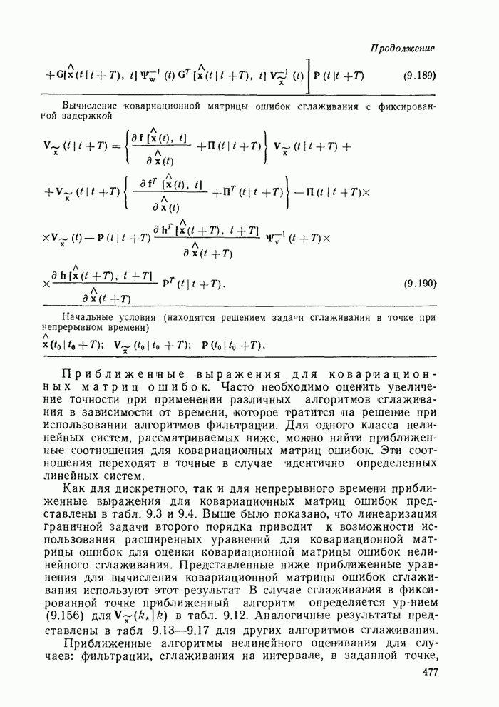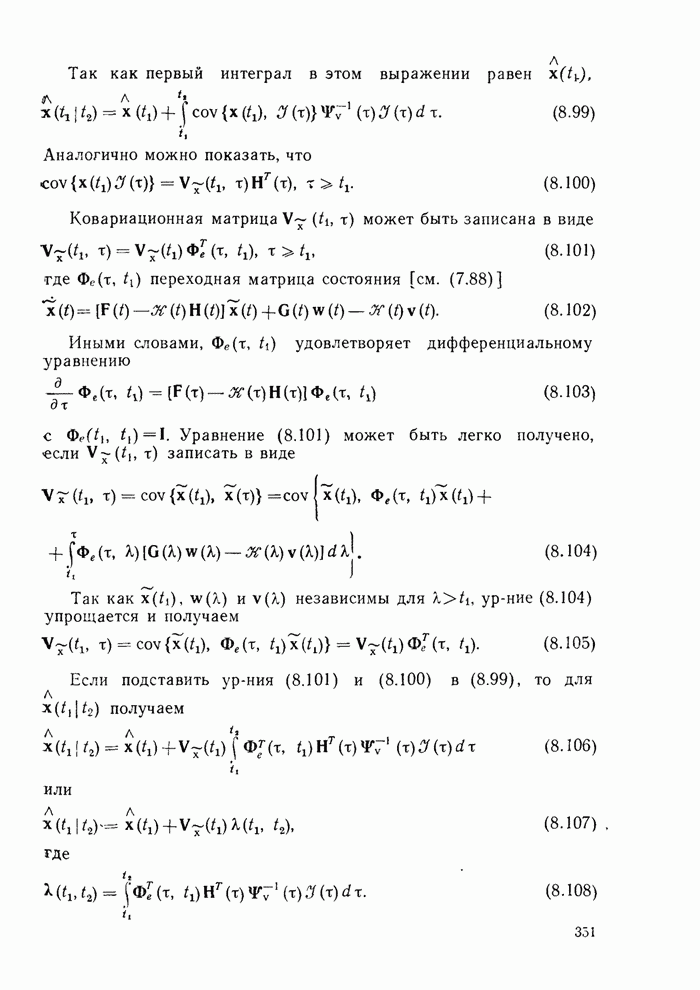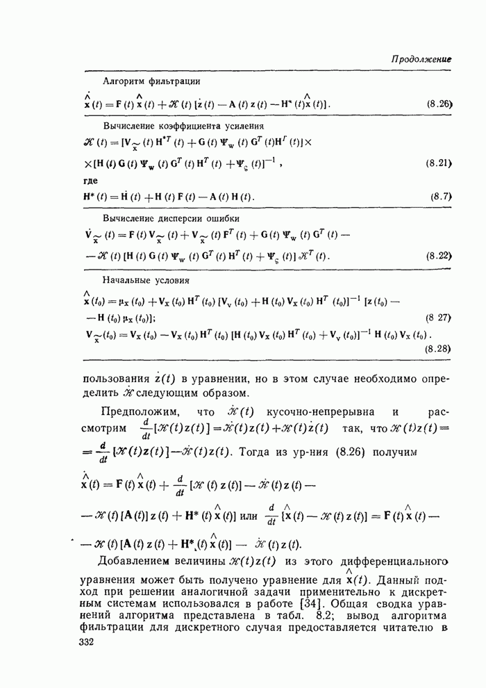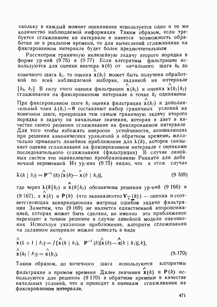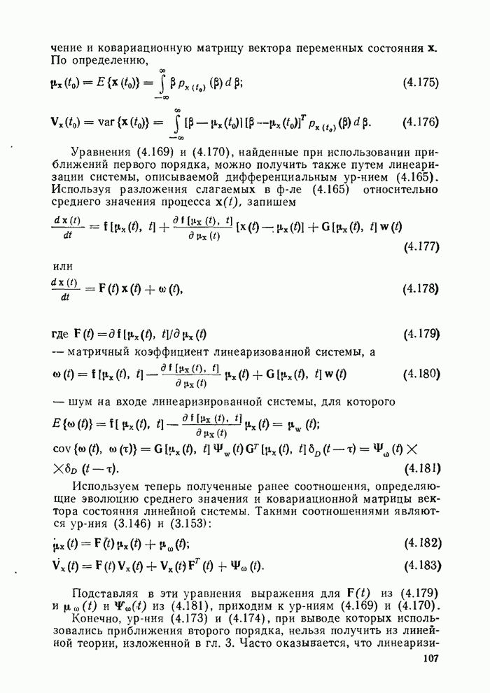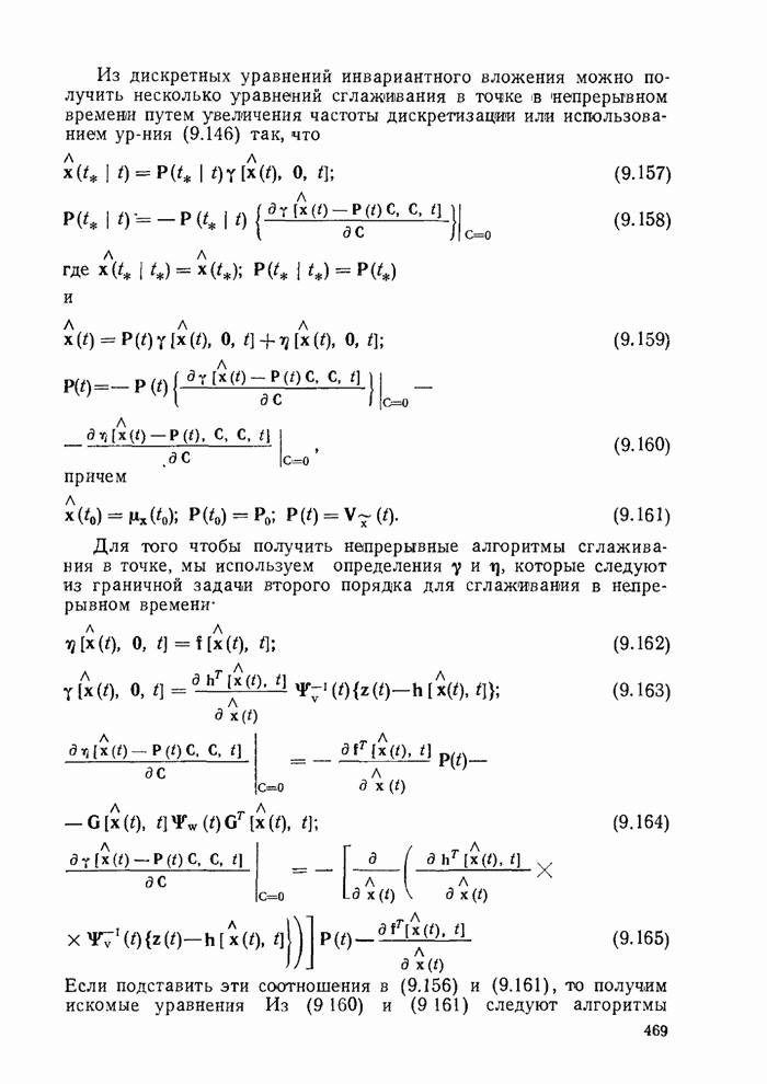 мы выбираем В заключение главы интересно, хотя бы вкратце, рассмотреть один из способов аналитического решения нелинейного уравнения дисперсии путем решения системы линейных матричных дифференциальных уравнений. В вычислительном отношении этот метод не представляет большой ценности, поскольку, за исключением случая стационарных моделей сообщения и наблюдений, получающиеся при этом уравнения не могут быть достаточно легко решены. С другой стороны, этот метод часто оказывается весьма полезным при формулировке общих выводов о характере решения уравнения дисперсии. Пусть
