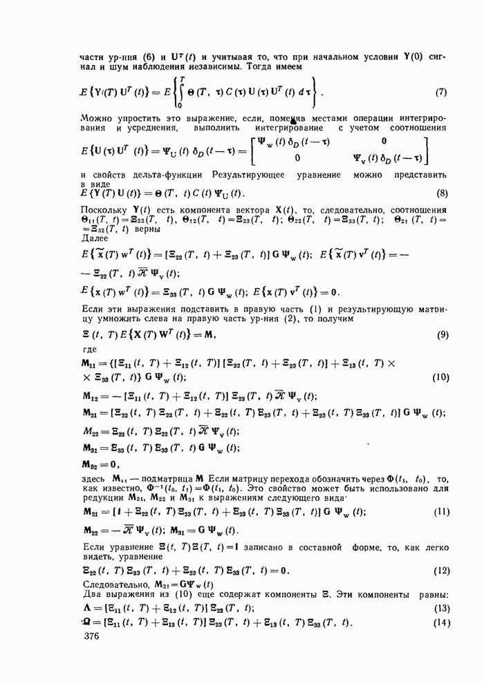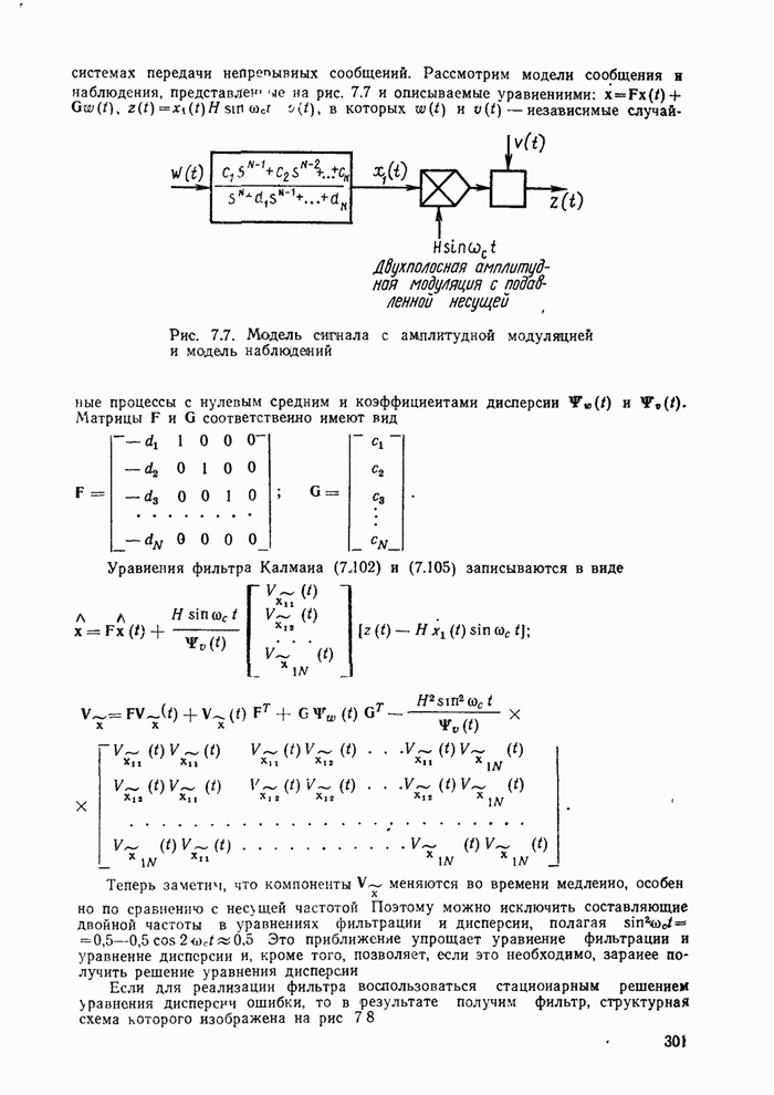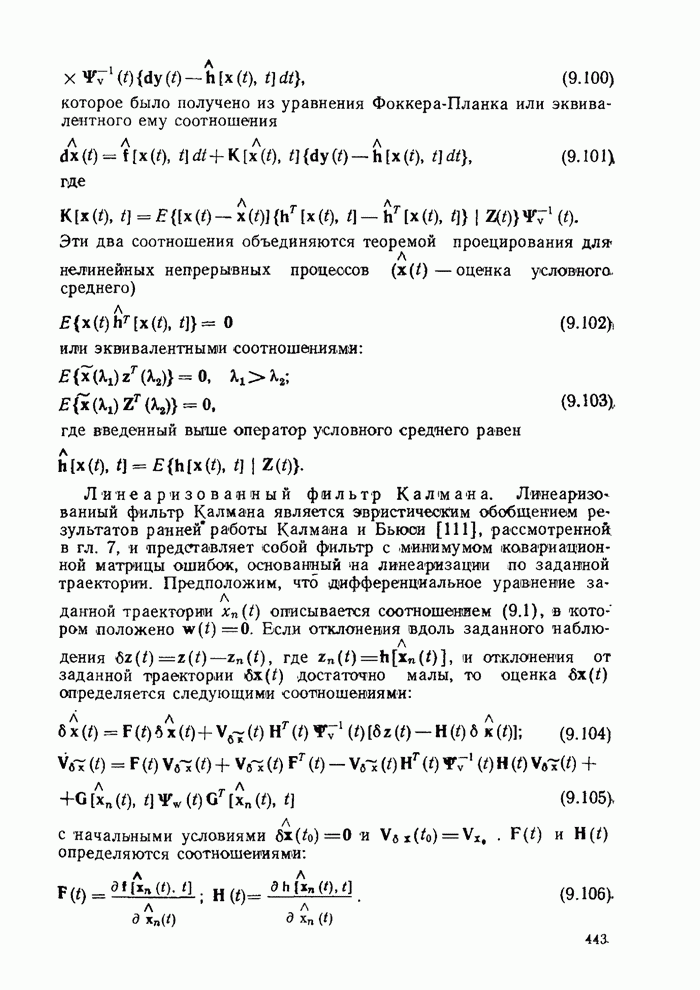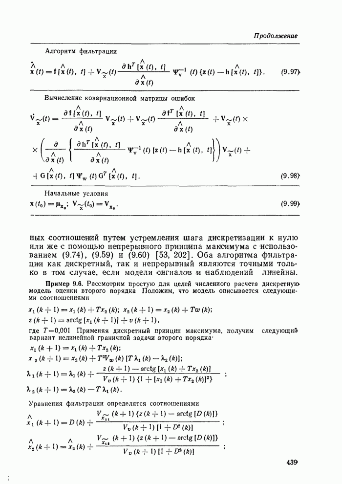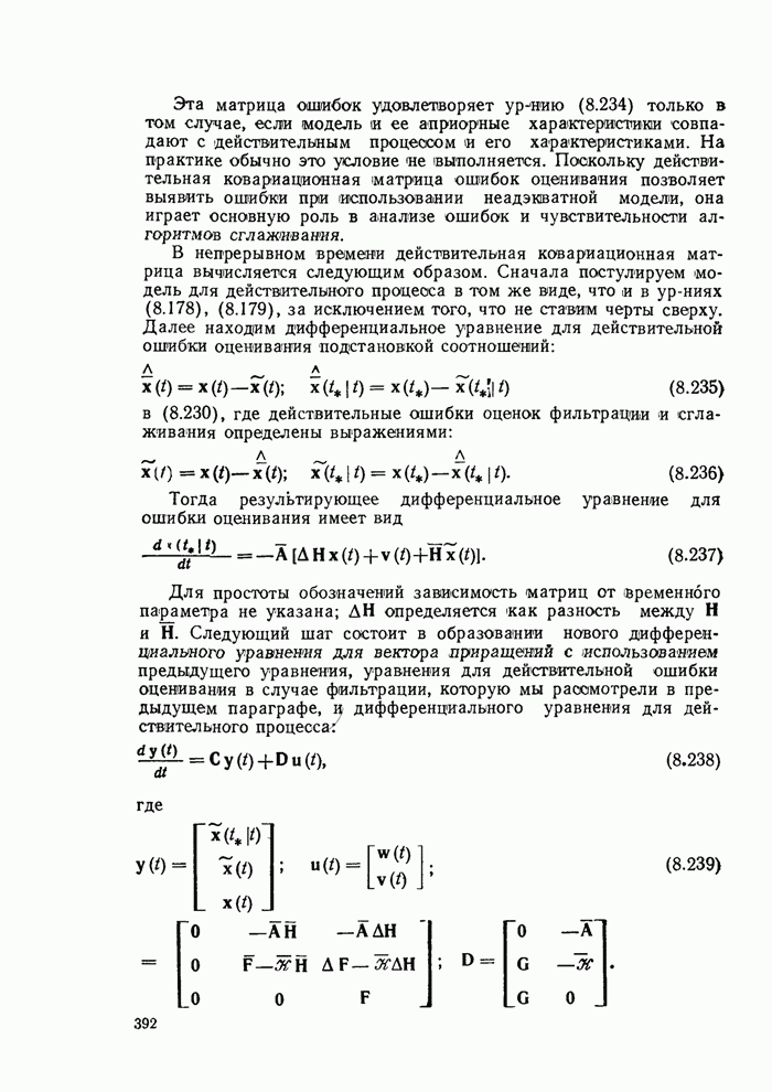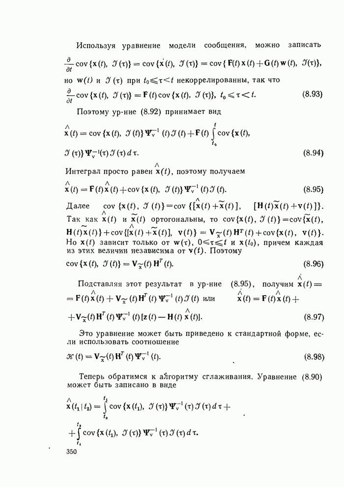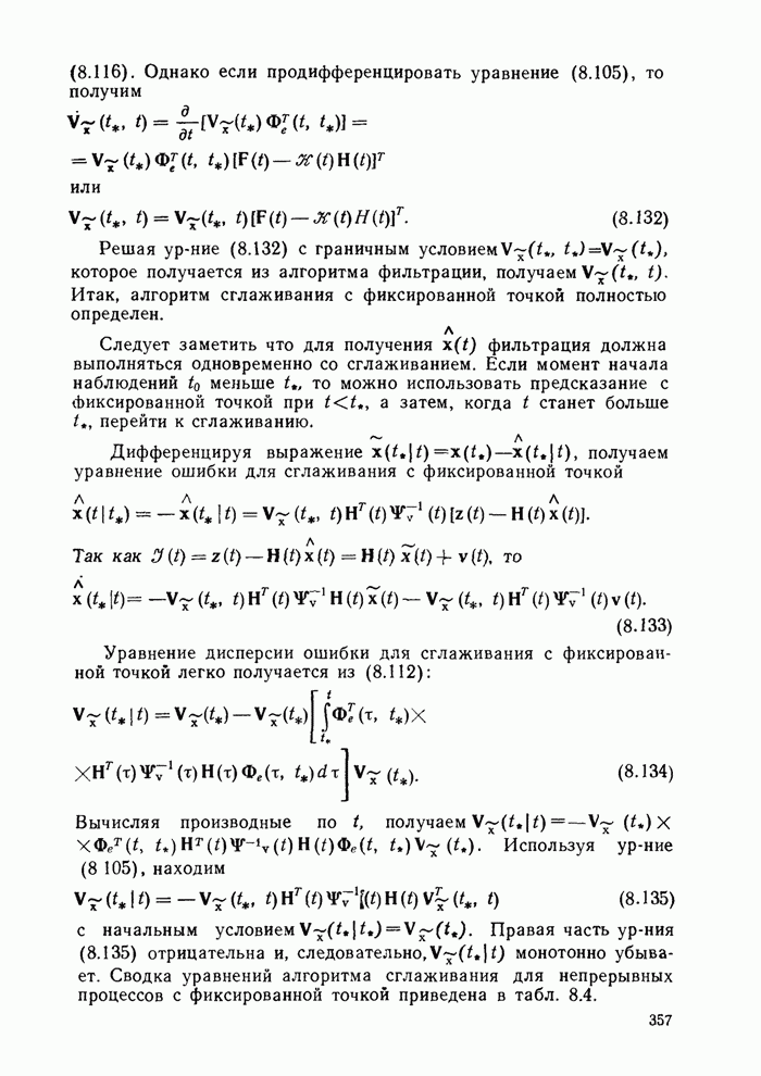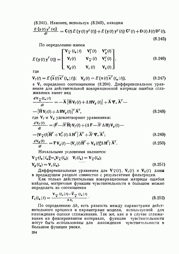 мы выбираем В заключение главы интересно, хотя бы вкратце, рассмотреть один из способов аналитического решения нелинейного уравнения дисперсии путем решения системы линейных матричных дифференциальных уравнений. В вычислительном отношении этот метод не представляет большой ценности, поскольку, за исключением случая стационарных моделей сообщения и наблюдений, получающиеся при этом уравнения не могут быть достаточно легко решены. С другой стороны, этот метод часто оказывается весьма полезным при формулировке общих выводов о характере решения уравнения дисперсии. Пусть