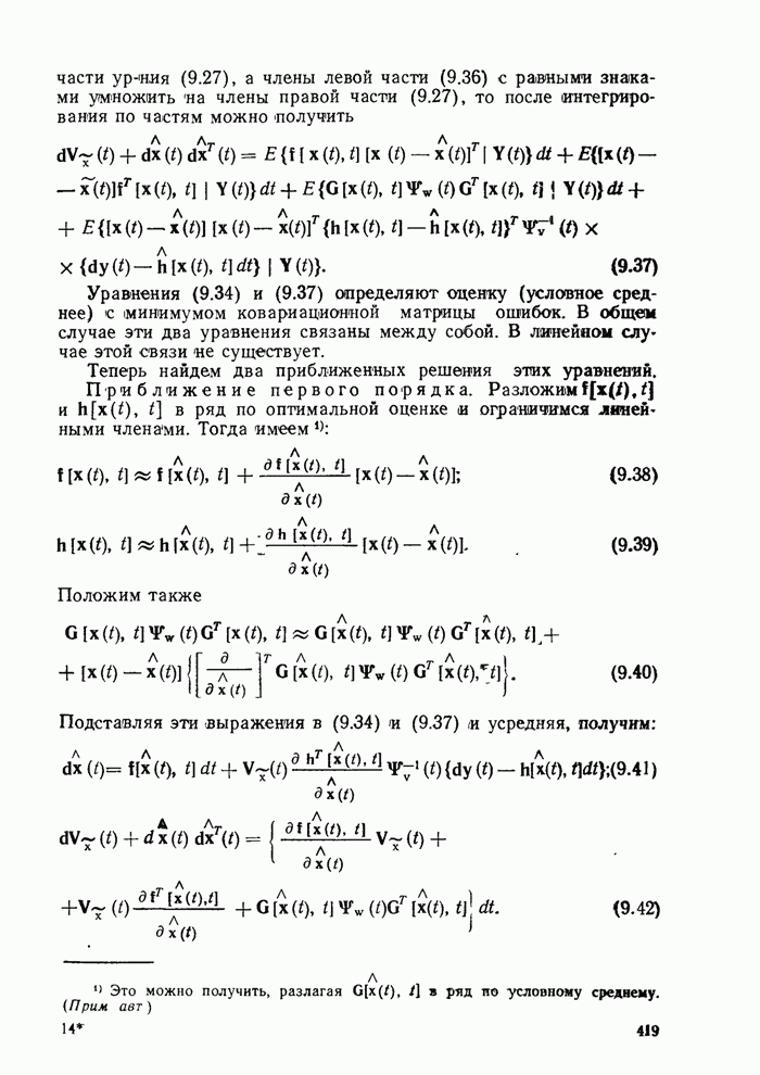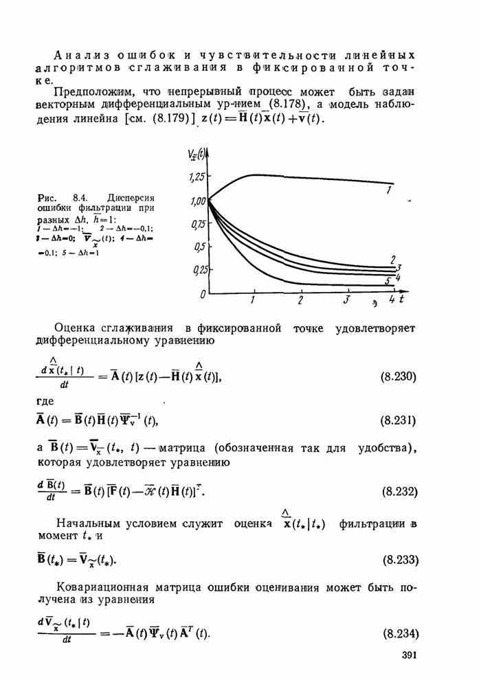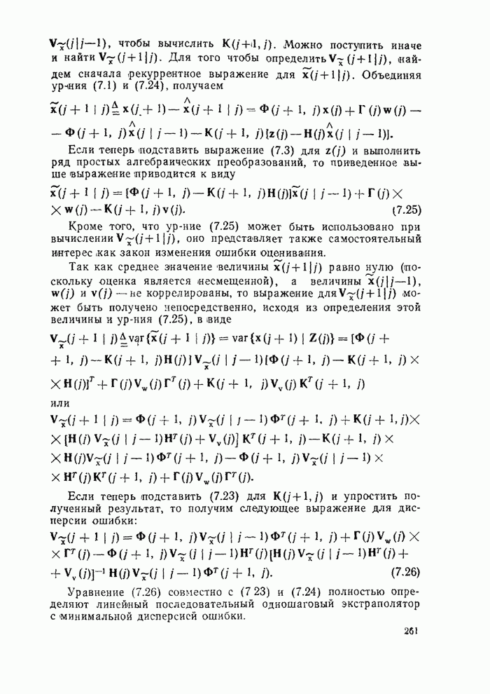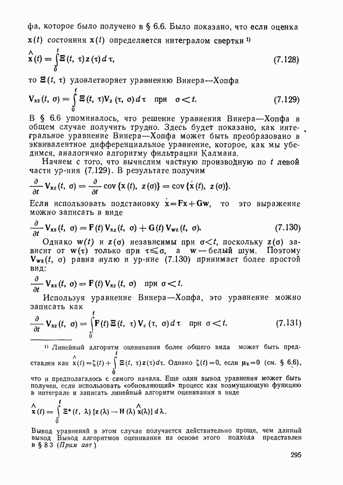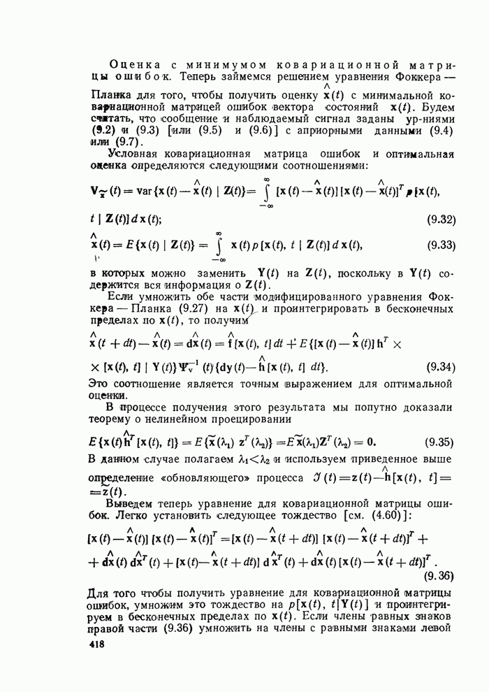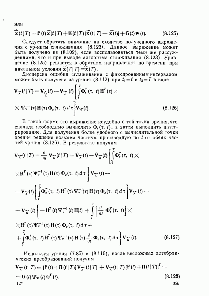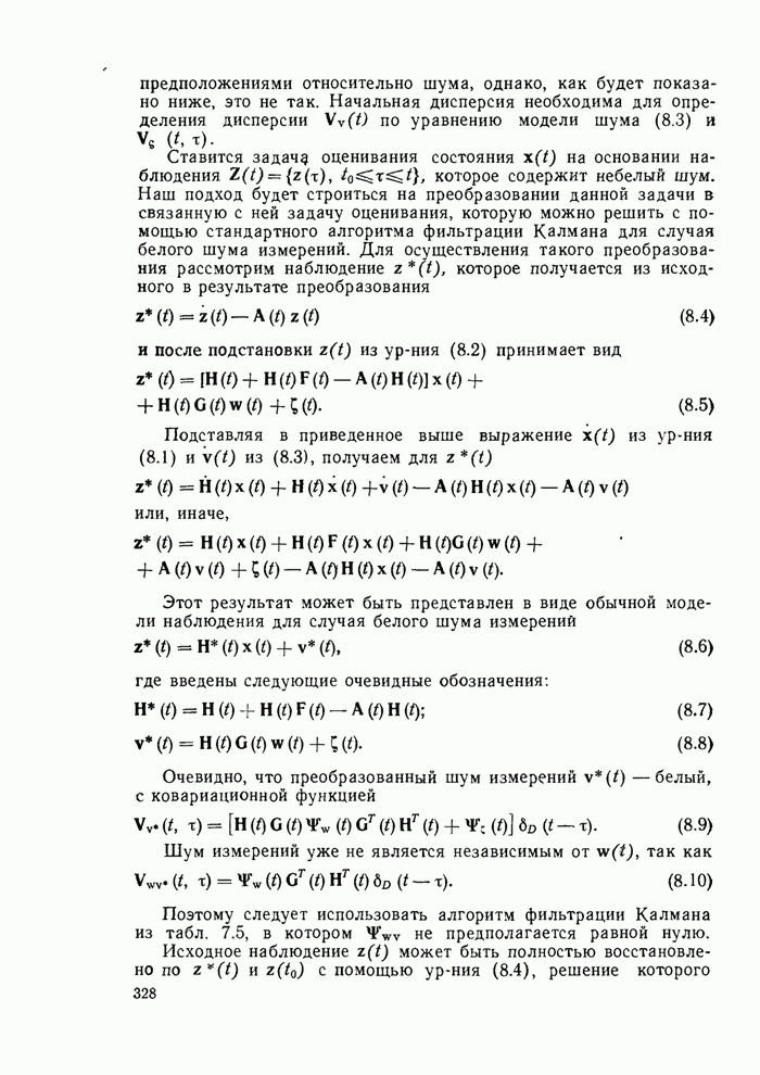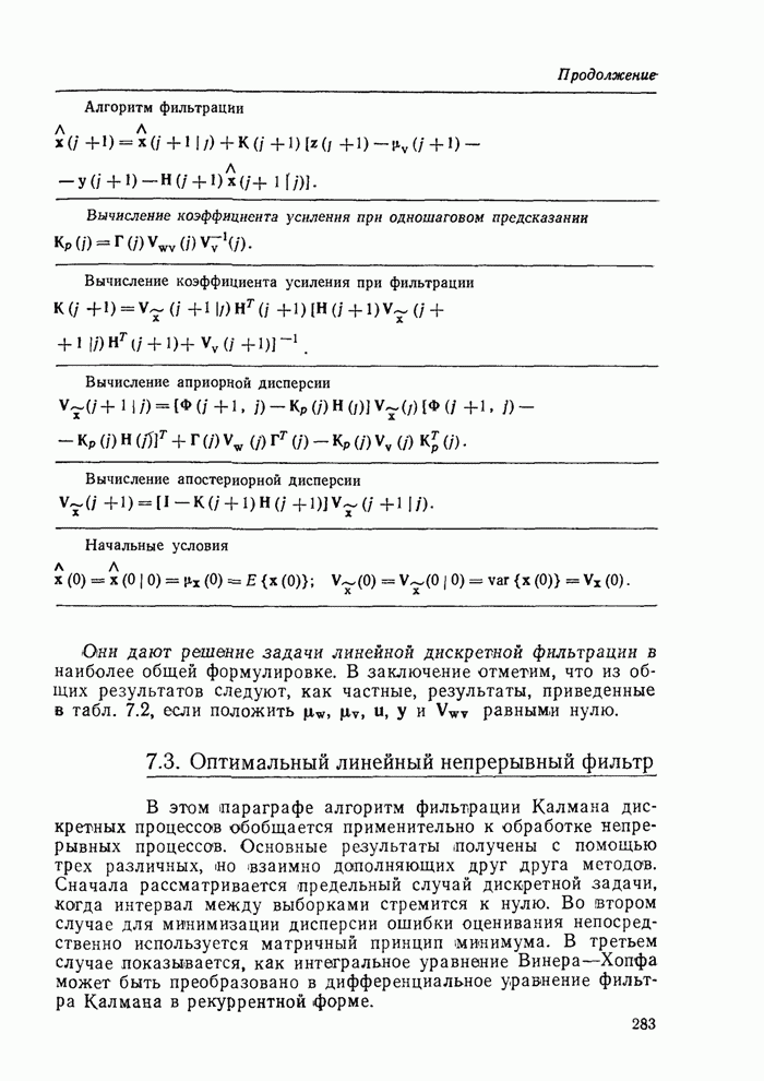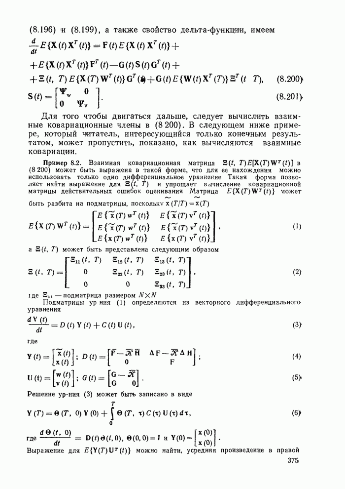 мы выбираем В заключение главы интересно, хотя бы вкратце, рассмотреть один из способов аналитического решения нелинейного уравнения дисперсии путем решения системы линейных матричных дифференциальных уравнений. В вычислительном отношении этот метод не представляет большой ценности, поскольку, за исключением случая стационарных моделей сообщения и наблюдений, получающиеся при этом уравнения не могут быть достаточно легко решены. С другой стороны, этот метод часто оказывается весьма полезным при формулировке общих выводов о характере решения уравнения дисперсии. Пусть