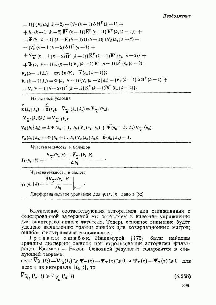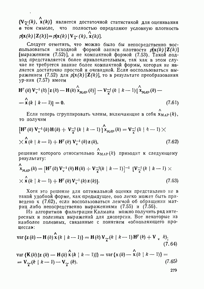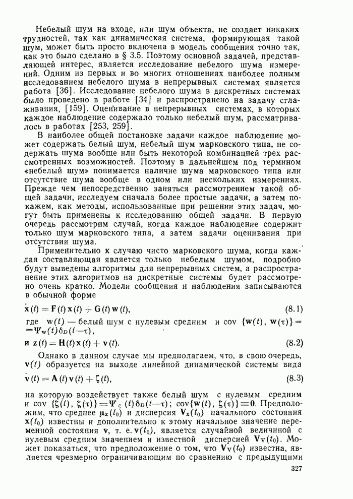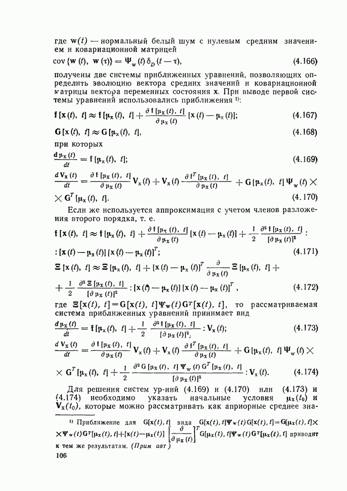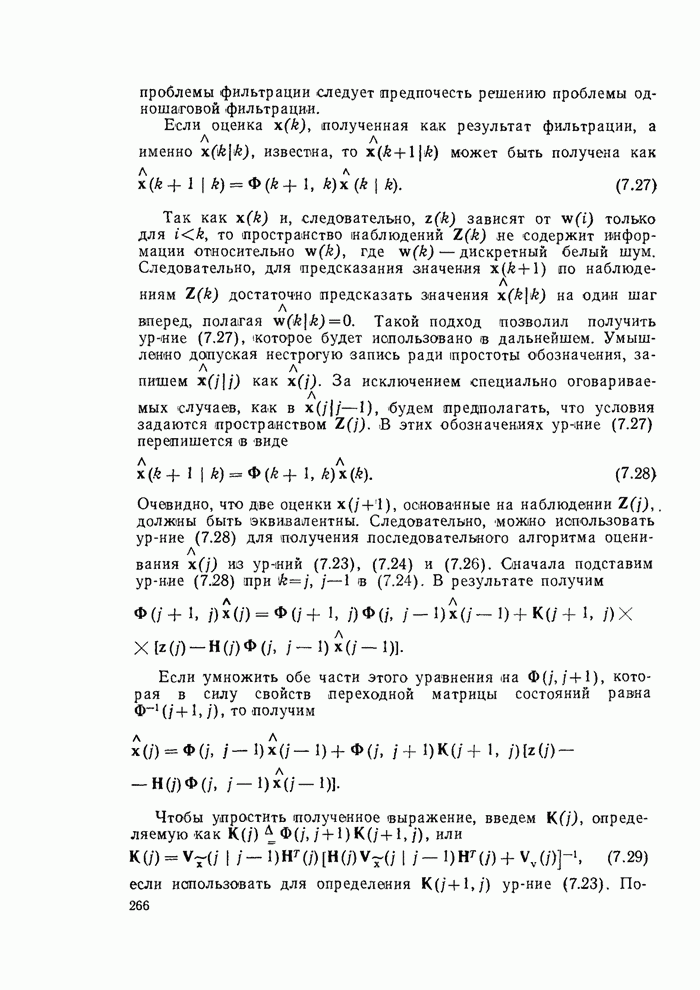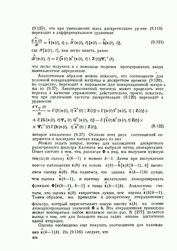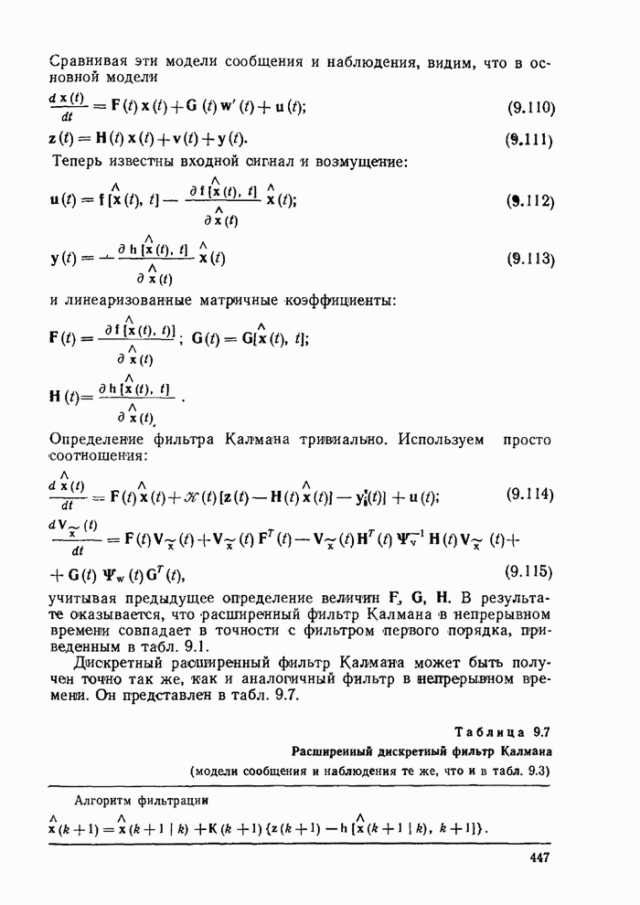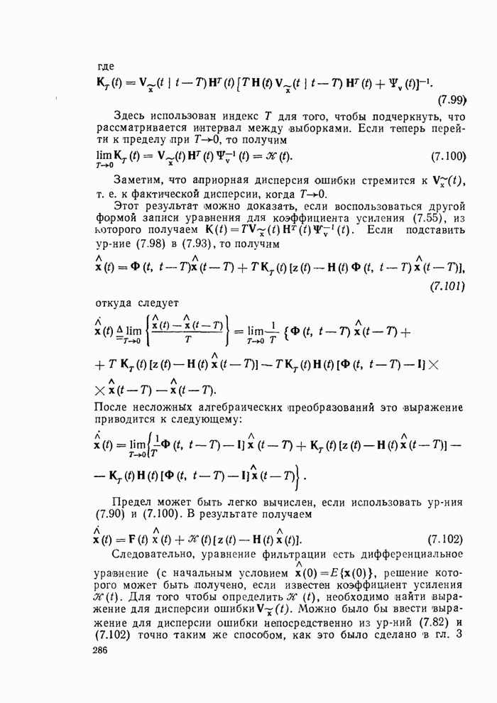мы выбираем В заключение главы интересно, хотя бы вкратце, рассмотреть один из способов аналитического решения нелинейного уравнения дисперсии путем решения системы линейных матричных дифференциальных уравнений. В вычислительном отношении этот метод не представляет большой ценности, поскольку, за исключением случая стационарных моделей сообщения и наблюдений, получающиеся при этом уравнения не могут быть достаточно легко решены. С другой стороны, этот метод часто оказывается весьма полезным при формулировке общих выводов о характере решения уравнения дисперсии. Пусть