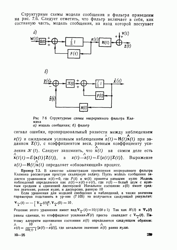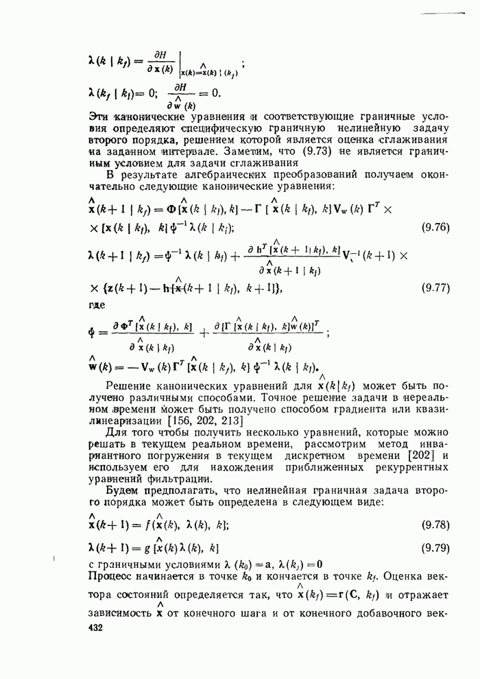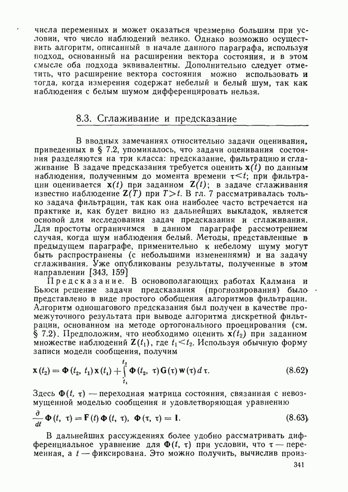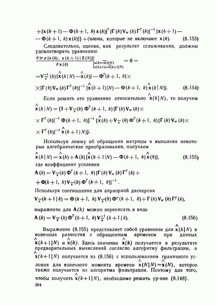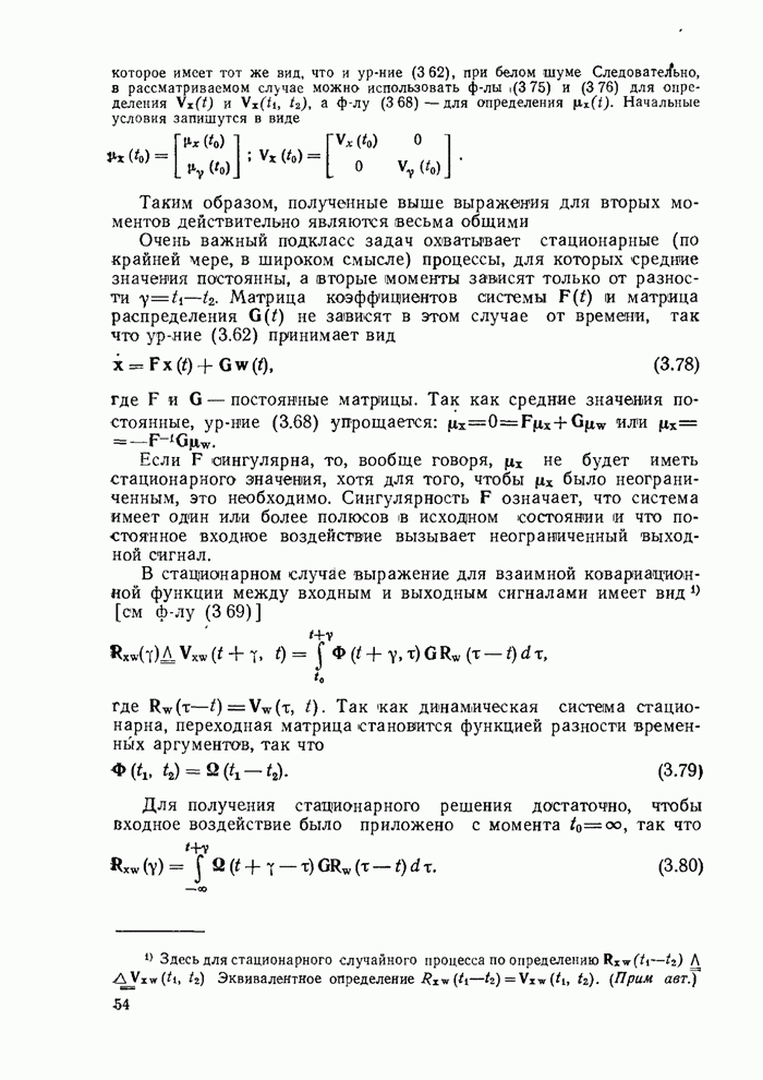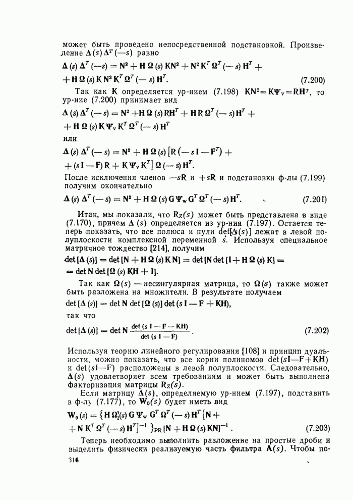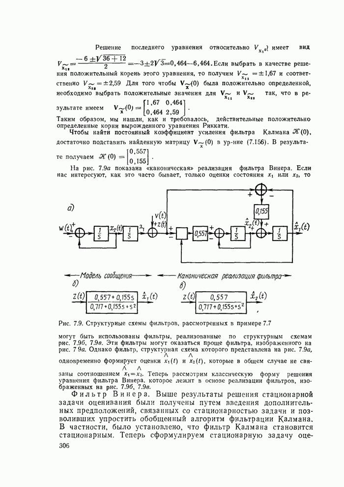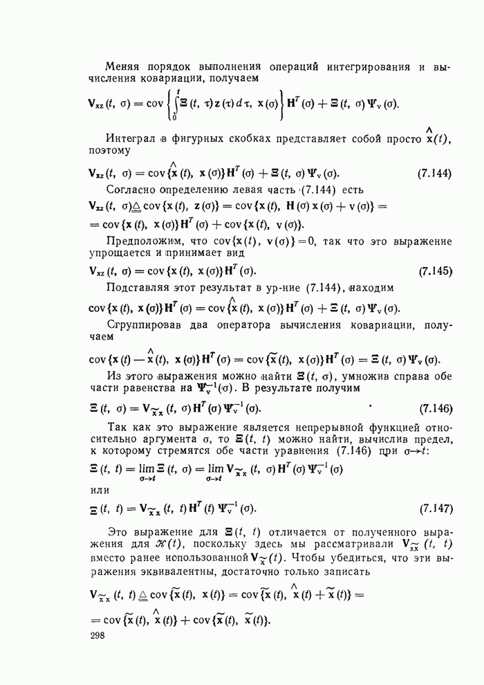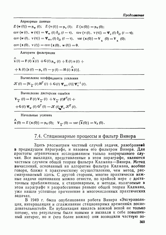 мы выбираем В заключение главы интересно, хотя бы вкратце, рассмотреть один из способов аналитического решения нелинейного уравнения дисперсии путем решения системы линейных матричных дифференциальных уравнений. В вычислительном отношении этот метод не представляет большой ценности, поскольку, за исключением случая стационарных моделей сообщения и наблюдений, получающиеся при этом уравнения не могут быть достаточно легко решены. С другой стороны, этот метод часто оказывается весьма полезным при формулировке общих выводов о характере решения уравнения дисперсии. Пусть
