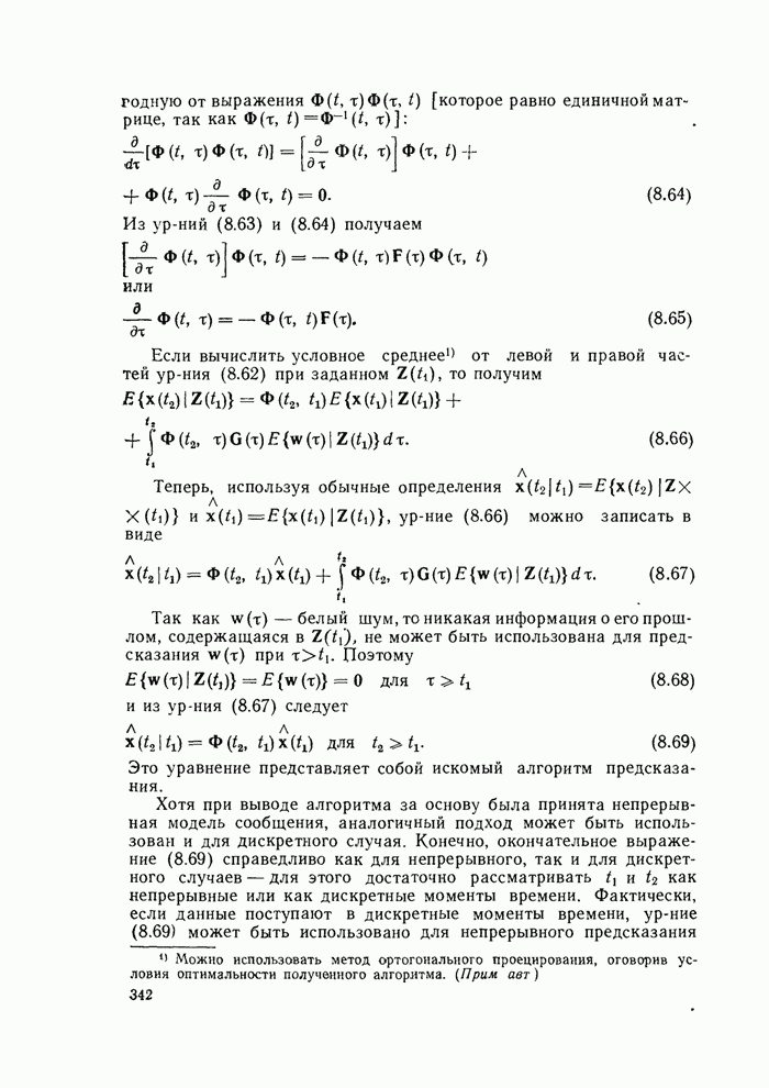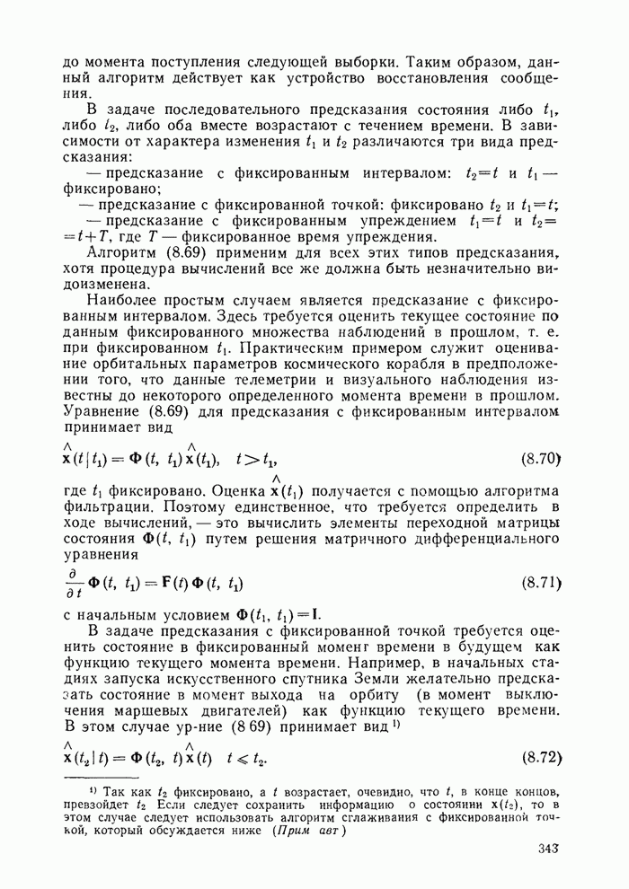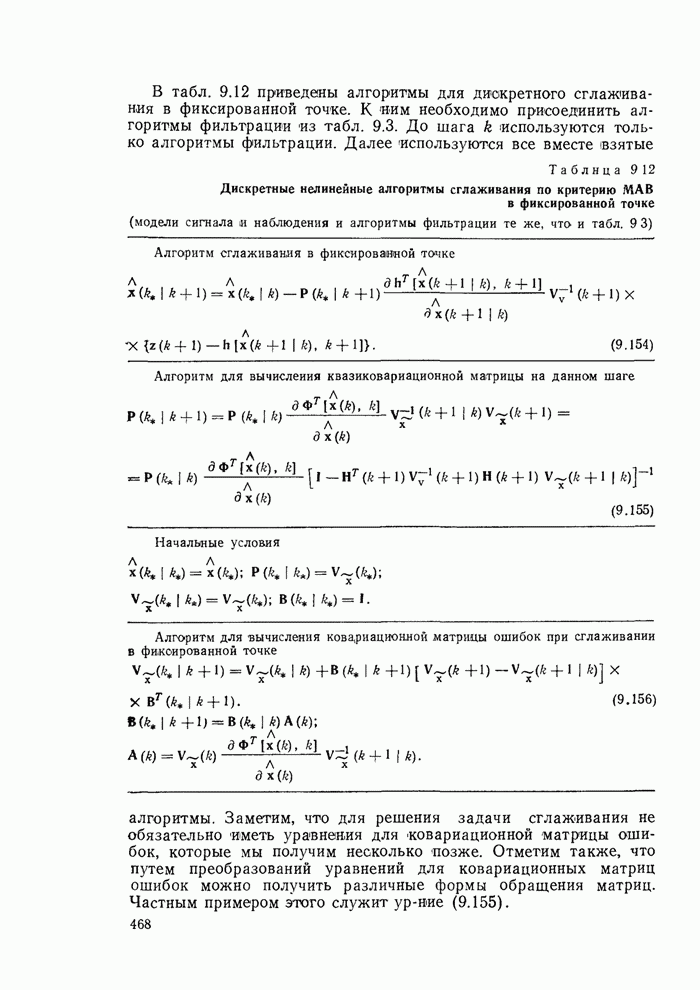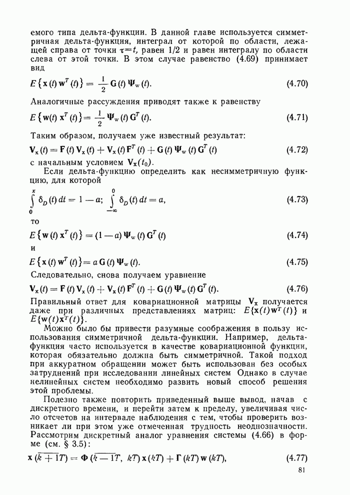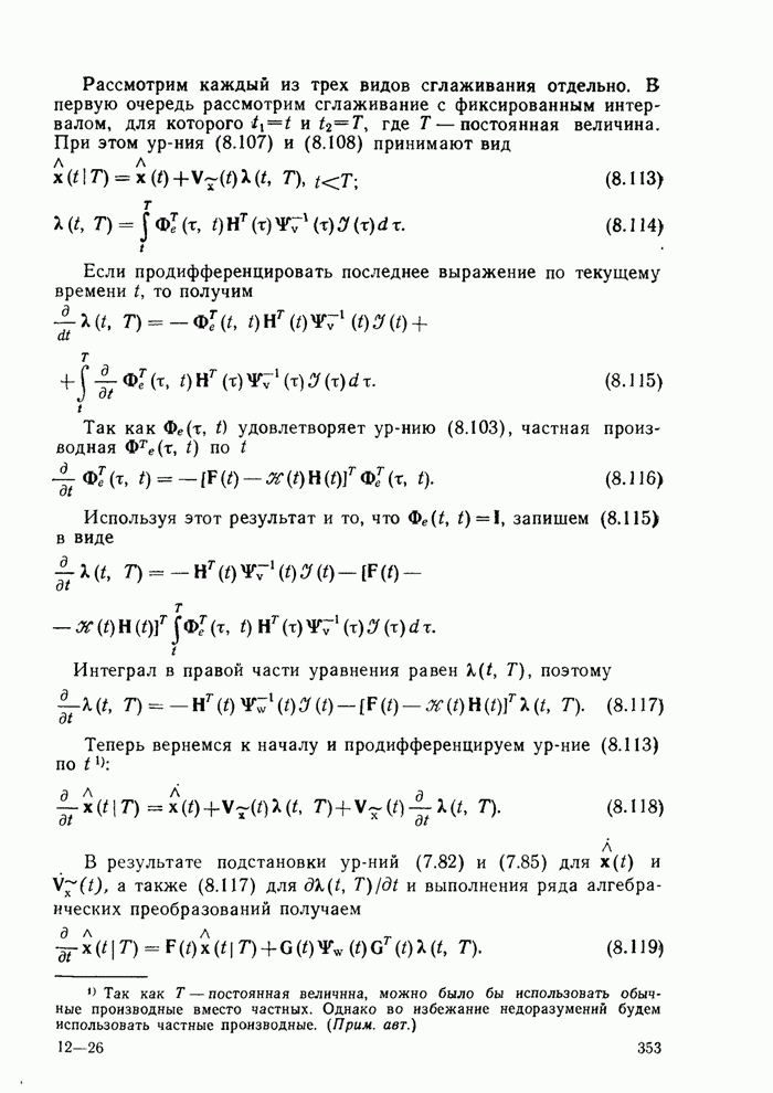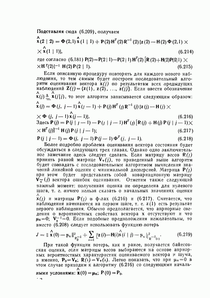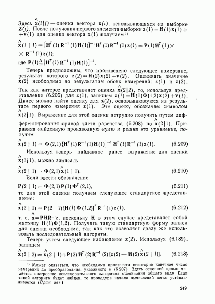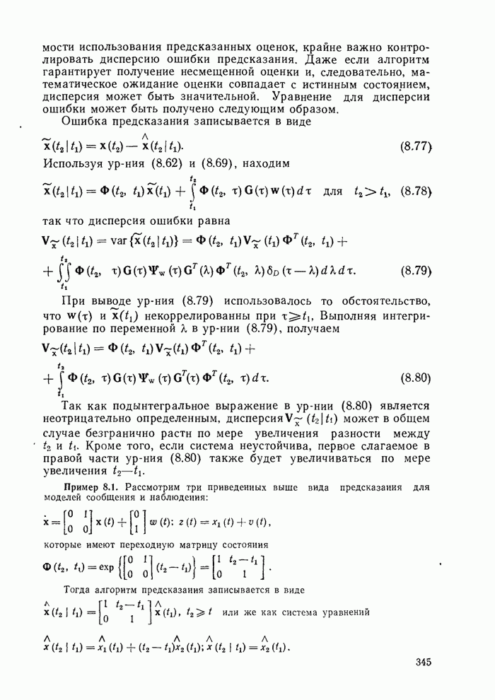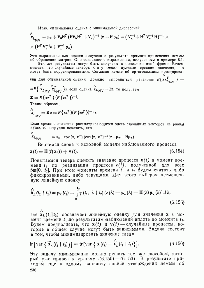 мы выбираем В заключение главы интересно, хотя бы вкратце, рассмотреть один из способов аналитического решения нелинейного уравнения дисперсии путем решения системы линейных матричных дифференциальных уравнений. В вычислительном отношении этот метод не представляет большой ценности, поскольку, за исключением случая стационарных моделей сообщения и наблюдений, получающиеся при этом уравнения не могут быть достаточно легко решены. С другой стороны, этот метод часто оказывается весьма полезным при формулировке общих выводов о характере решения уравнения дисперсии. Пусть