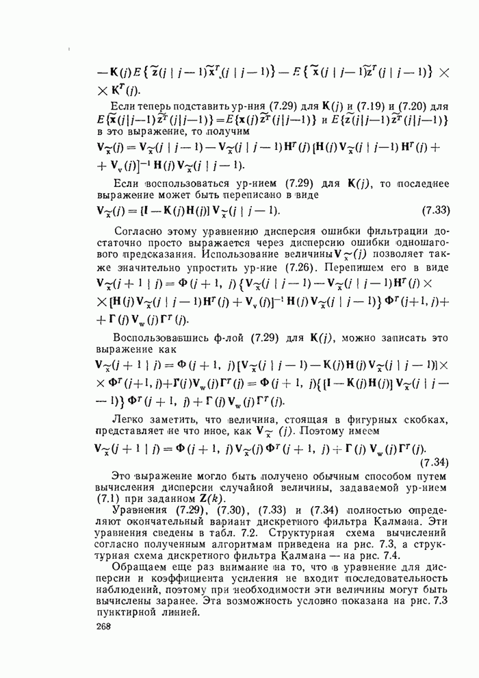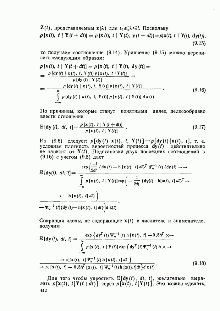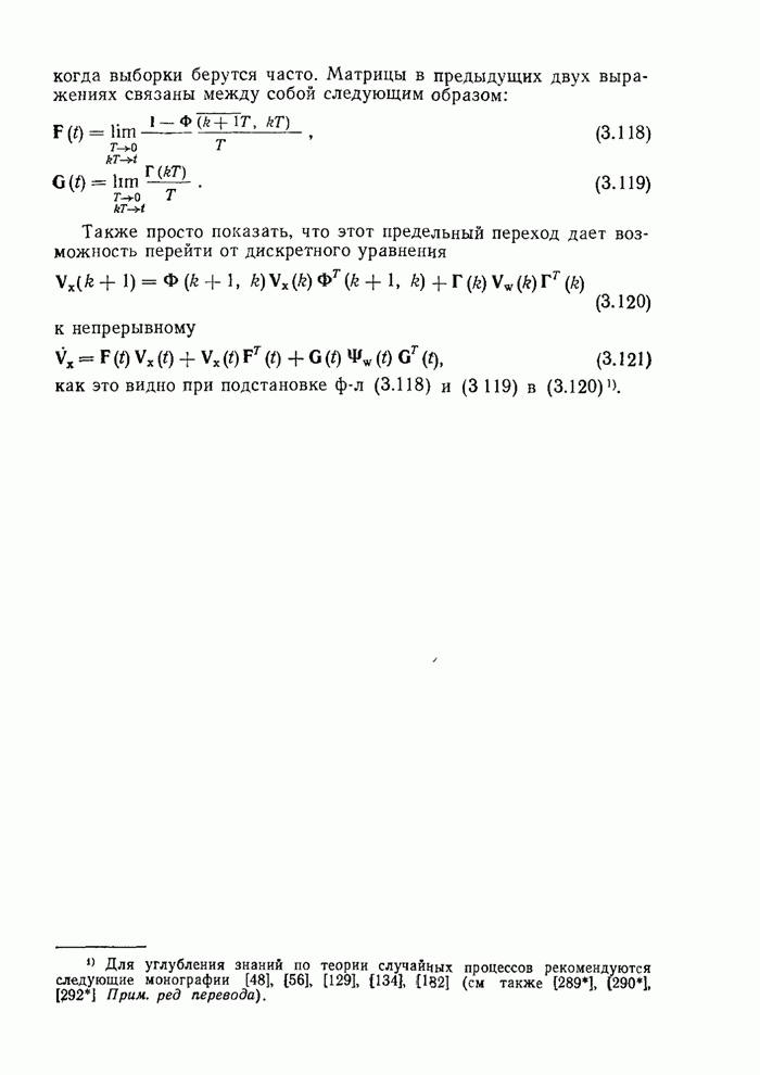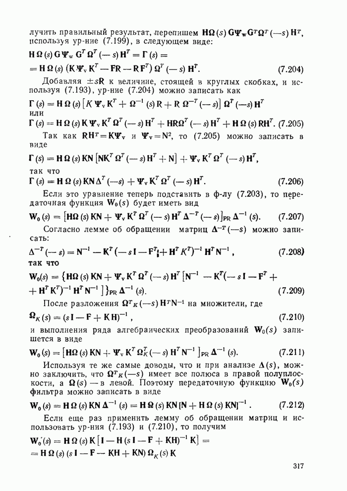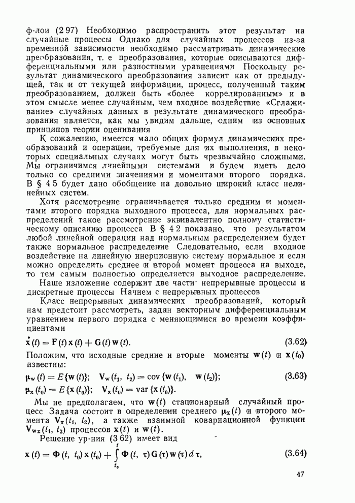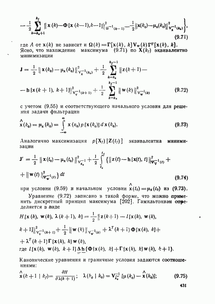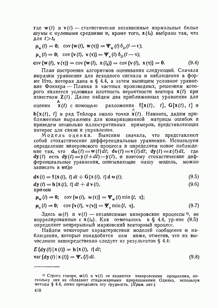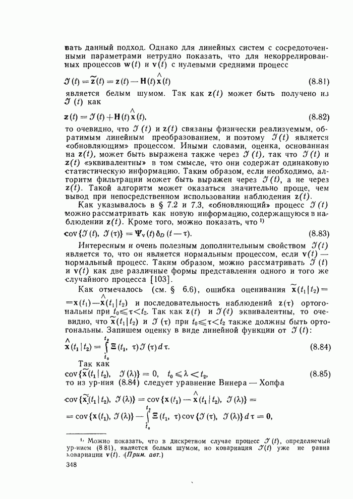 мы выбираем В заключение главы интересно, хотя бы вкратце, рассмотреть один из способов аналитического решения нелинейного уравнения дисперсии путем решения системы линейных матричных дифференциальных уравнений. В вычислительном отношении этот метод не представляет большой ценности, поскольку, за исключением случая стационарных моделей сообщения и наблюдений, получающиеся при этом уравнения не могут быть достаточно легко решены. С другой стороны, этот метод часто оказывается весьма полезным при формулировке общих выводов о характере решения уравнения дисперсии. Пусть