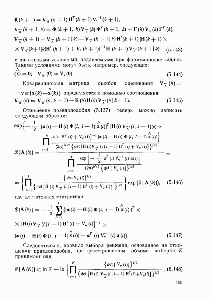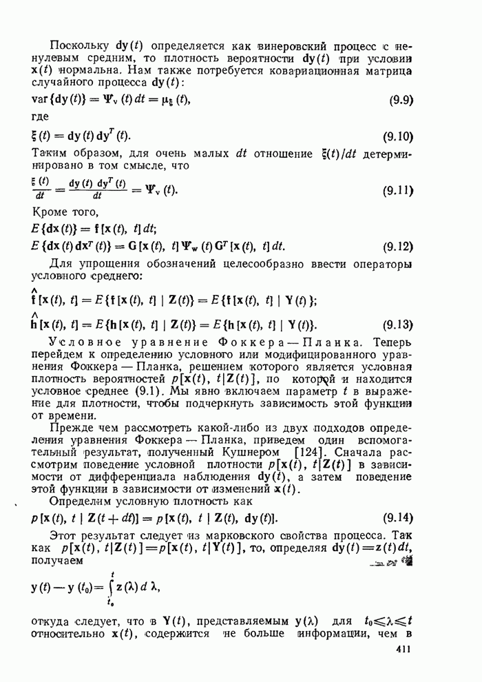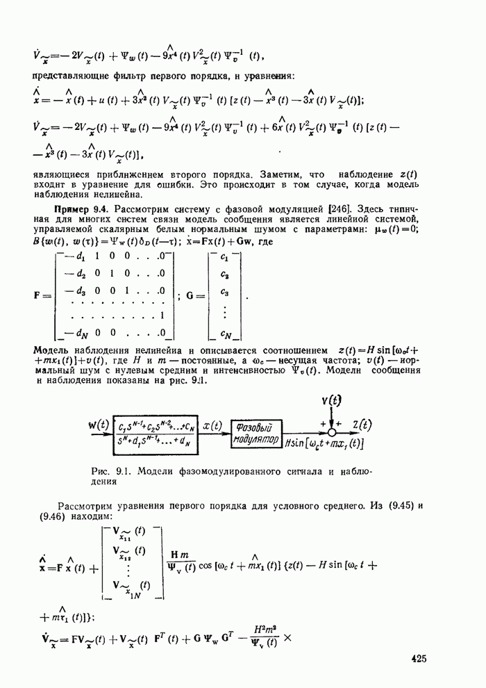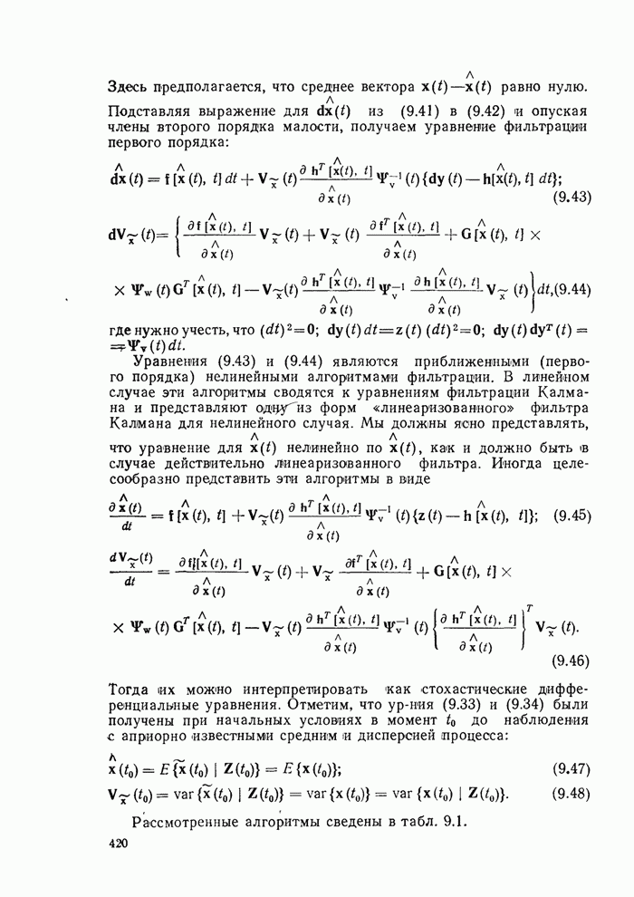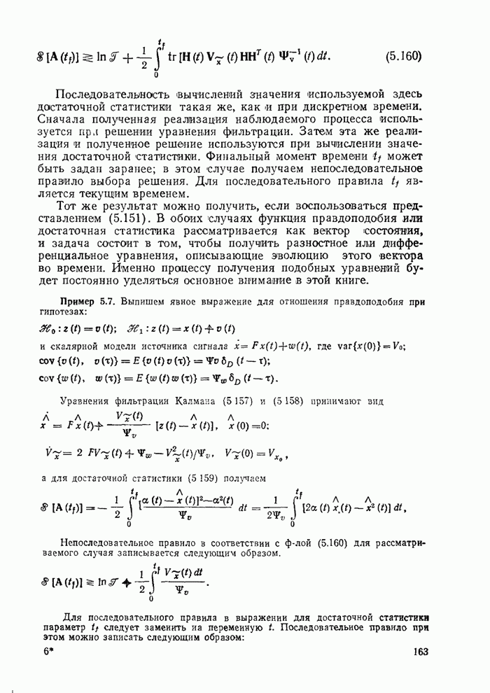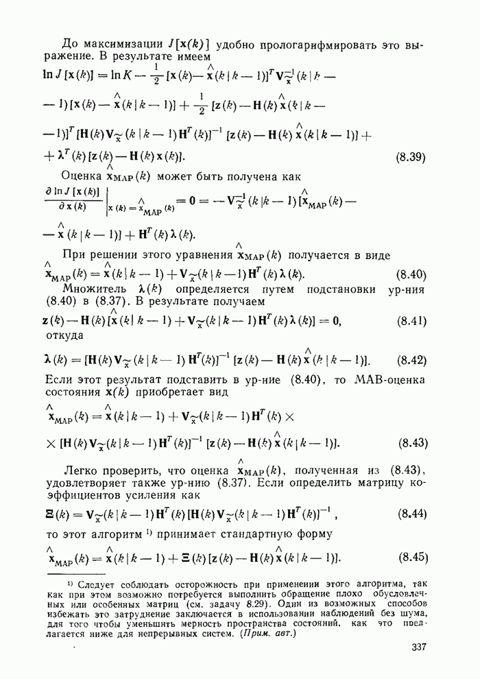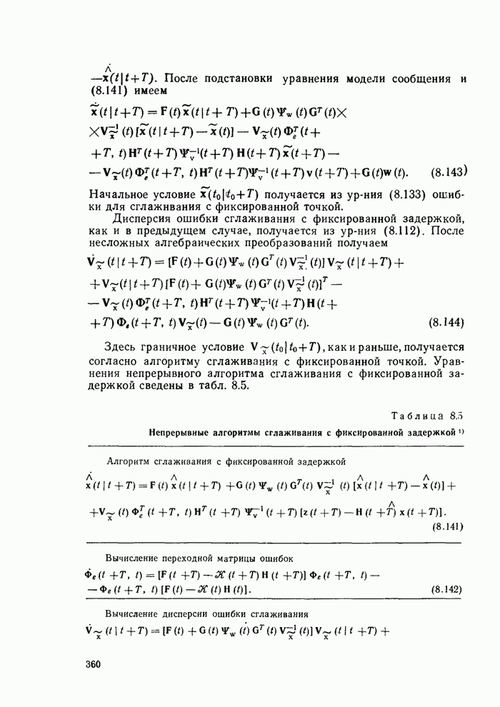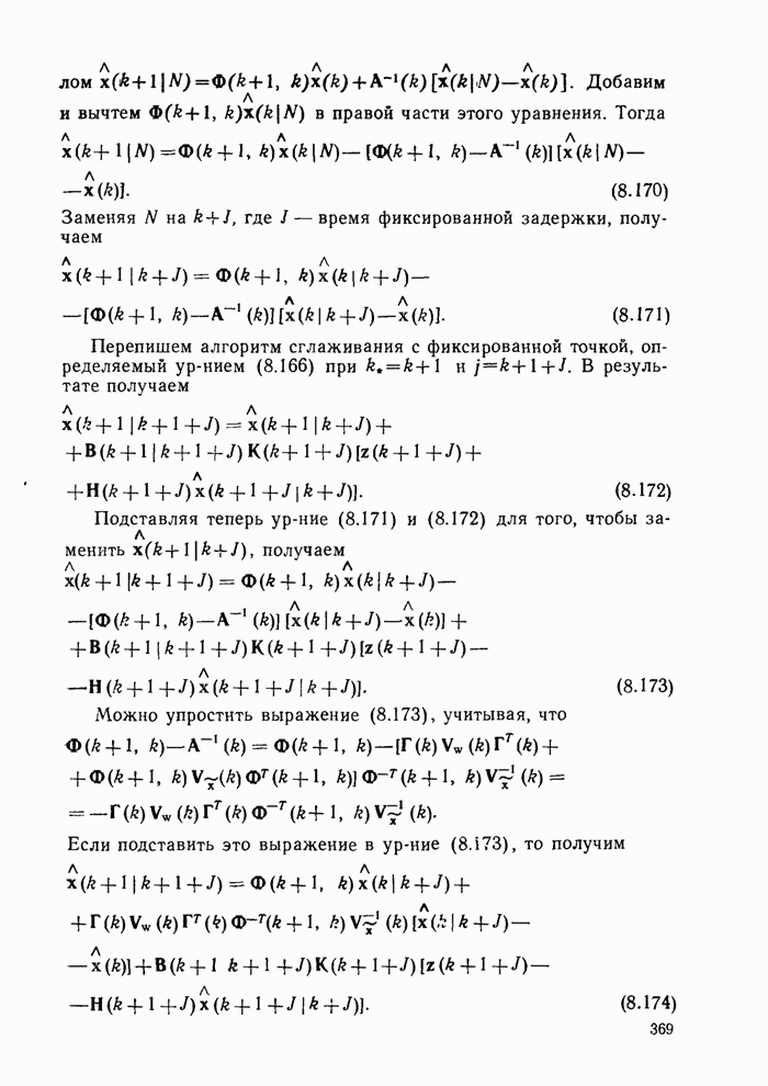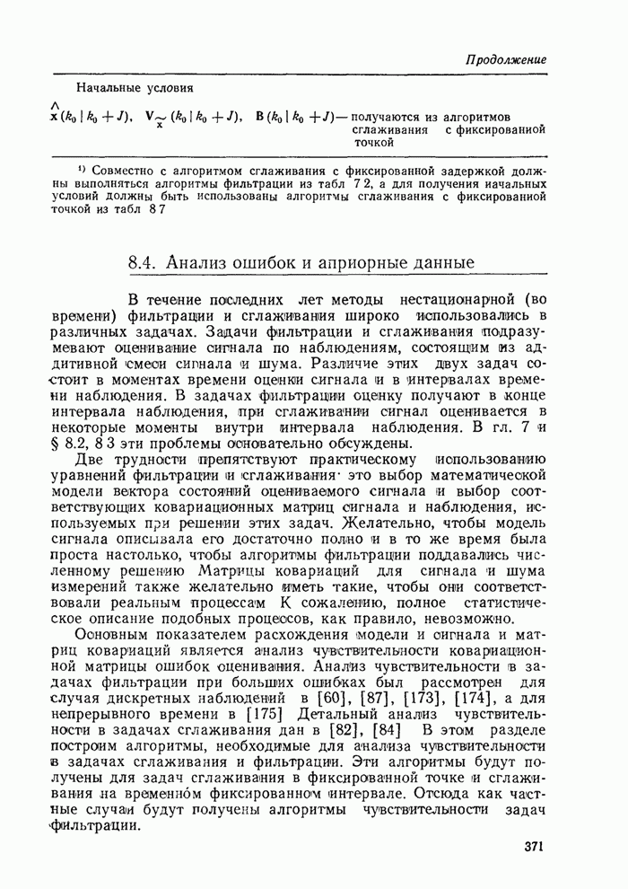 мы выбираем В заключение главы интересно, хотя бы вкратце, рассмотреть один из способов аналитического решения нелинейного уравнения дисперсии путем решения системы линейных матричных дифференциальных уравнений. В вычислительном отношении этот метод не представляет большой ценности, поскольку, за исключением случая стационарных моделей сообщения и наблюдений, получающиеся при этом уравнения не могут быть достаточно легко решены. С другой стороны, этот метод часто оказывается весьма полезным при формулировке общих выводов о характере решения уравнения дисперсии. Пусть