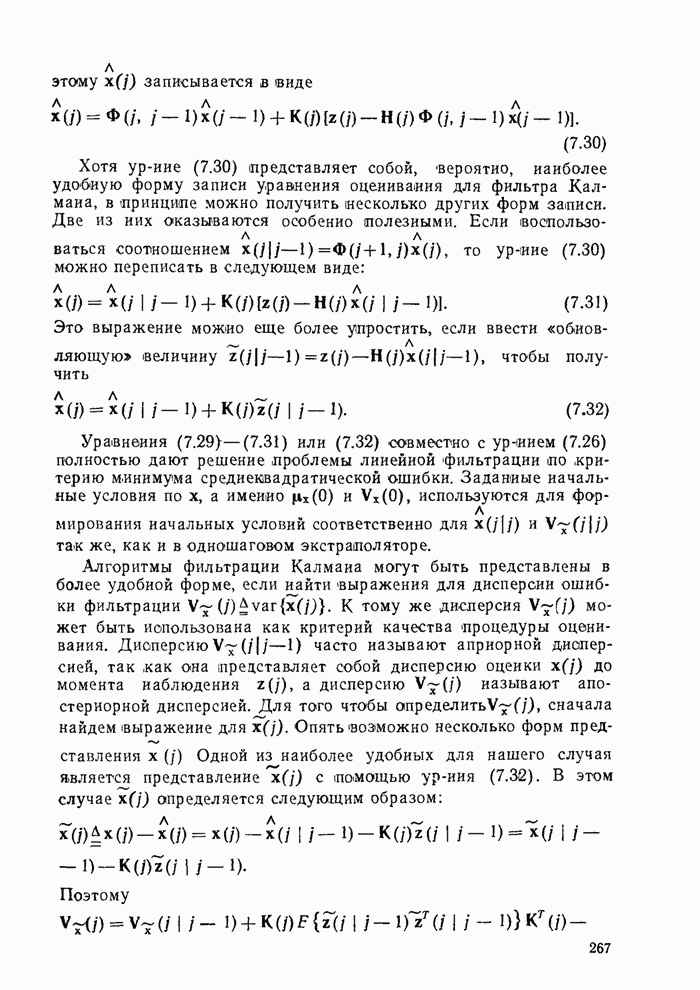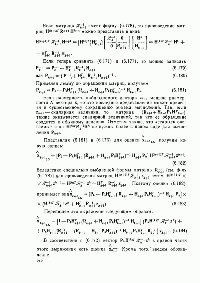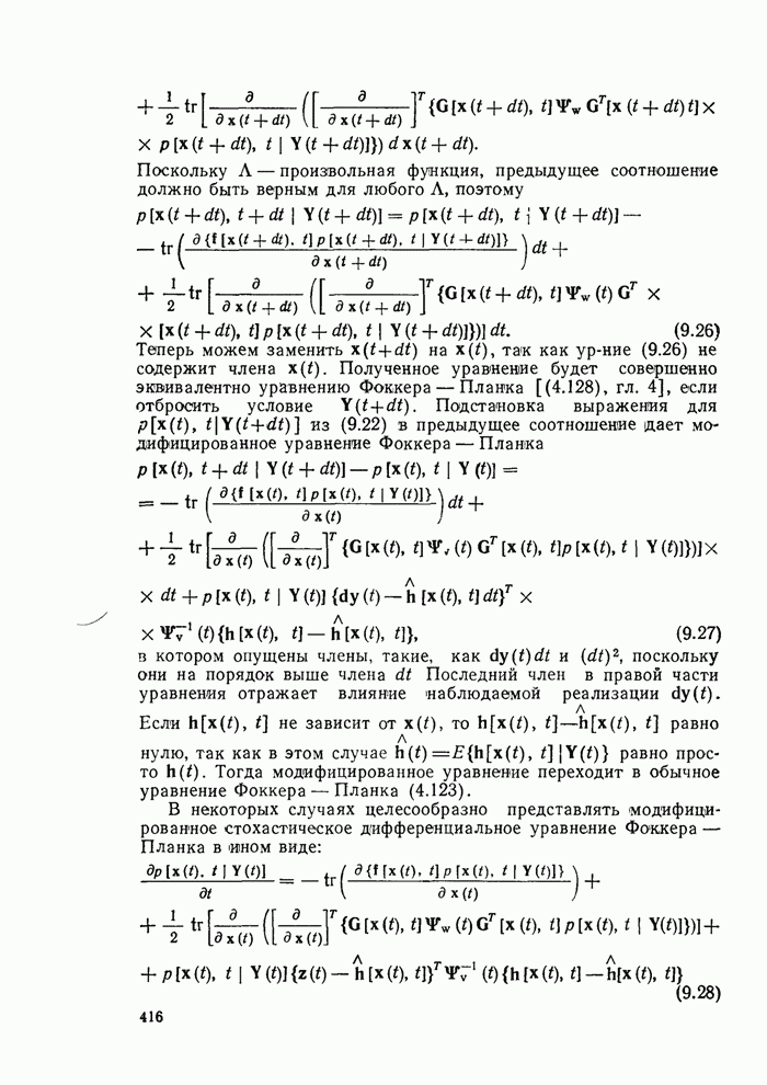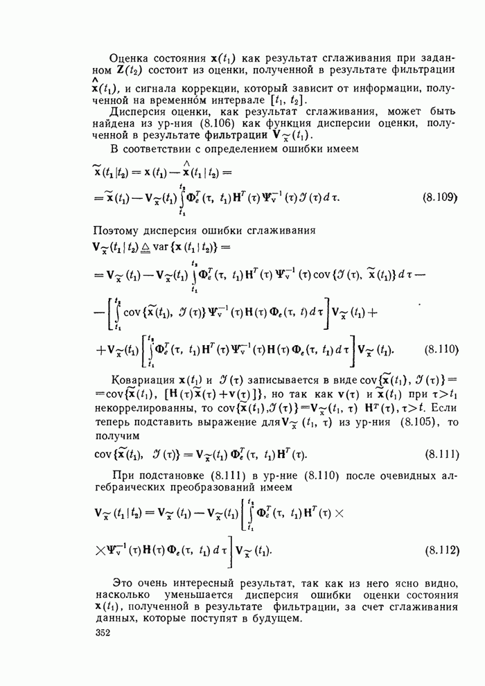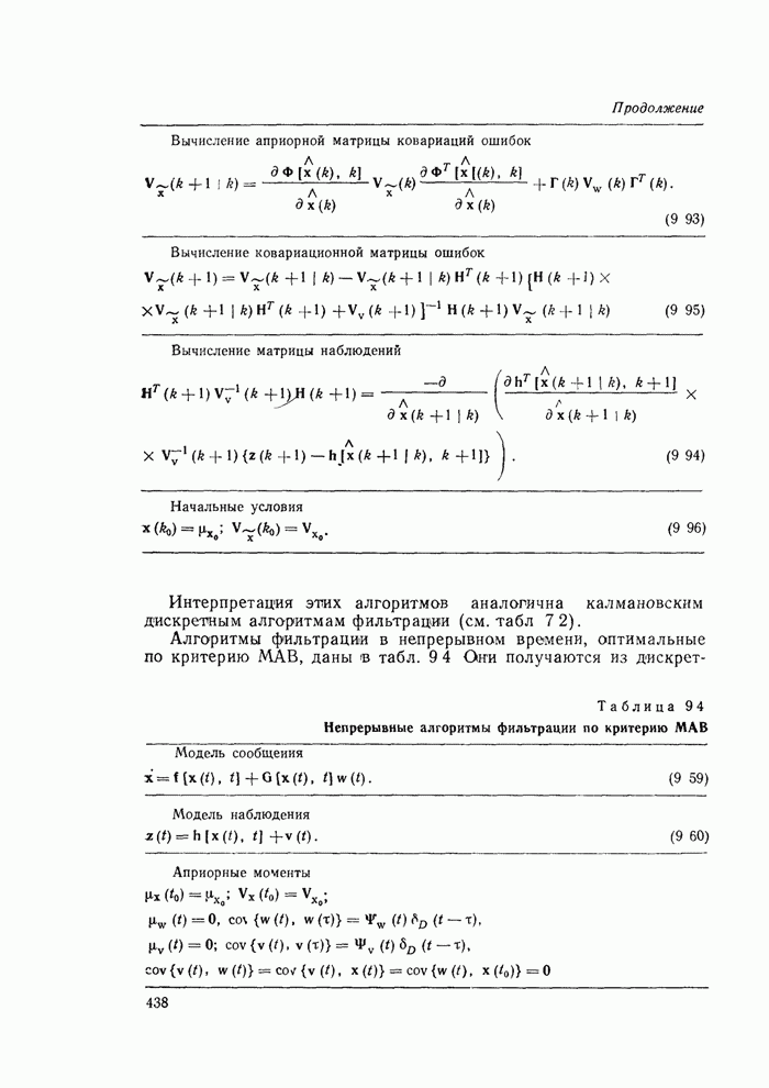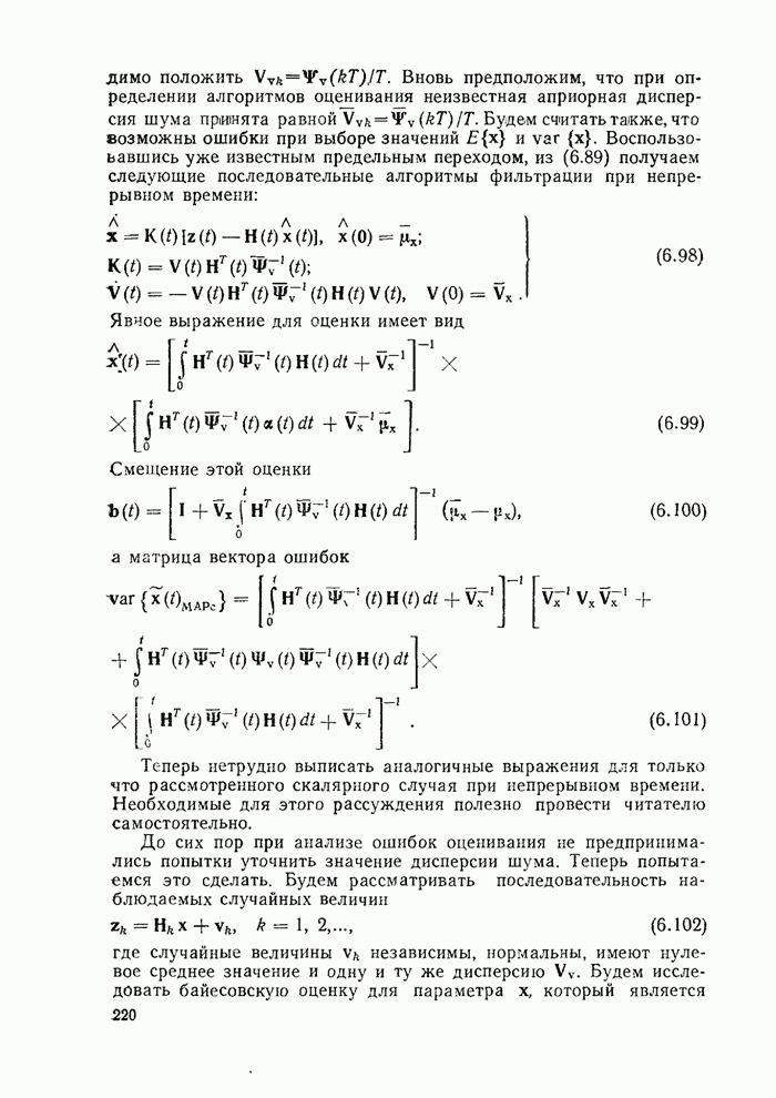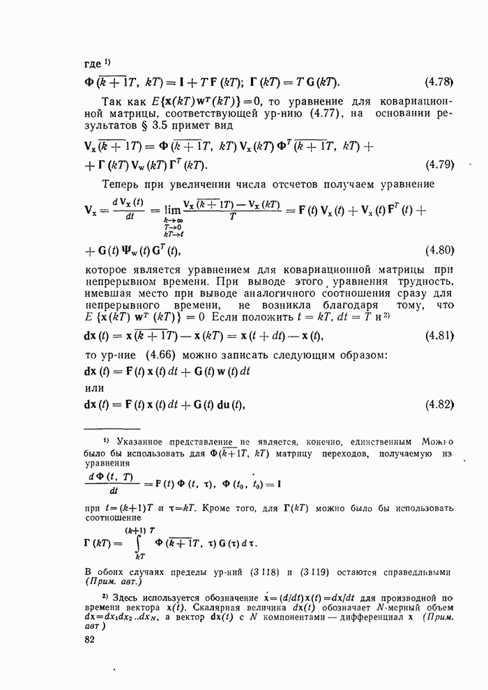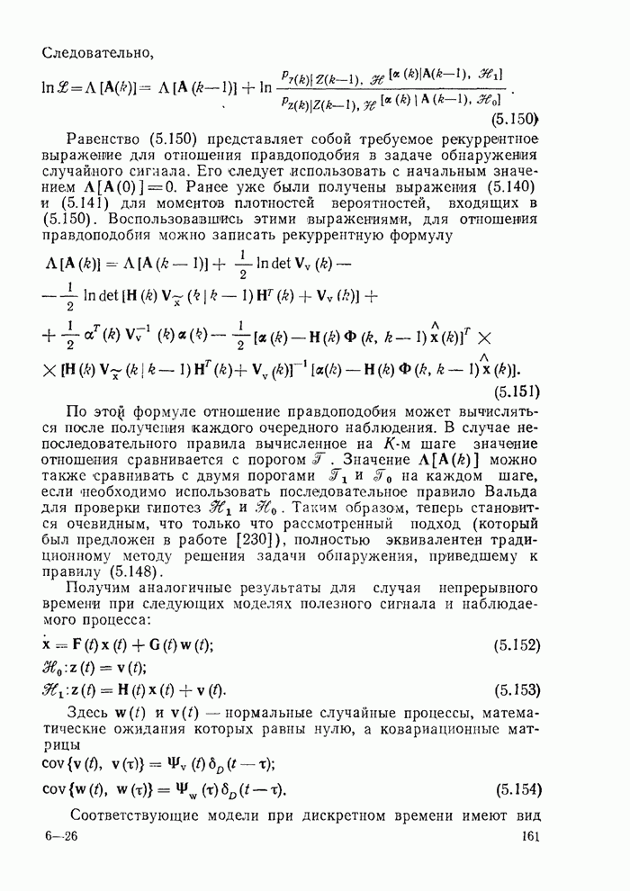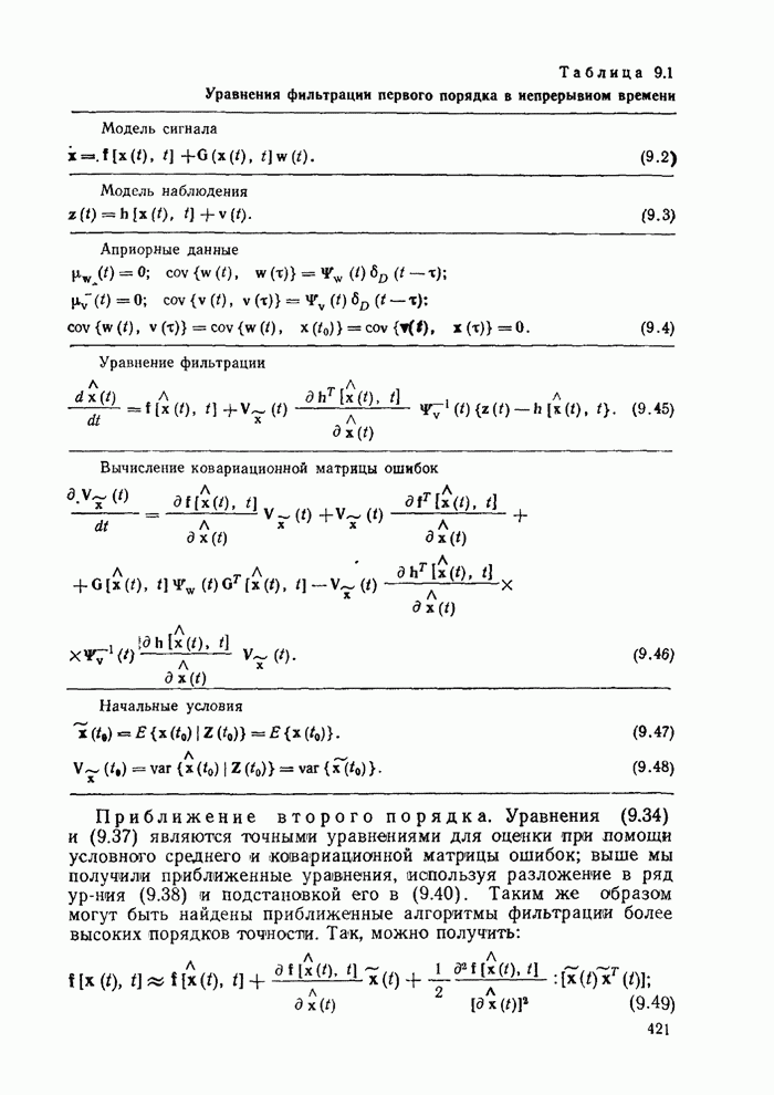 мы выбираем В заключение главы интересно, хотя бы вкратце, рассмотреть один из способов аналитического решения нелинейного уравнения дисперсии путем решения системы линейных матричных дифференциальных уравнений. В вычислительном отношении этот метод не представляет большой ценности, поскольку, за исключением случая стационарных моделей сообщения и наблюдений, получающиеся при этом уравнения не могут быть достаточно легко решены. С другой стороны, этот метод часто оказывается весьма полезным при формулировке общих выводов о характере решения уравнения дисперсии. Пусть