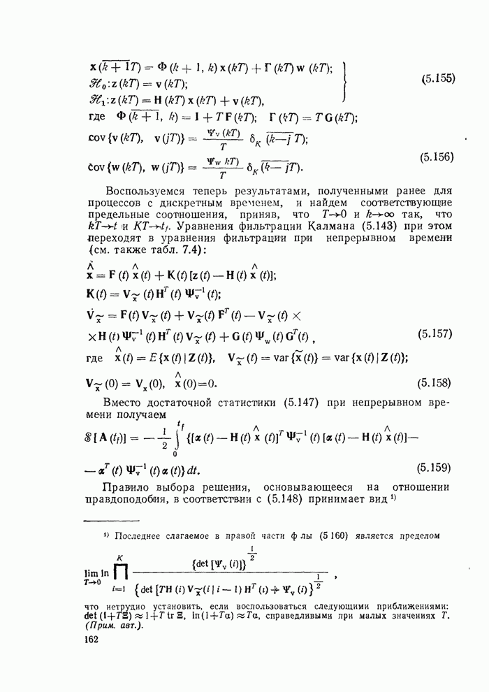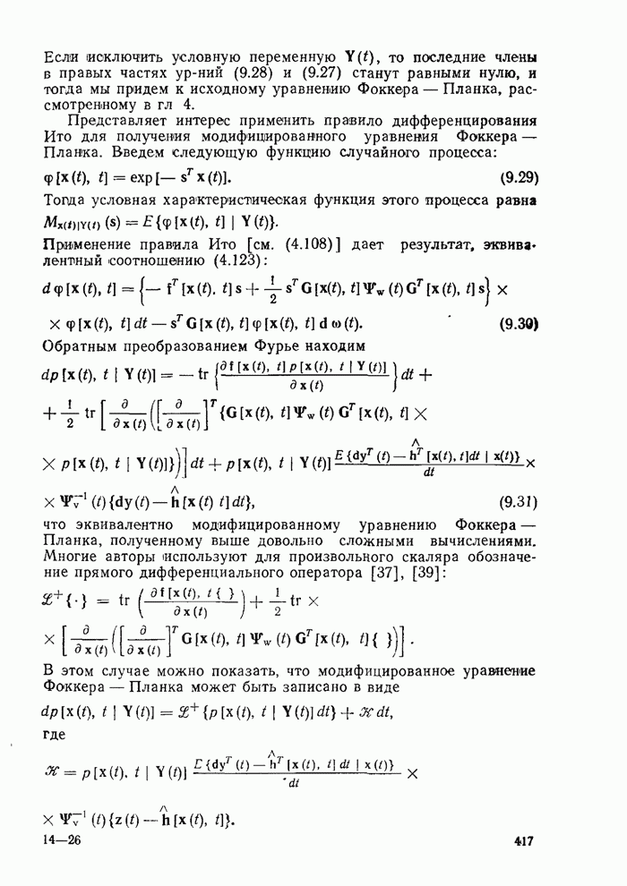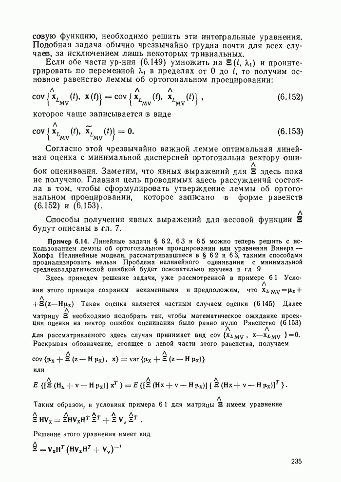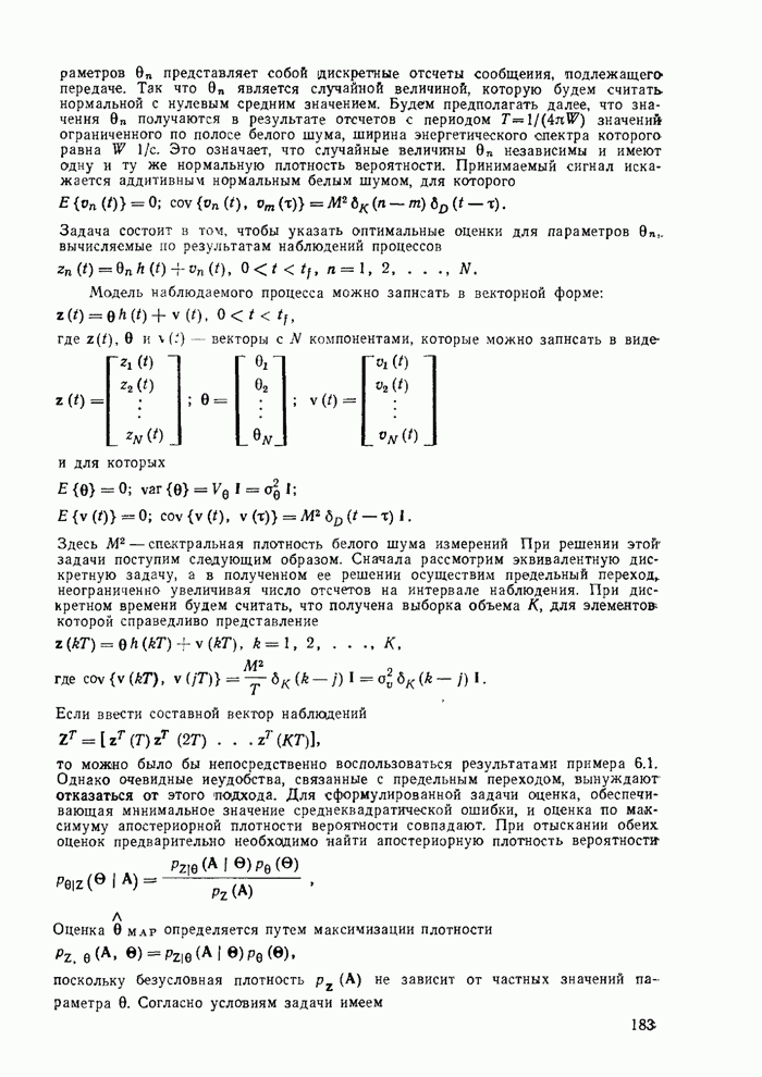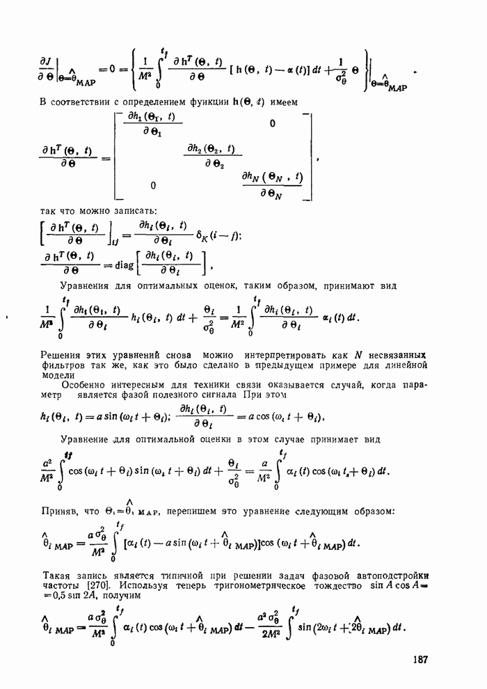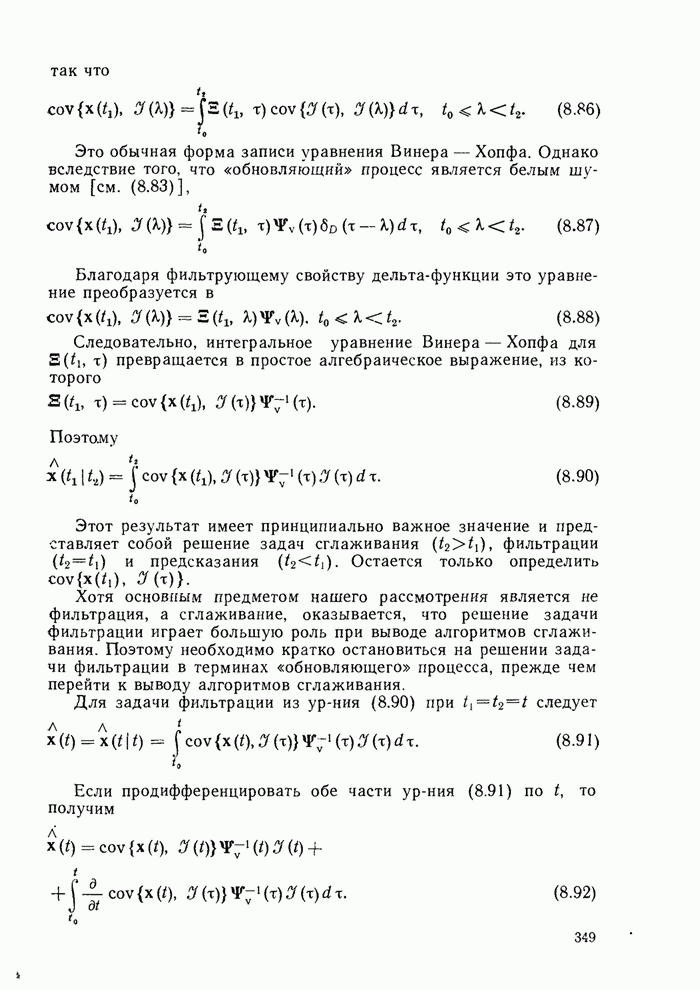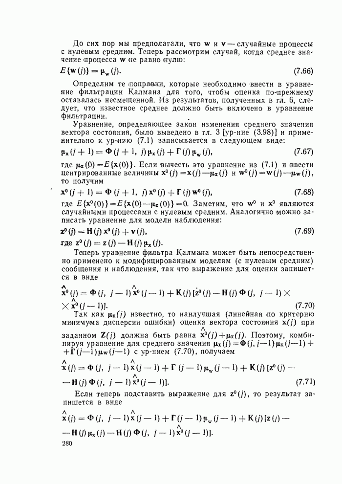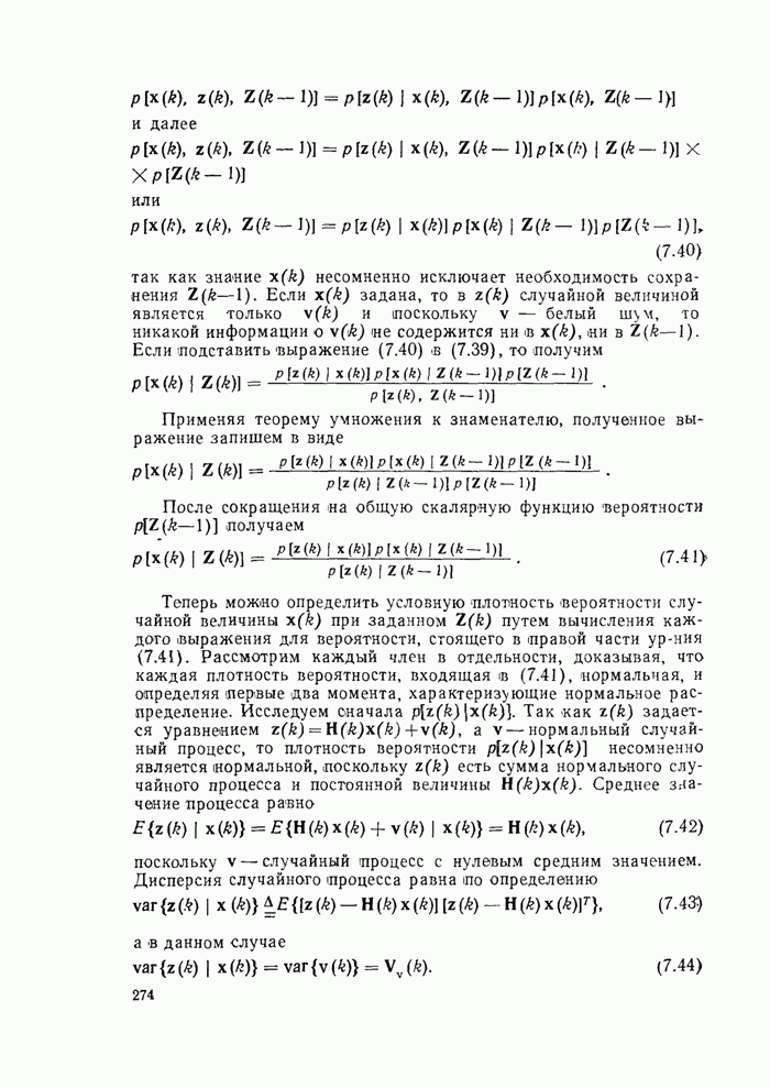мы выбираем В заключение главы интересно, хотя бы вкратце, рассмотреть один из способов аналитического решения нелинейного уравнения дисперсии путем решения системы линейных матричных дифференциальных уравнений. В вычислительном отношении этот метод не представляет большой ценности, поскольку, за исключением случая стационарных моделей сообщения и наблюдений, получающиеся при этом уравнения не могут быть достаточно легко решены. С другой стороны, этот метод часто оказывается весьма полезным при формулировке общих выводов о характере решения уравнения дисперсии. Пусть