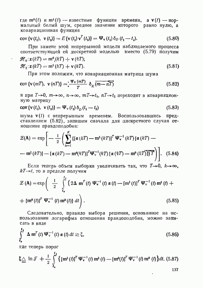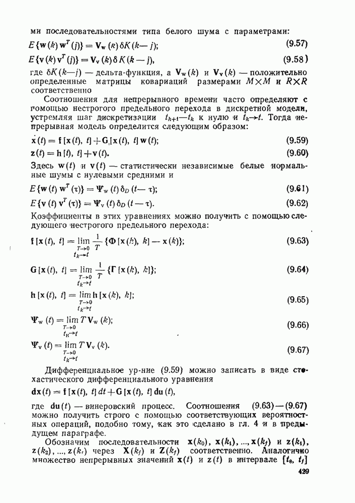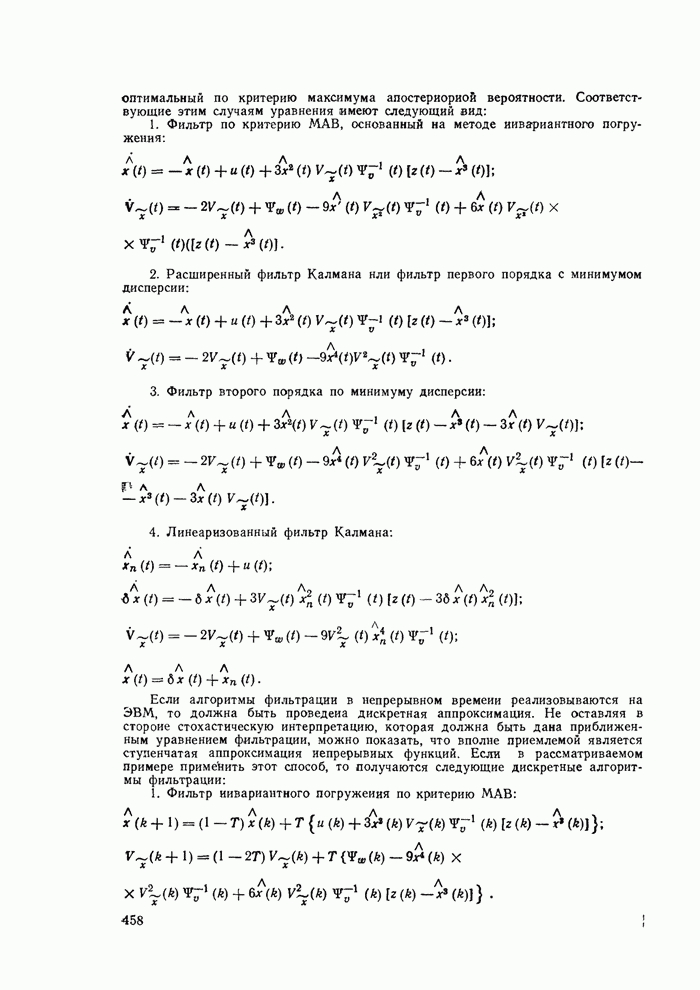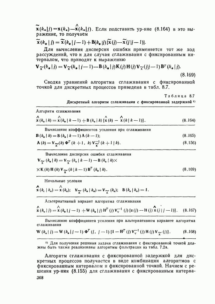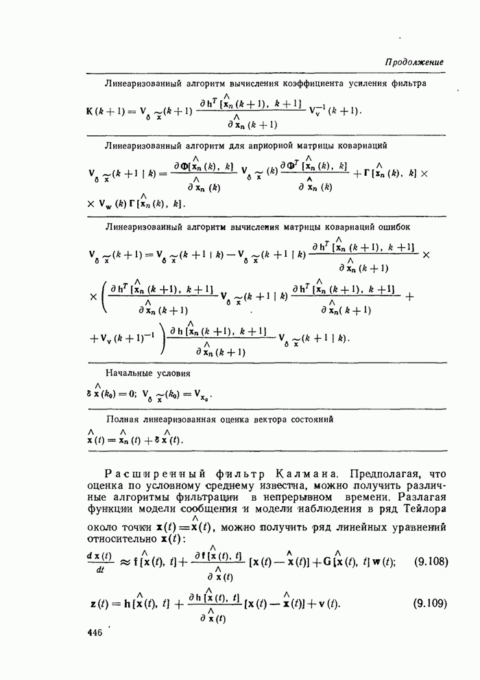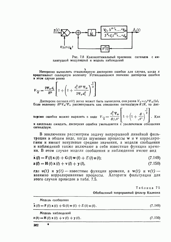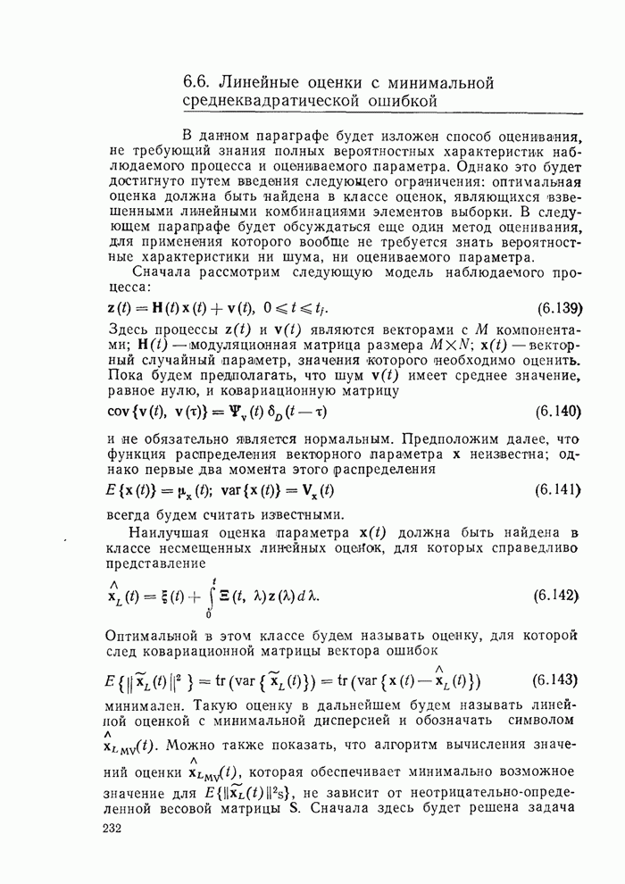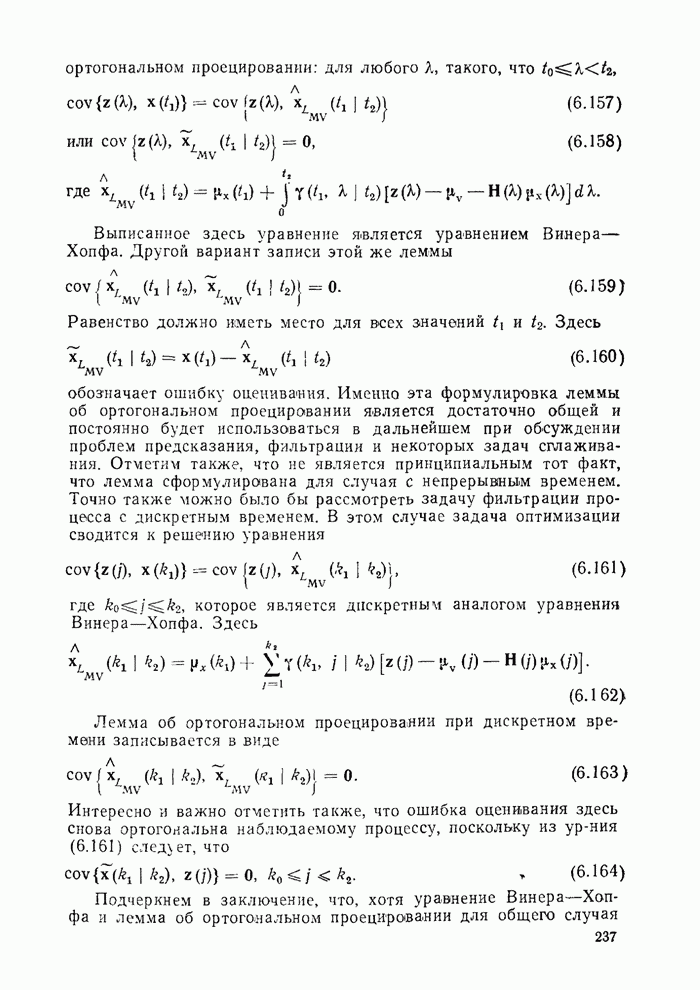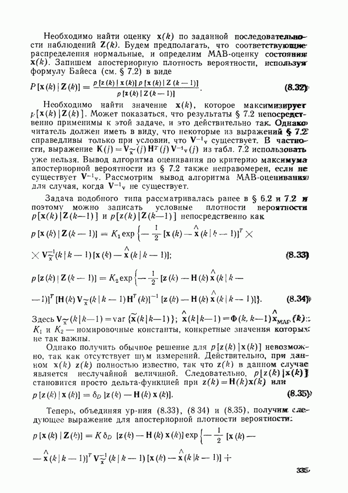 мы выбираем В заключение главы интересно, хотя бы вкратце, рассмотреть один из способов аналитического решения нелинейного уравнения дисперсии путем решения системы линейных матричных дифференциальных уравнений. В вычислительном отношении этот метод не представляет большой ценности, поскольку, за исключением случая стационарных моделей сообщения и наблюдений, получающиеся при этом уравнения не могут быть достаточно легко решены. С другой стороны, этот метод часто оказывается весьма полезным при формулировке общих выводов о характере решения уравнения дисперсии. Пусть