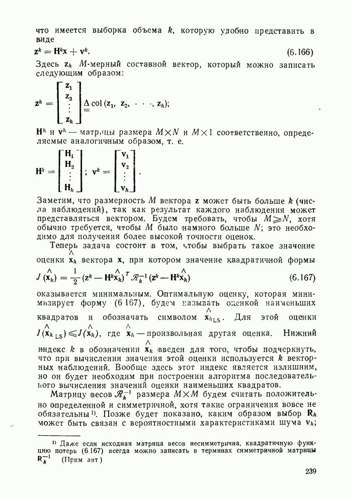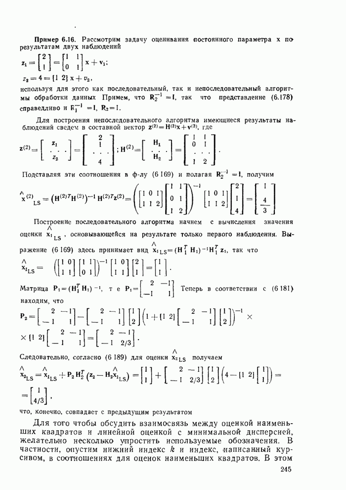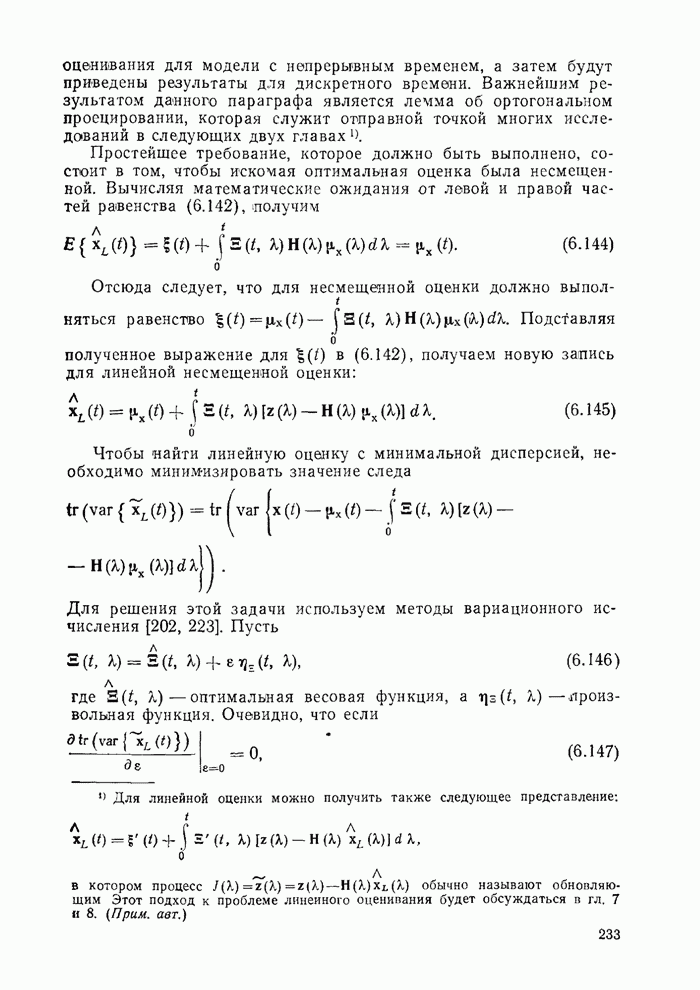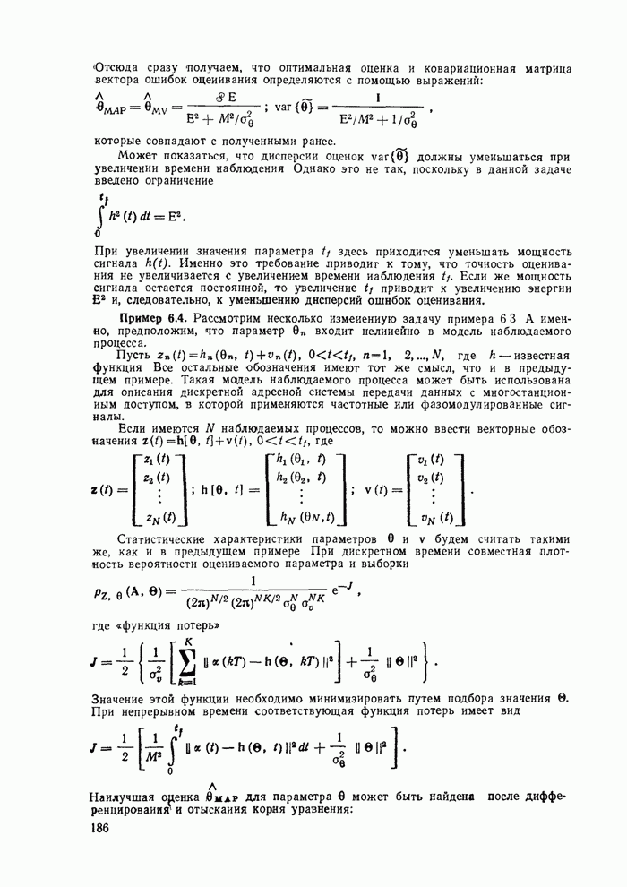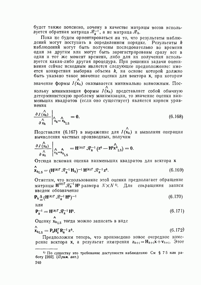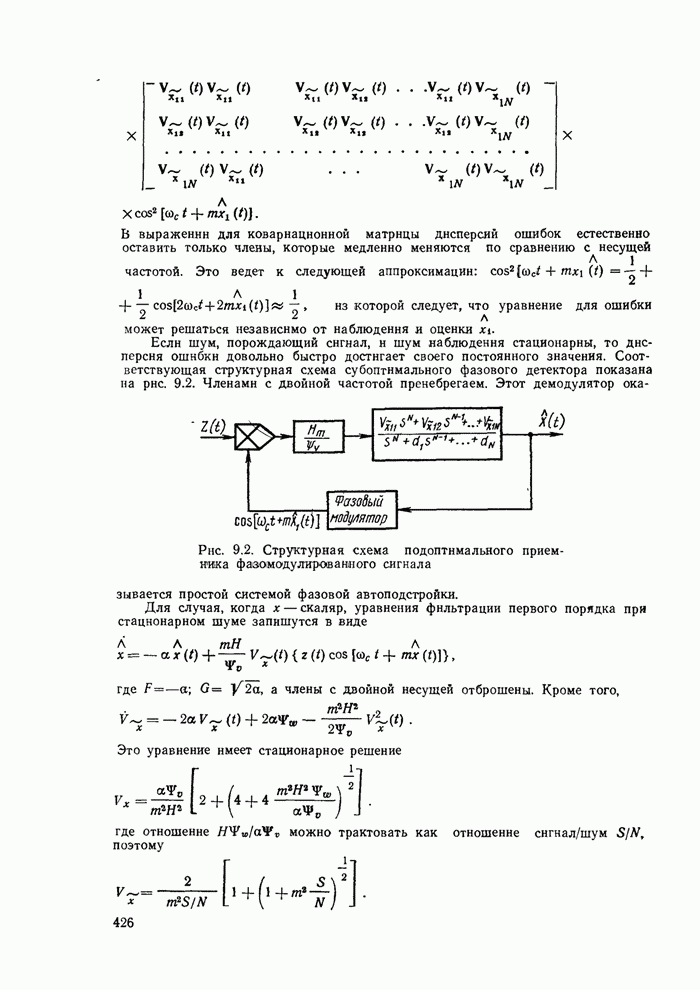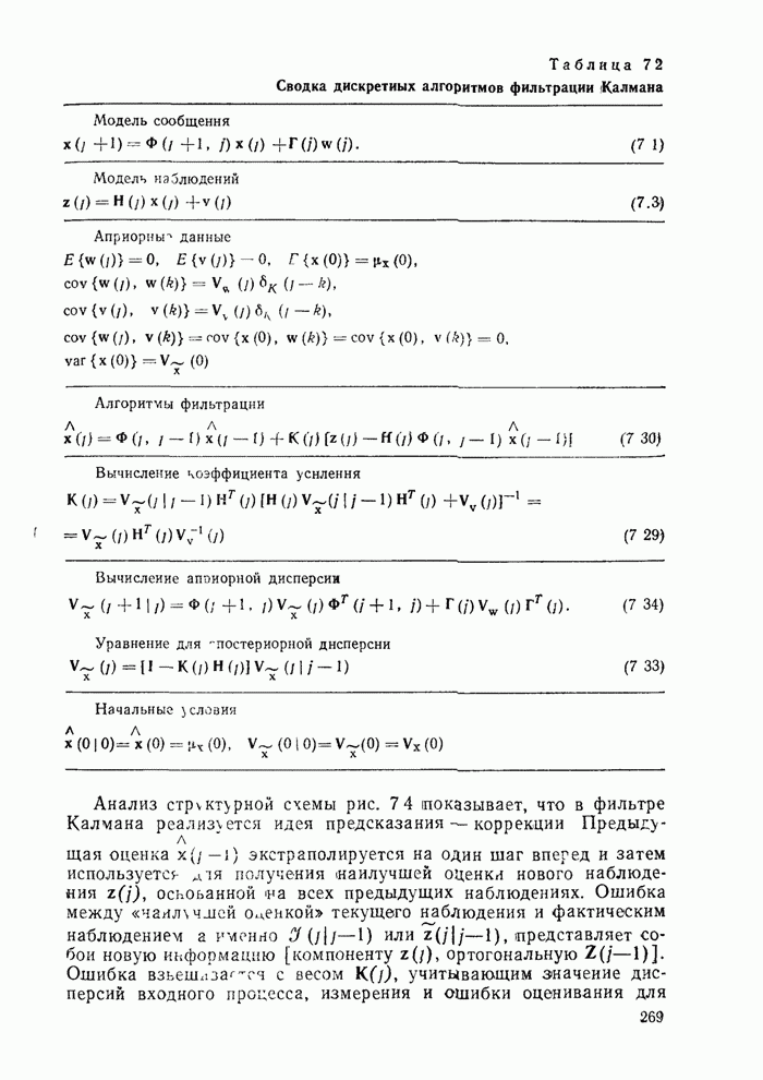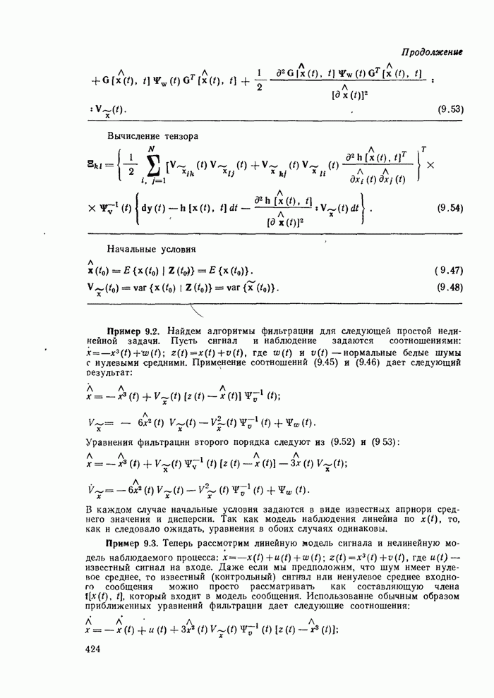 мы выбираем В заключение главы интересно, хотя бы вкратце, рассмотреть один из способов аналитического решения нелинейного уравнения дисперсии путем решения системы линейных матричных дифференциальных уравнений. В вычислительном отношении этот метод не представляет большой ценности, поскольку, за исключением случая стационарных моделей сообщения и наблюдений, получающиеся при этом уравнения не могут быть достаточно легко решены. С другой стороны, этот метод часто оказывается весьма полезным при формулировке общих выводов о характере решения уравнения дисперсии. Пусть