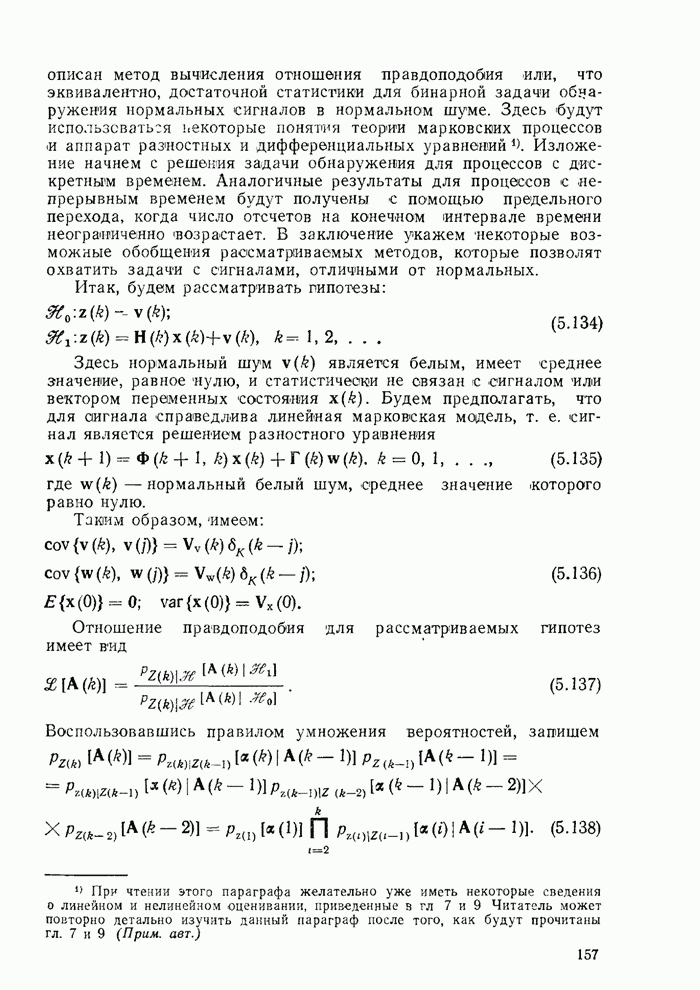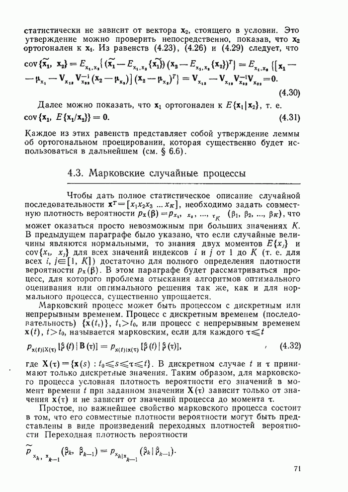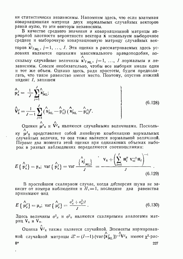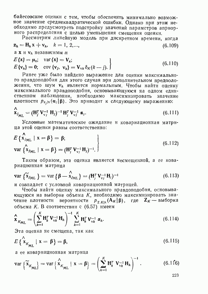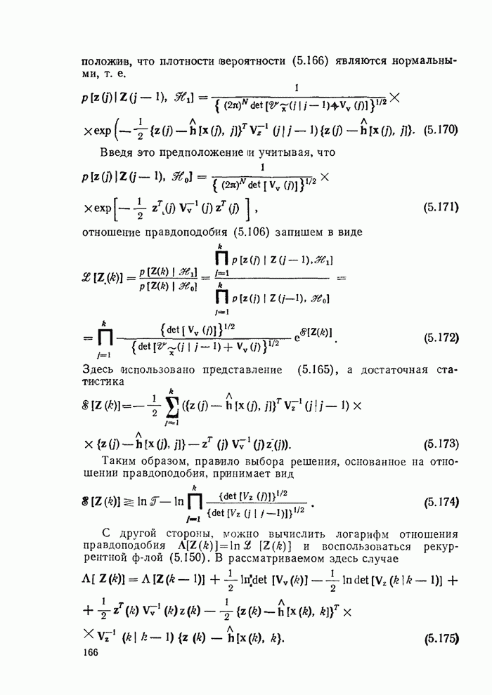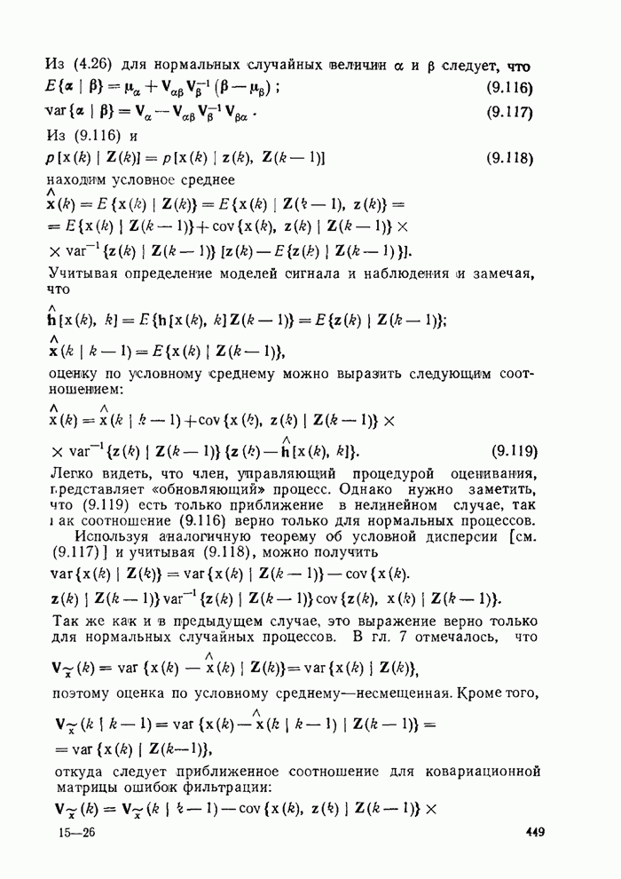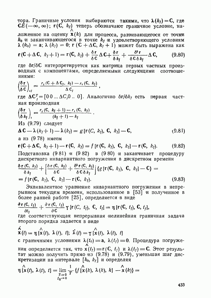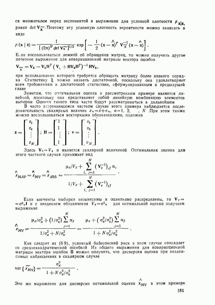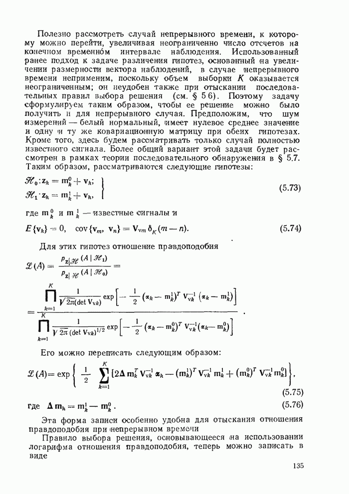 мы выбираем В заключение главы интересно, хотя бы вкратце, рассмотреть один из способов аналитического решения нелинейного уравнения дисперсии путем решения системы линейных матричных дифференциальных уравнений. В вычислительном отношении этот метод не представляет большой ценности, поскольку, за исключением случая стационарных моделей сообщения и наблюдений, получающиеся при этом уравнения не могут быть достаточно легко решены. С другой стороны, этот метод часто оказывается весьма полезным при формулировке общих выводов о характере решения уравнения дисперсии. Пусть