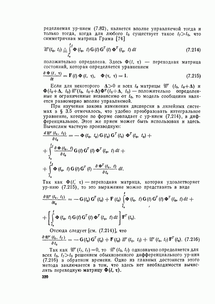 Если для некоторого При изучении закона изменения дисперсии в линейных системах в § 3.5 отмечалось, что удобно преобразовать интегральное уравнение, которое по форме совпадает с ур-нием (7.214), в дифференциальное. Этот же прием может быть использован и здесь. Вычислим частную производную: