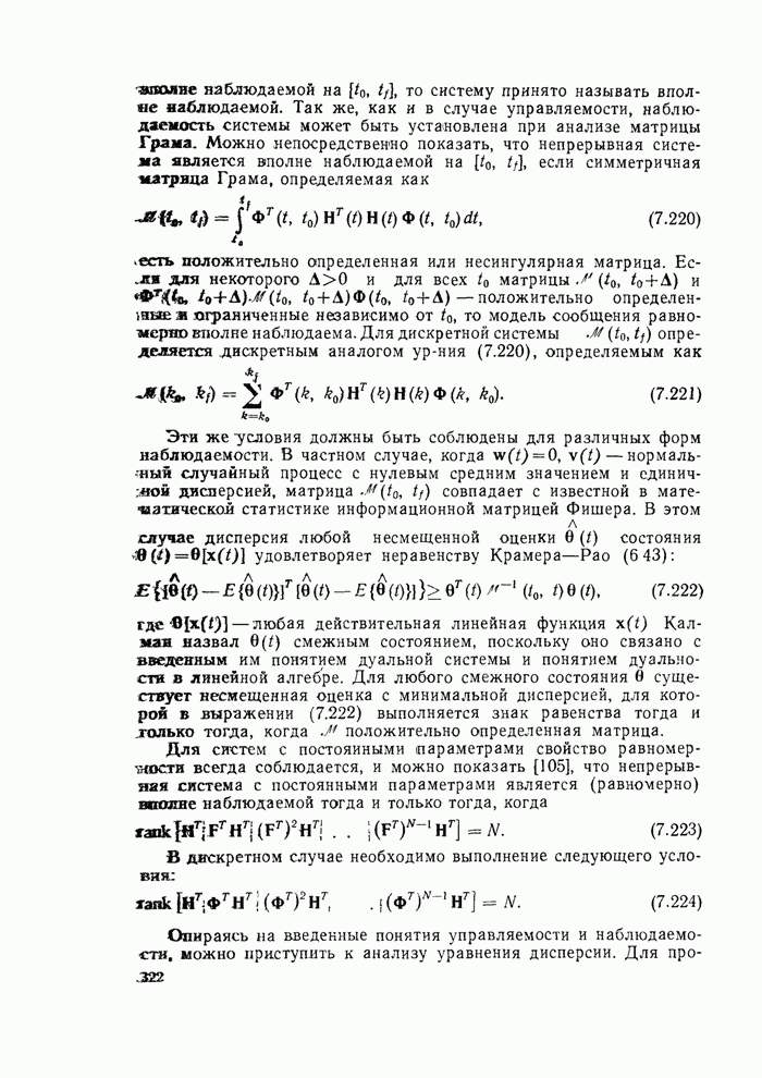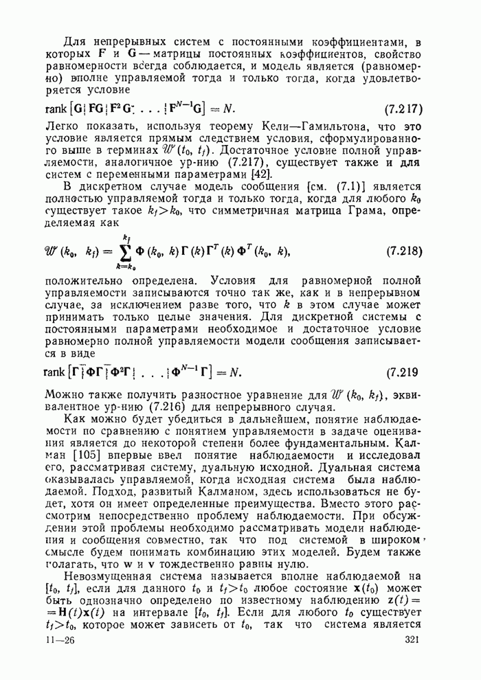 где Для систем с постоянными параметрами свойство равномерности всегда соблюдается, и можно показать [105], что непрерывная система с постоянными параметрами является (равномерно) вполне наблюдаемой тогда и только тогда, когда