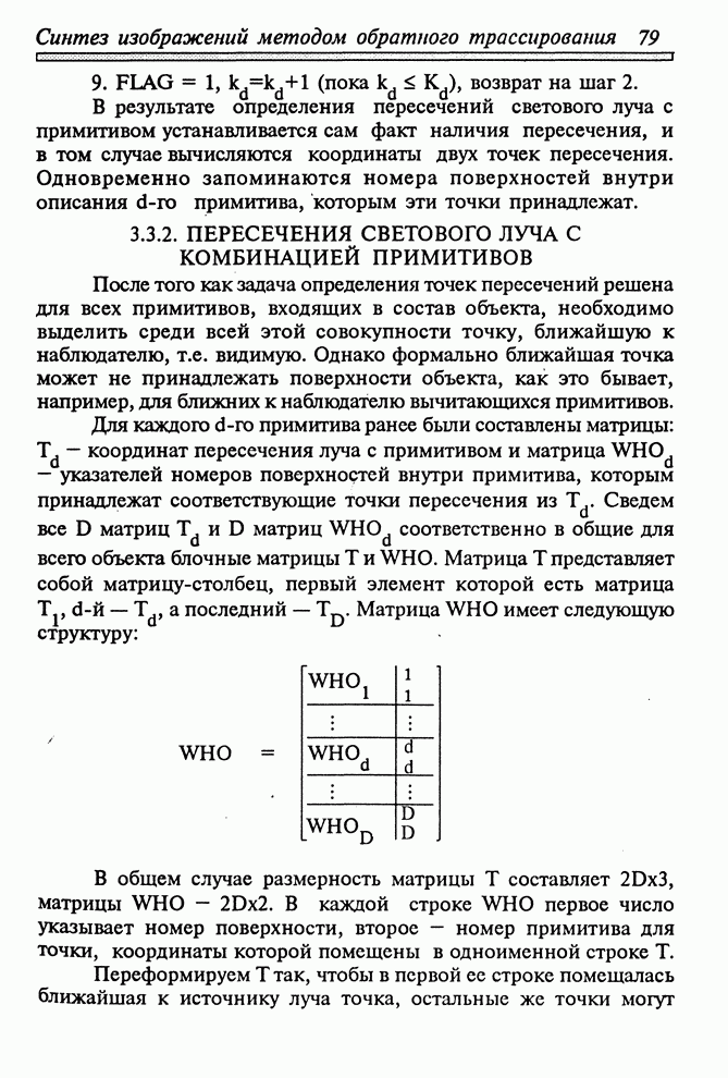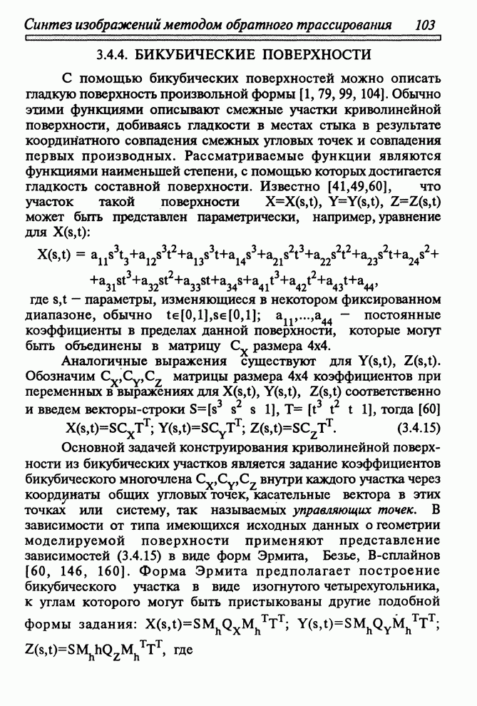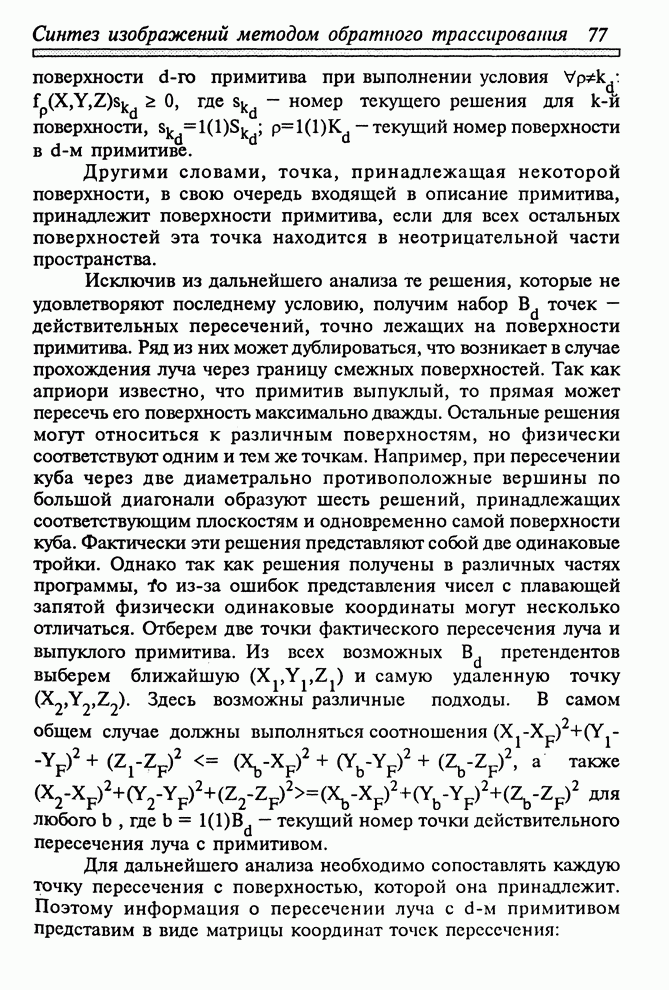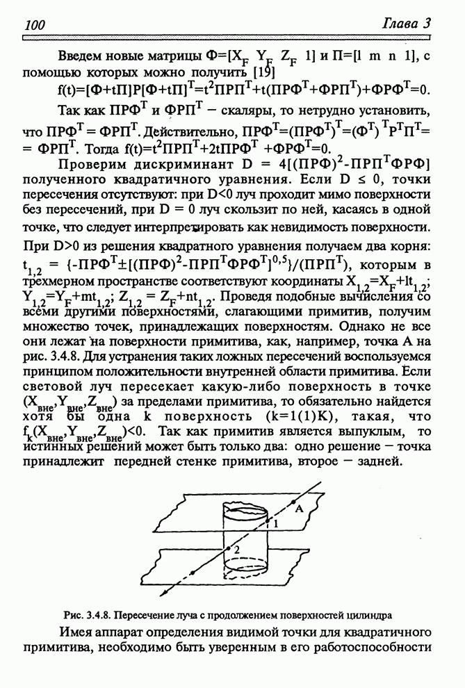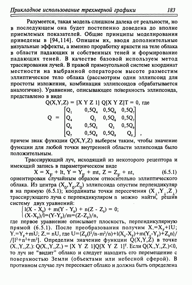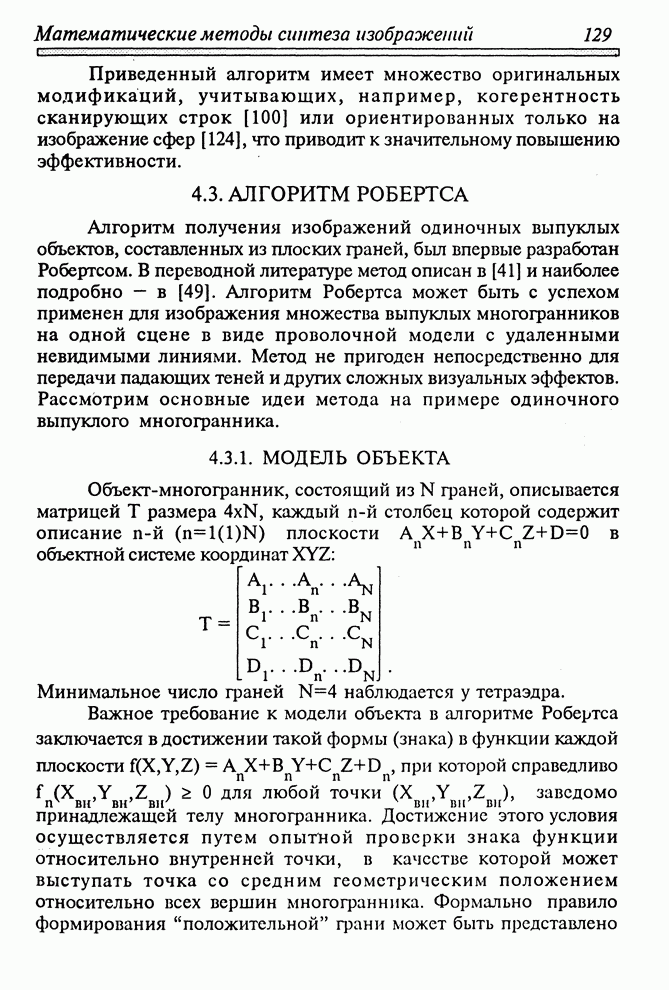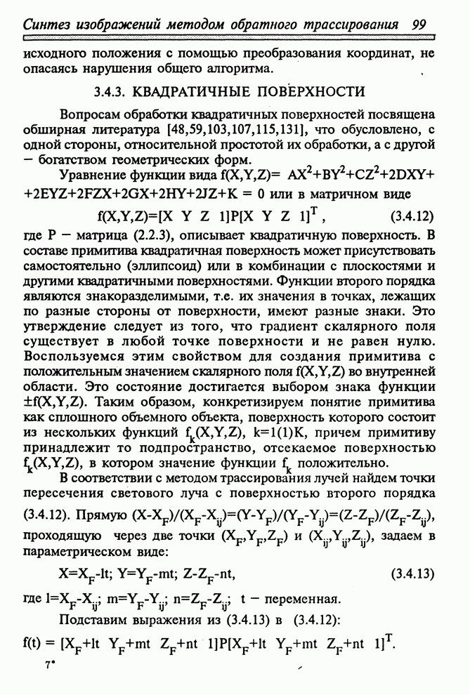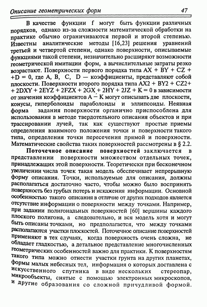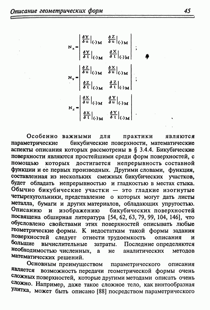 Здесь и далее часто используется представление координат точки в виде строки с четырьмя элементами. В данном случае четвертый элемент равен единице и не несет информационно полезной нагрузки. Такое представление обеспечивает универсальность метода для описания преобразований не только точек, но и прямых линий, отрезков прямых, кривых линий, плоскостей, участков плоскостей квадратичных и бикубических поверхностей.