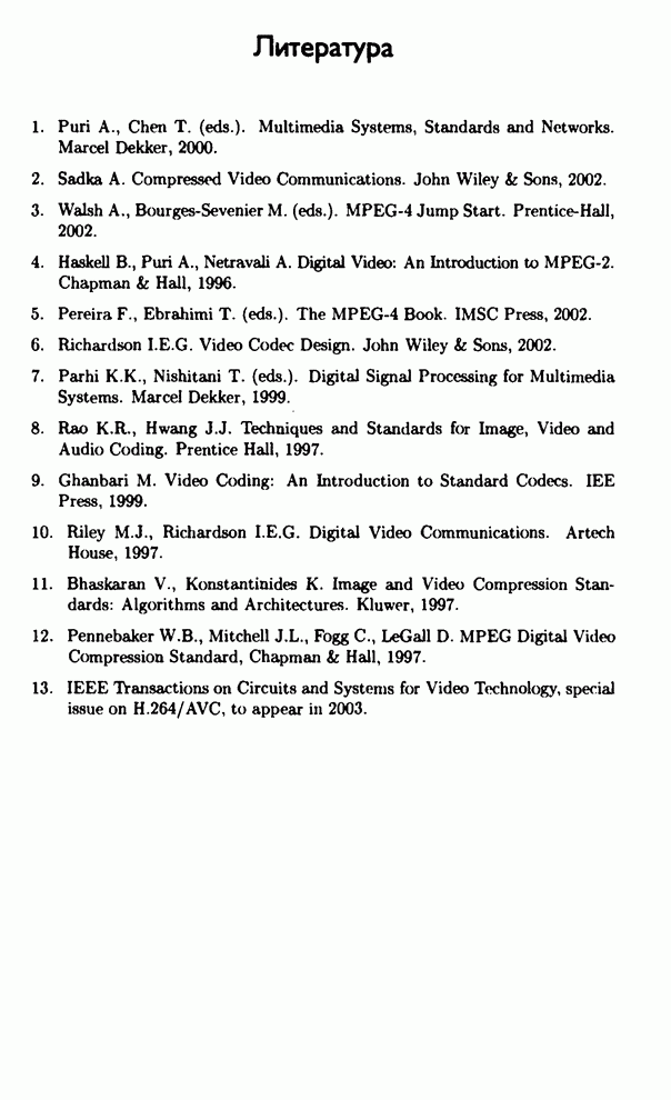 A., Netravali A. Digital Video: An Introduction to MPEG-2. Chapman & Hall, 1996.