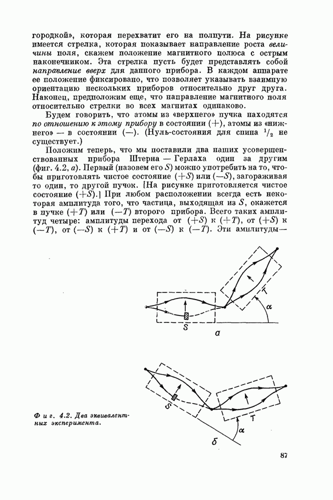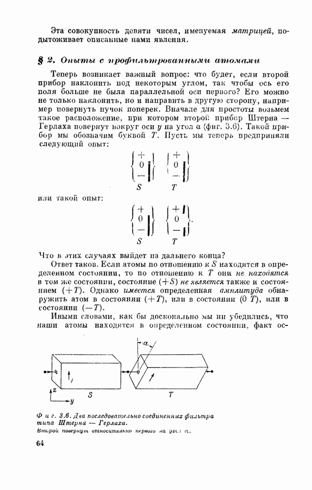Фигура 3.6. Два последовательно соединенных фильтра типа Штерна — Герлаха. Второй повернут относительно первого на угол