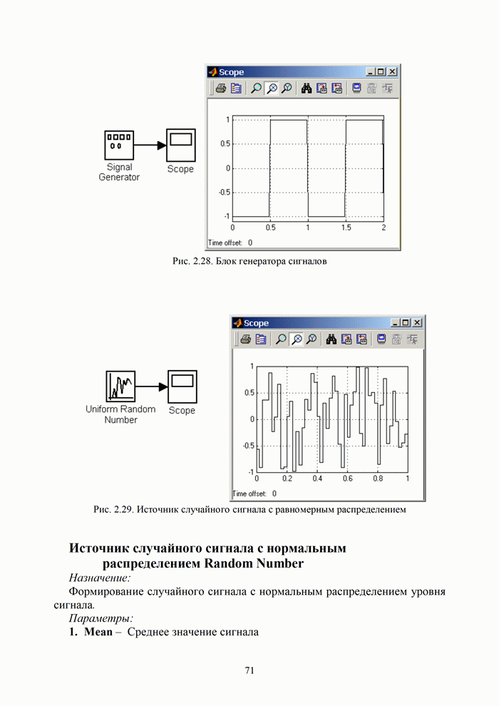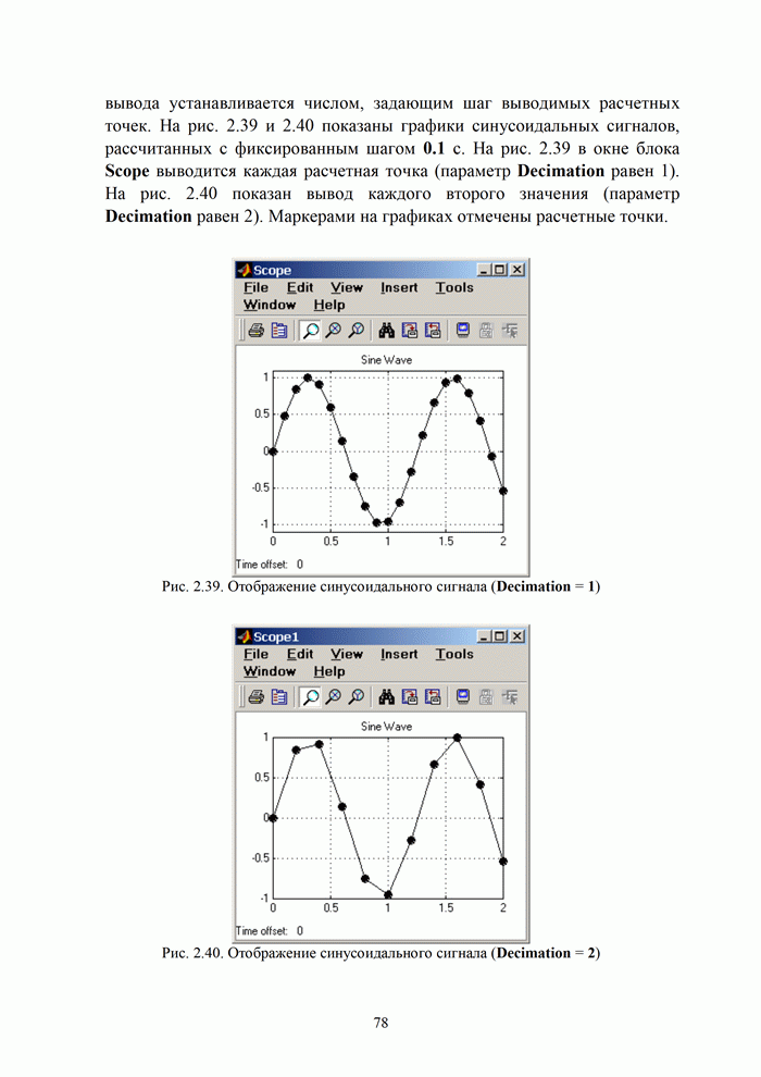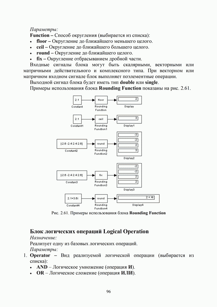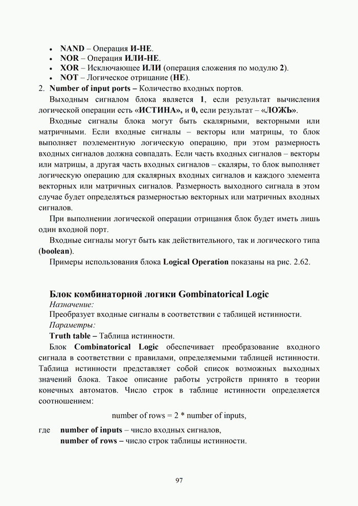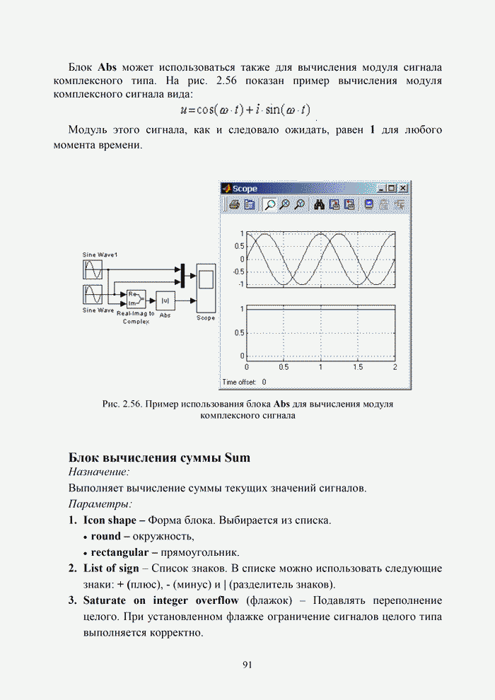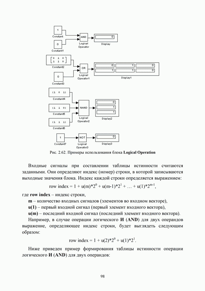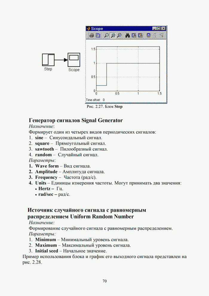 Если среди входных сигналов есть векторы, то количество входов можно задавать как вектор с указанием числа элементов каждого вектора. Например, выражение [2 3 1] определяет три входных сигнала, первый сигнал – вектор из двух элементов, второй сигнал – вектор из трех элементов, и последний сигнал – скаляр. В том случае, если размерность входного вектора не совпадает с указанной в параметре Number of Inputs, после начала расчета Simulink выдаст сообщение об ошибке. Размерность входного вектора можно задавать как -1 (минус один). В этом случае размерность входного вектора может быть любой. Параметр Number of Inputs можно задавать также в виде списка меток сигналов, например: Vector1, Vector2, Scalar. В этом случае метки сигналов будут отображаться рядом с соответствующими соединительными линиями. Сигналы, подаваемые на входы блока, должны быть одного типа (действительного или комплексного). Примеры использования блока Mux показаны на рис. 2.64.