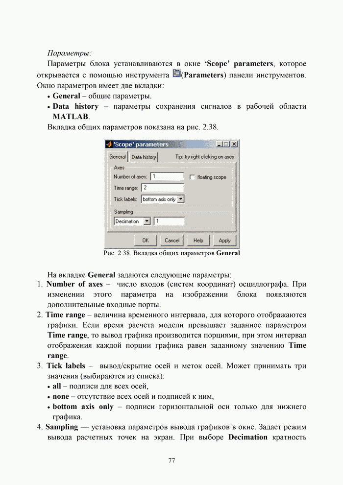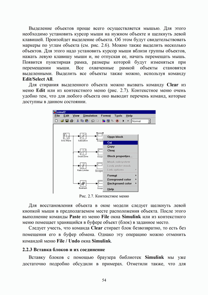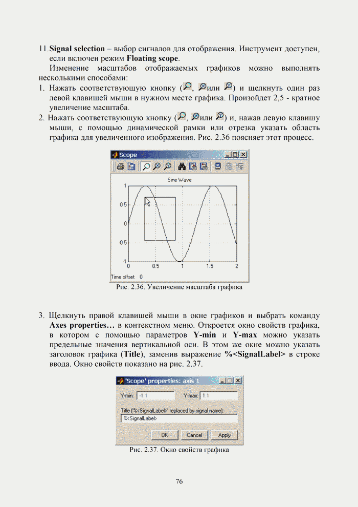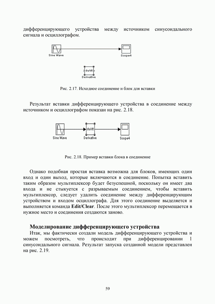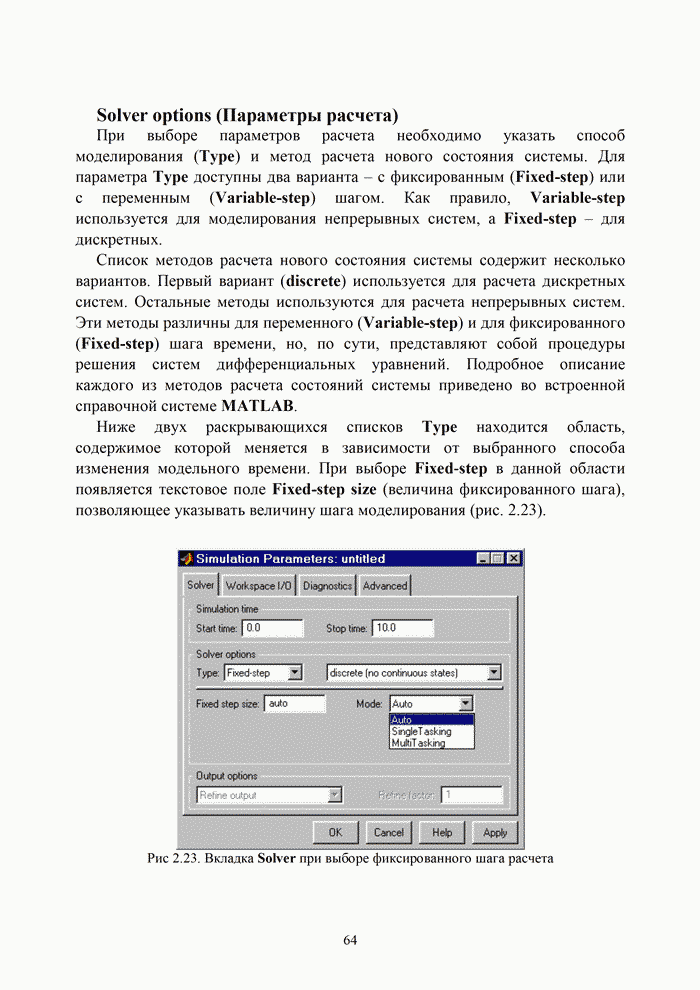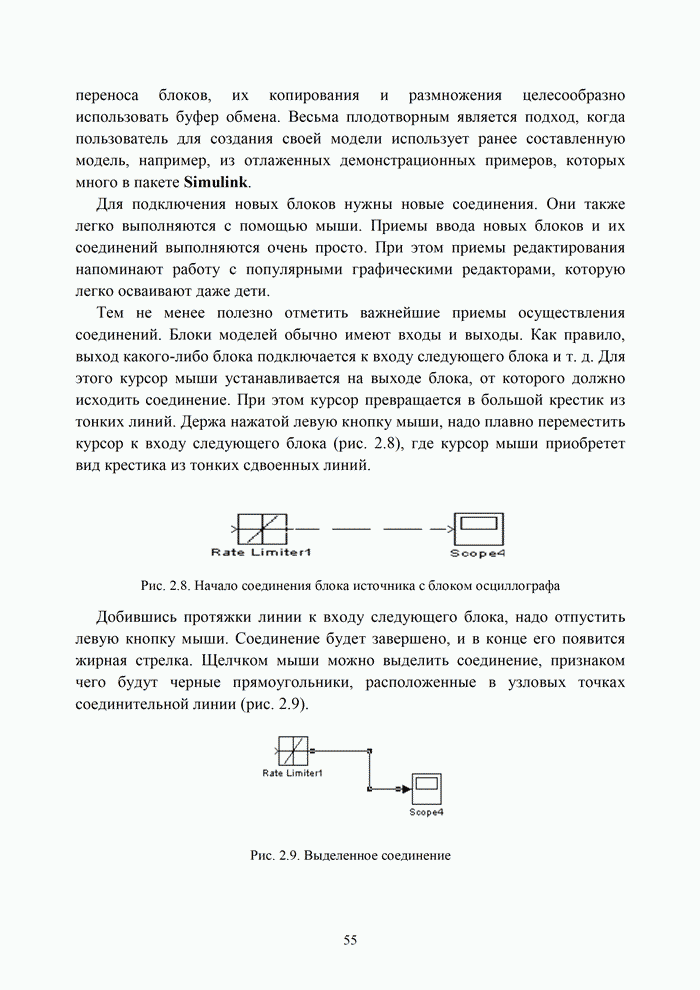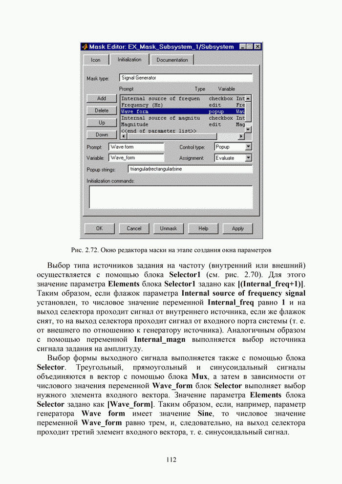 Если среди входных сигналов есть векторы, то количество входов можно задавать как вектор с указанием числа элементов каждого вектора. Например, выражение [2 3 1] определяет три входных сигнала, первый сигнал – вектор из двух элементов, второй сигнал – вектор из трех элементов, и последний сигнал – скаляр. В том случае, если размерность входного вектора не совпадает с указанной в параметре Number of Inputs, после начала расчета Simulink выдаст сообщение об ошибке. Размерность входного вектора можно задавать как -1 (минус один). В этом случае размерность входного вектора может быть любой. Параметр Number of Inputs можно задавать также в виде списка меток сигналов, например: Vector1, Vector2, Scalar. В этом случае метки сигналов будут отображаться рядом с соответствующими соединительными линиями. Сигналы, подаваемые на входы блока, должны быть одного типа (действительного или комплексного). Примеры использования блока Mux показаны на рис. 2.64.