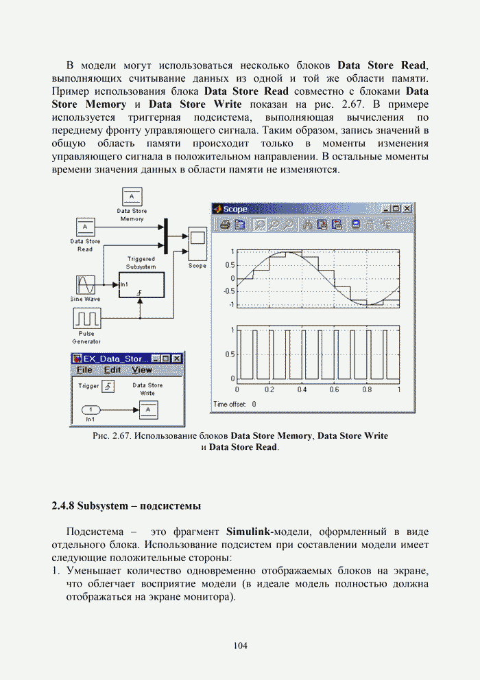 Рис. 2.67. Использование блоков Data Store Memory, Data Store Write и Data Store Read.