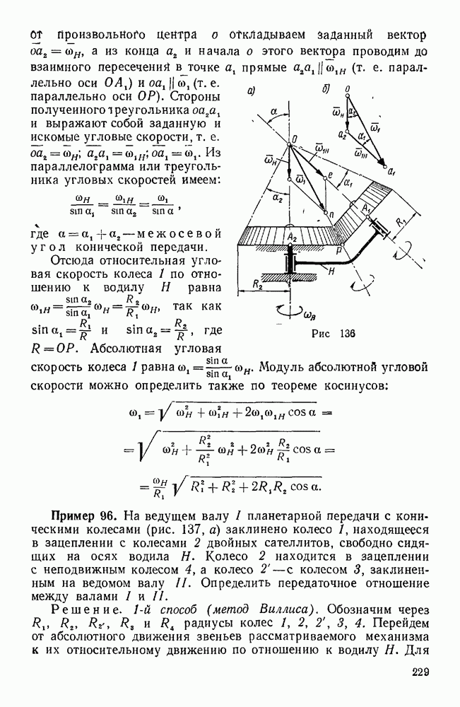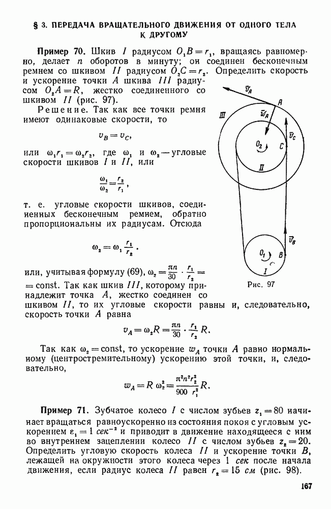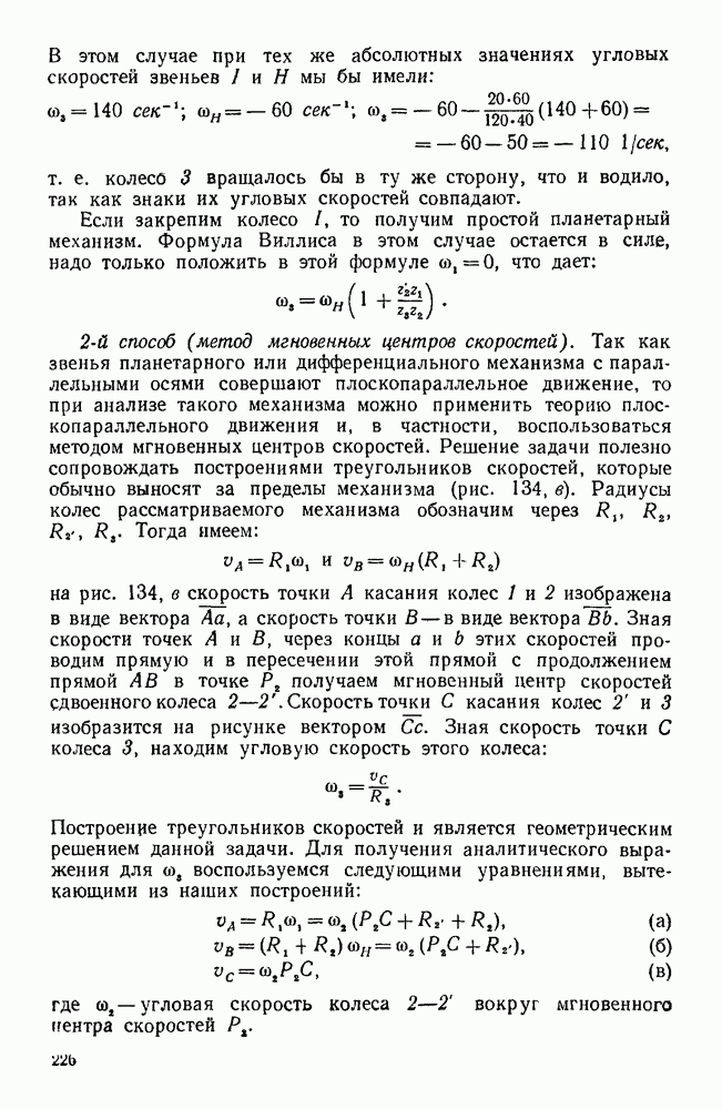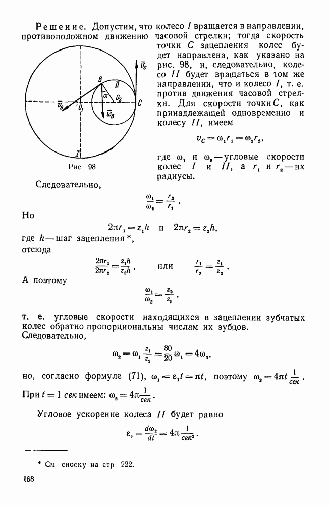 Качение шестерни I по неподвижному колесу II происходит без скольжения, а потому мгновенный центр скоростей шестерни