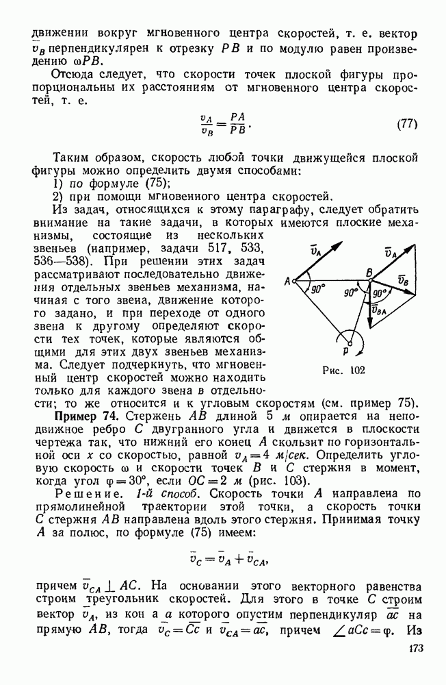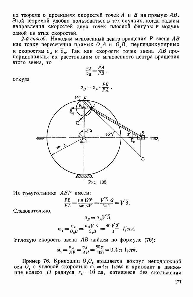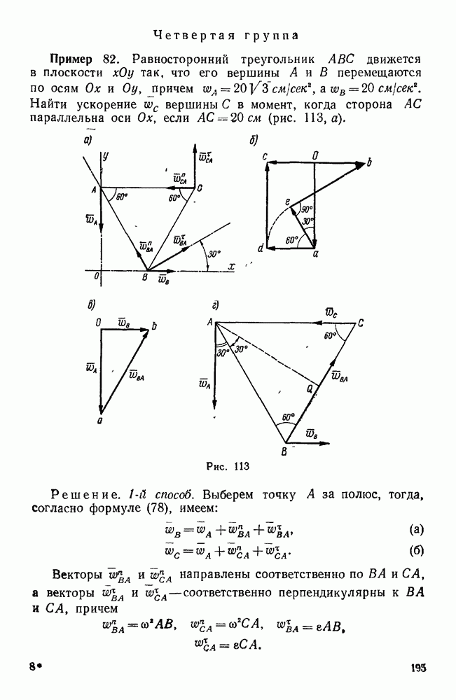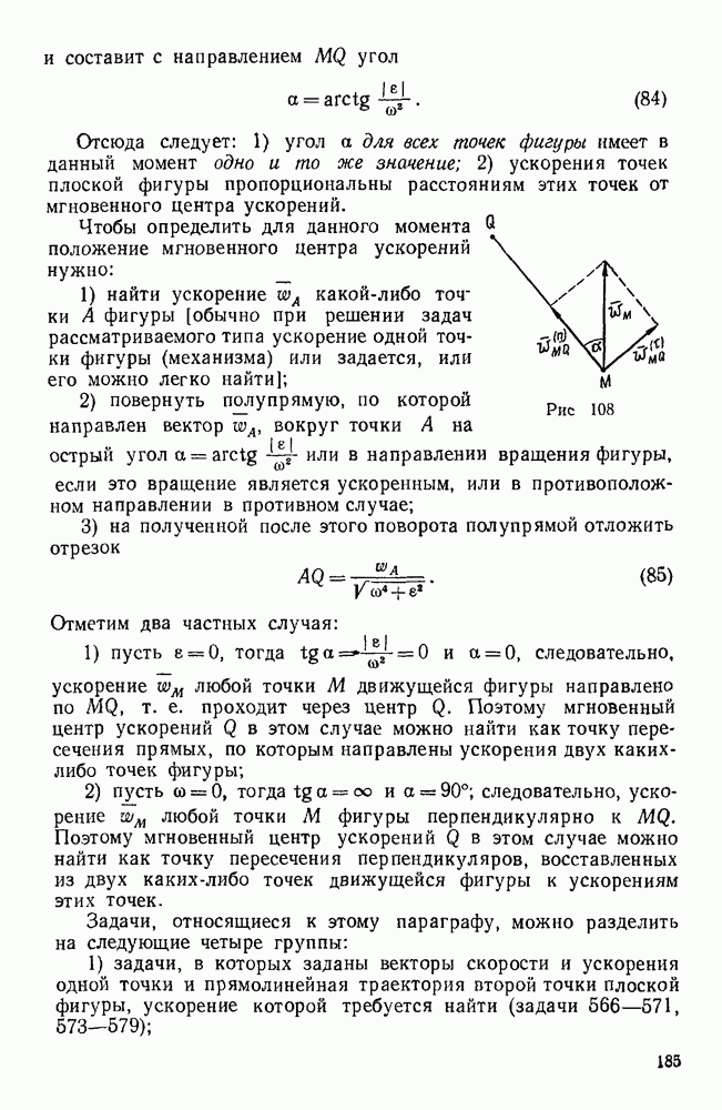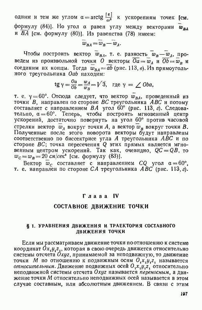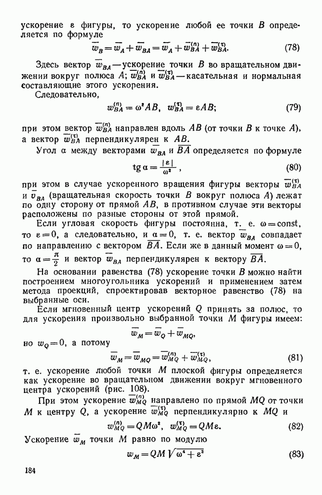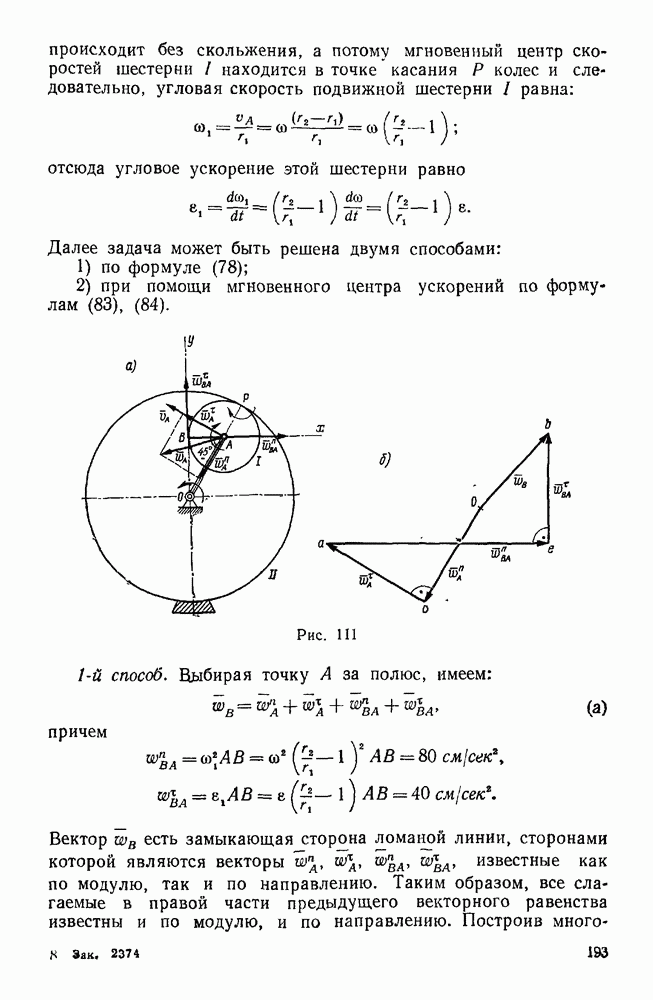 2) при помощи мгновенного центра ускорений по формулам (83), (84).