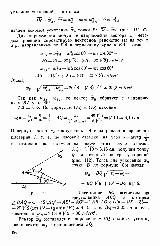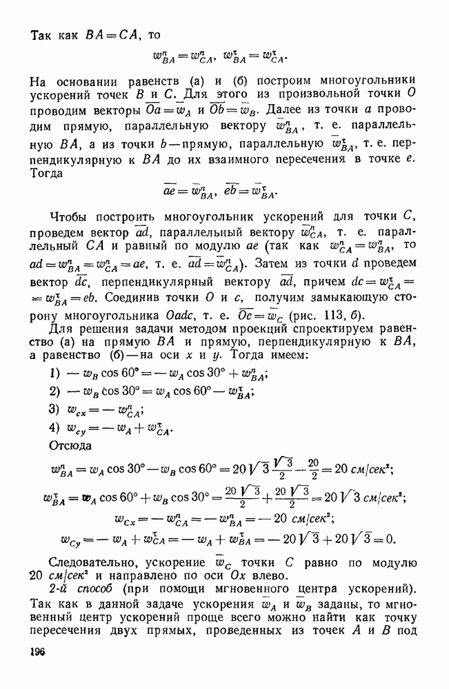 - мгновенный центр ускорений (рис. 112). Тогда для ускорения