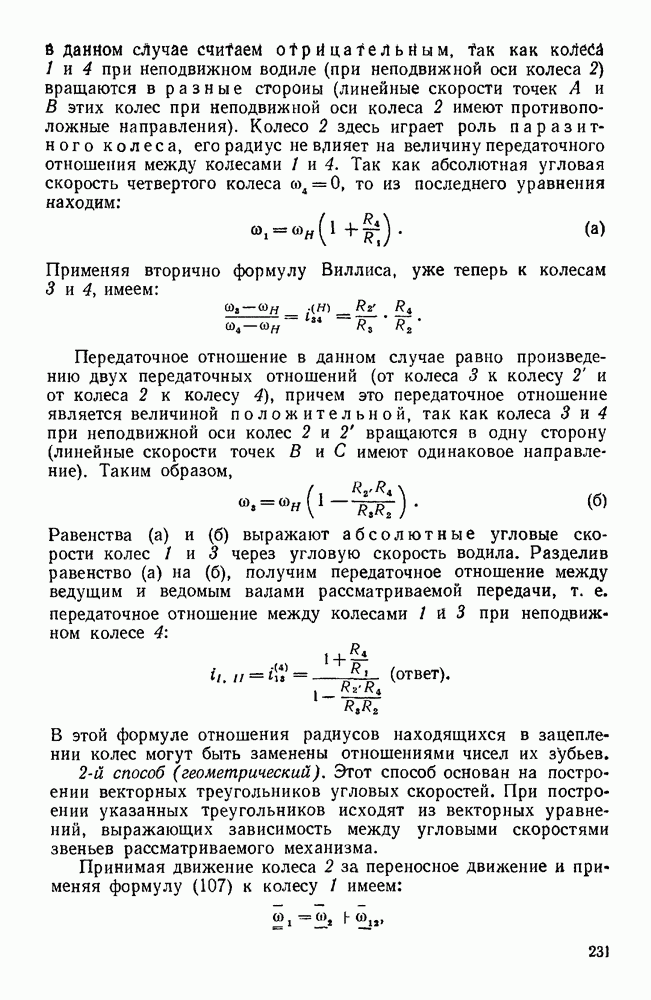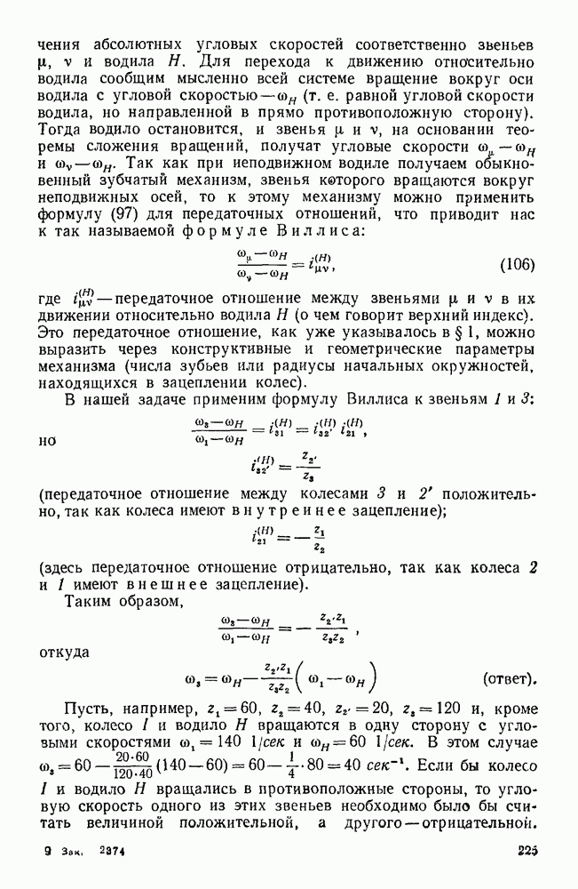 колес и следовательно, угловая скорость подвижной шестерни I равна: