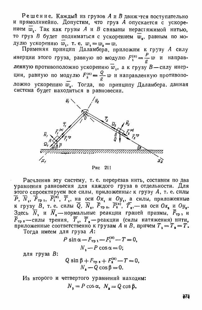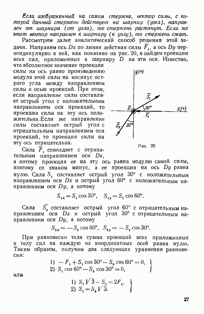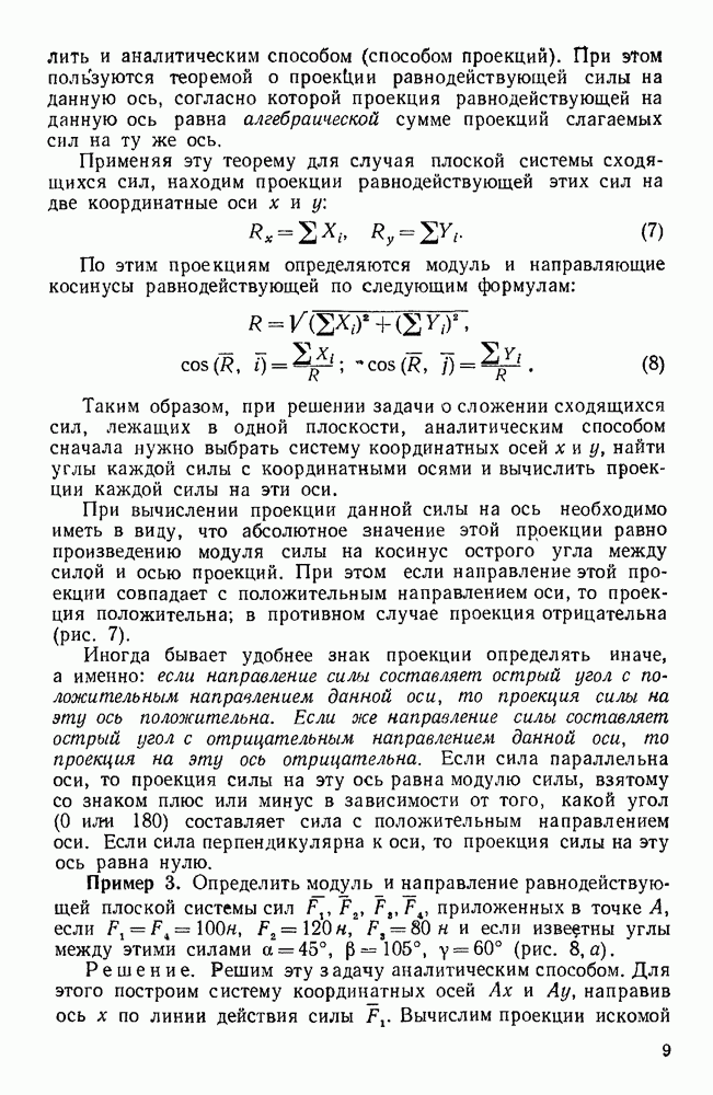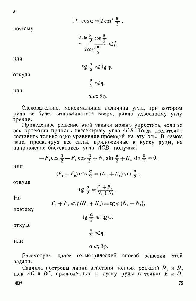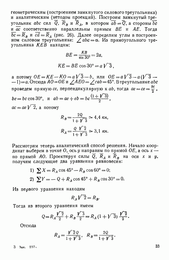 методом проекций, спроектируем векторное равенство (а) на оси х и у, направленные по ВА и перпендикулярно к ВА. Тогда