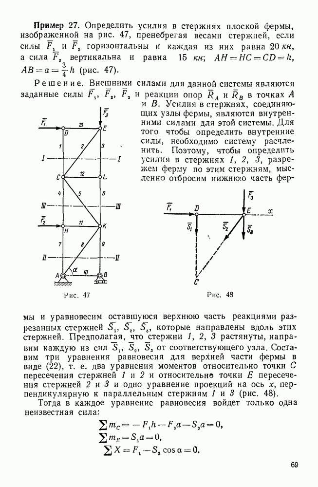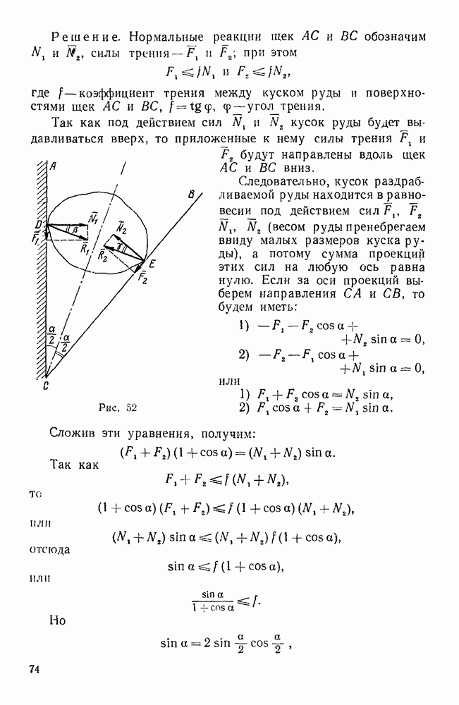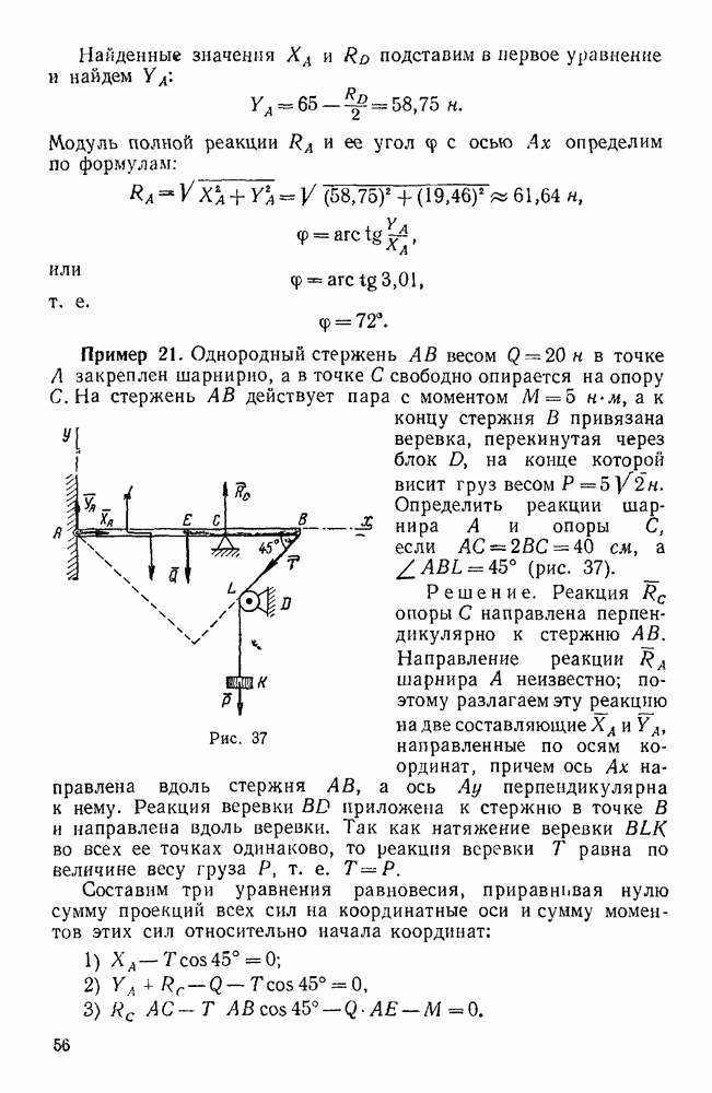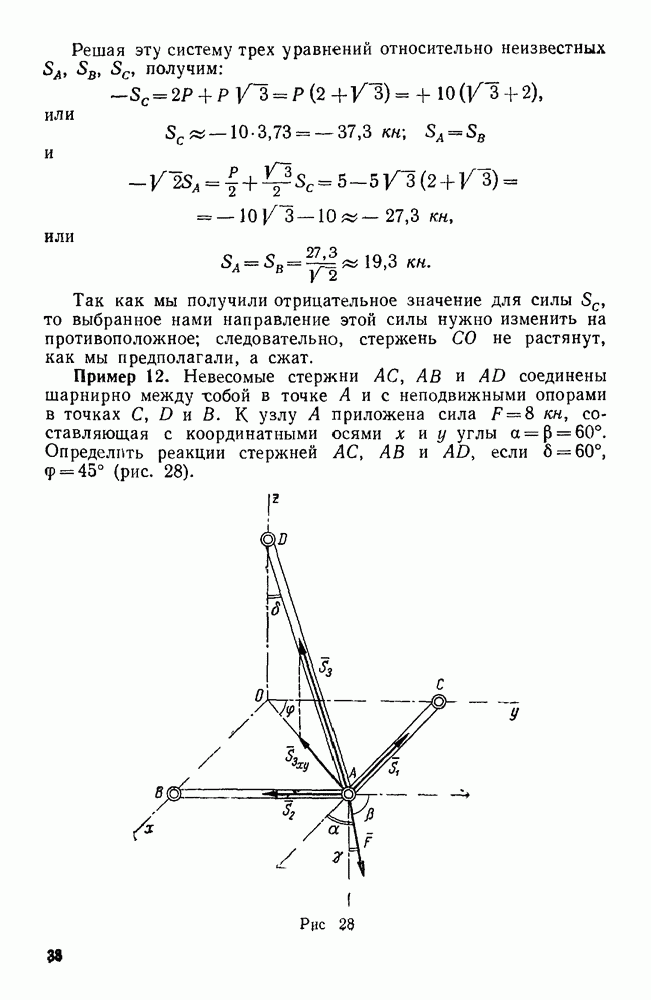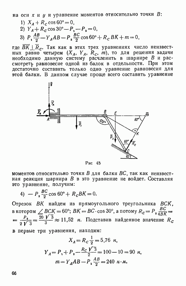 методом проекций, спроектируем векторное равенство (а) на оси х и у, направленные по ВА и перпендикулярно к ВА. Тогда