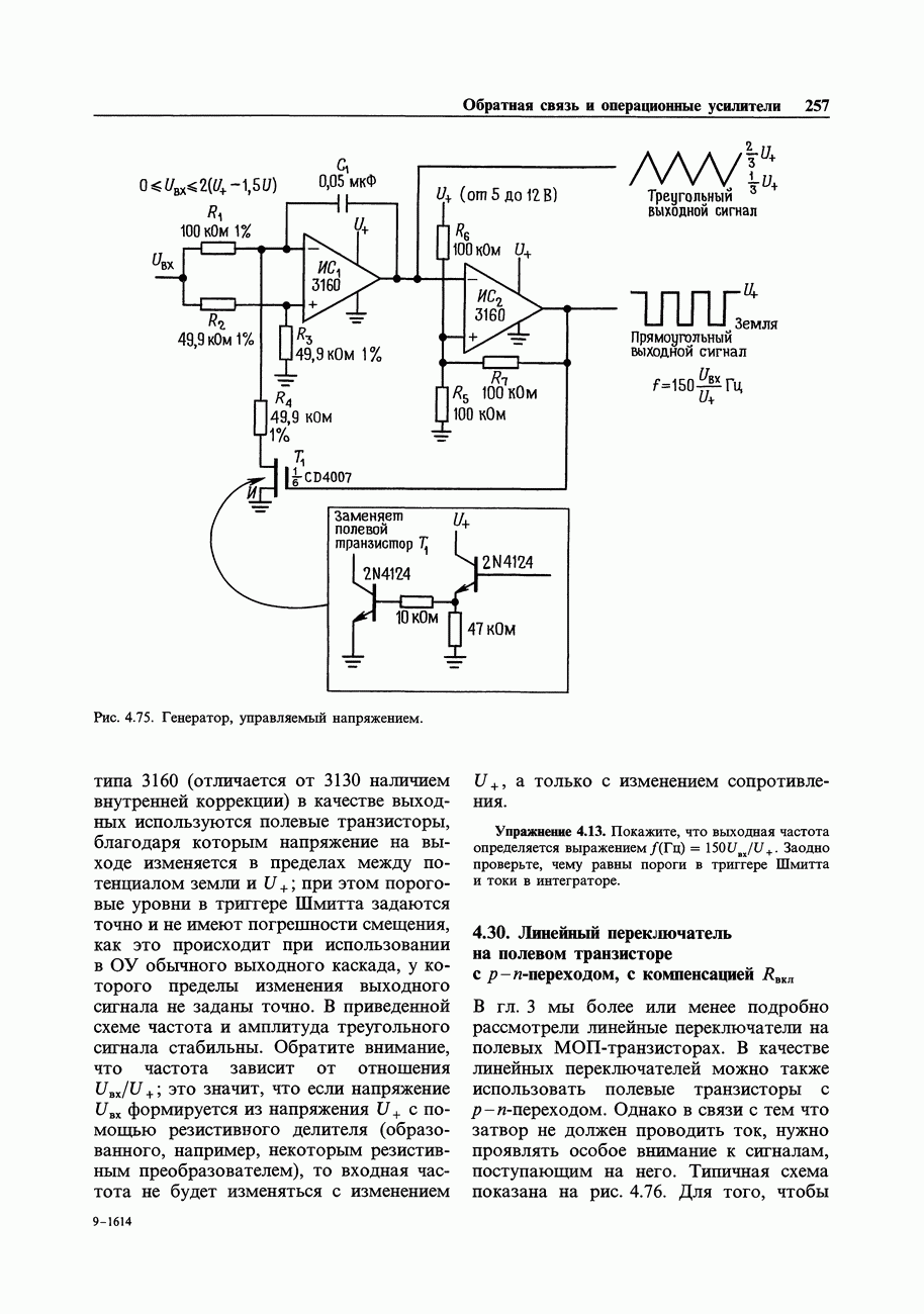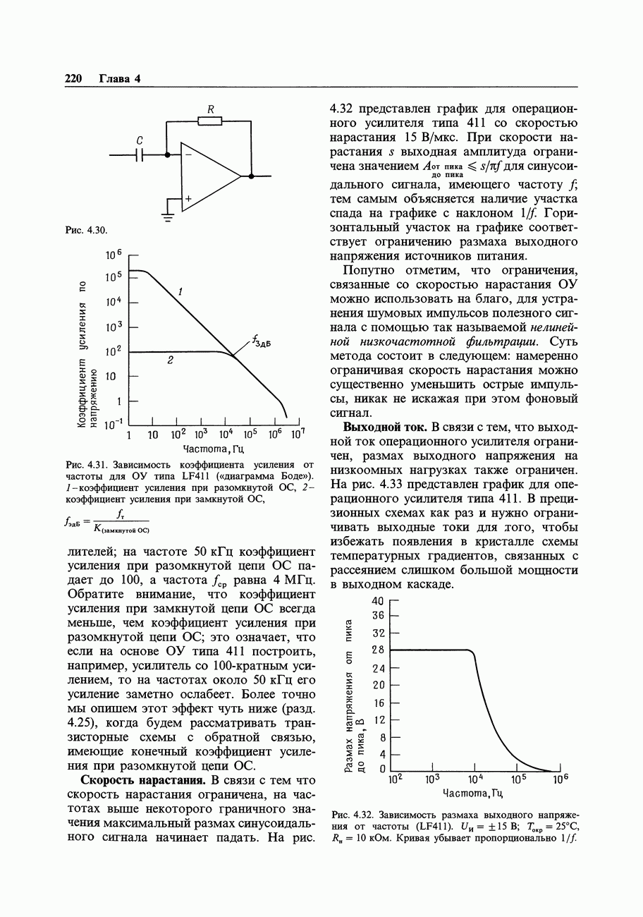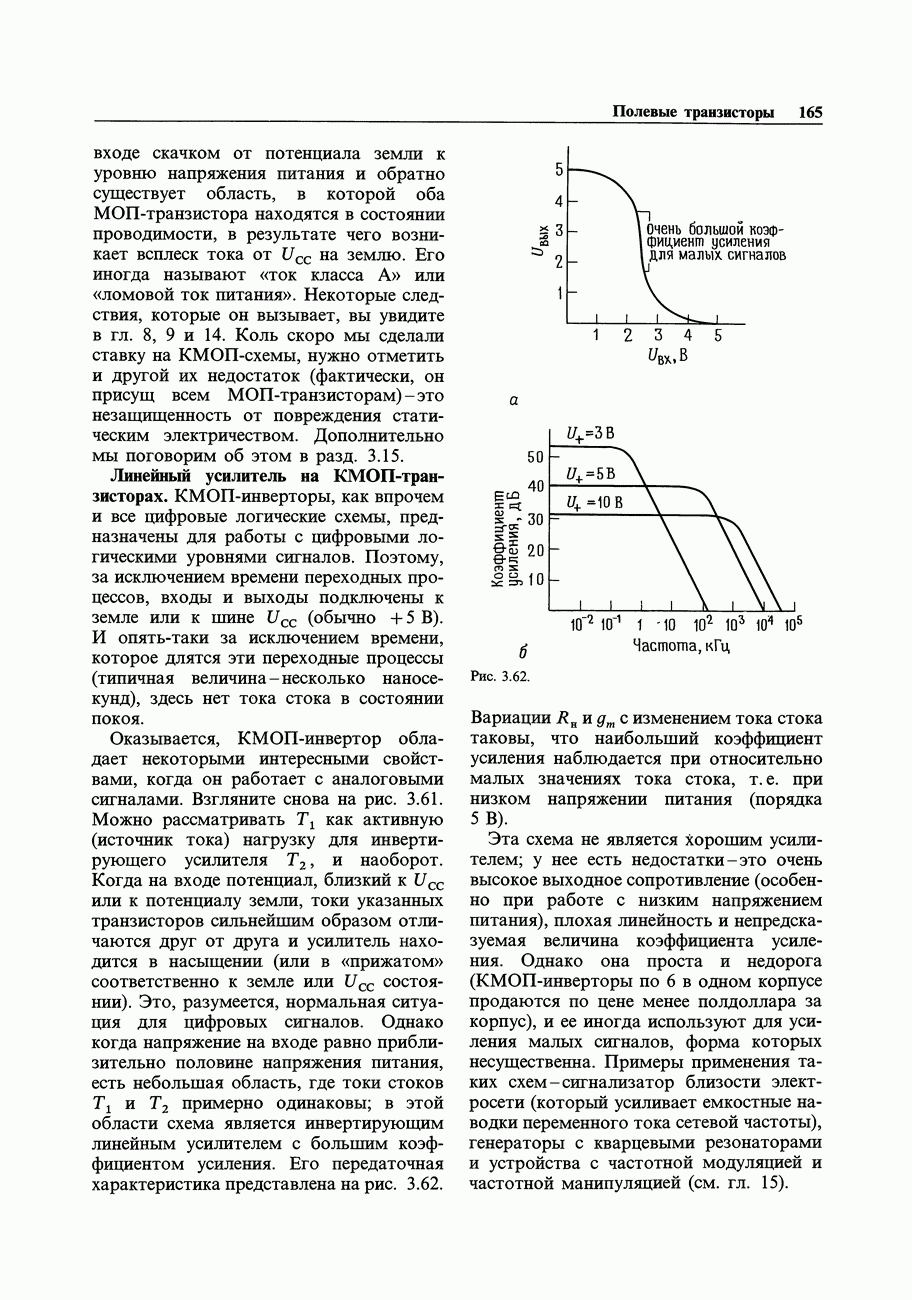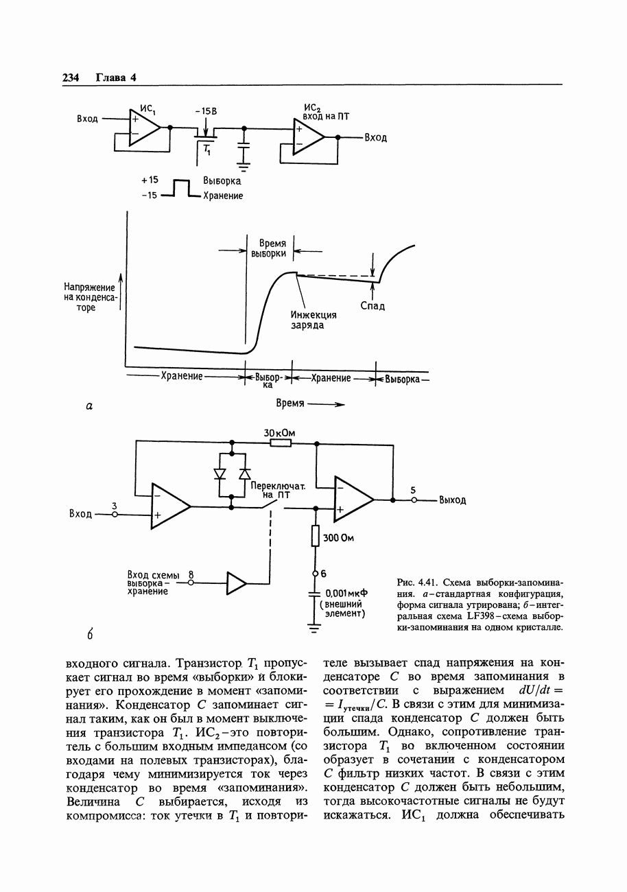 Во-первых, полевым транзисторам отдают предпочтение перед биполярными, когда хотят получить очень малый входной ток; при этом емкостные токи при тех же величинах емкостей принимают более угрожающие размеры. Во-вторых, полевые транзисторы часто имеют значительно более высокие значения емкостей, чем эквивалентные биполярные. Чтобы оценить емкостный эффект, рассмотрим усилитель на ПТ, предназначенный для работы с источником сигнала, имеющим сопротивление 100 кОм. Что касается постоянного тока, то здесь нет проблем, так как ток, равный пикоамперу, создает на внутреннем сопротивлении указанного источника падение напряжения всего в микровольт. Однако на частоте, скажем, 1 МГц входная емкость в В качестве еще одного примера представим себе переключение