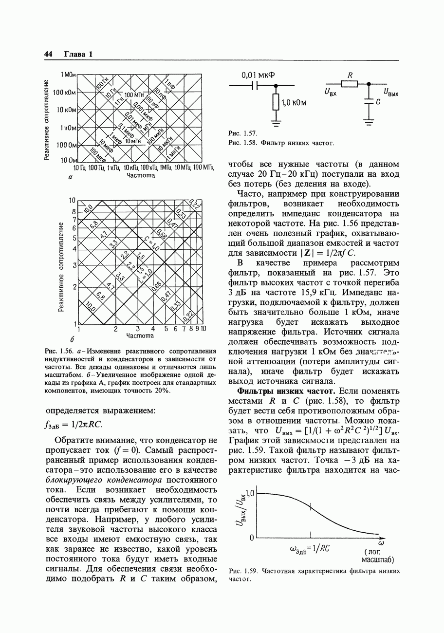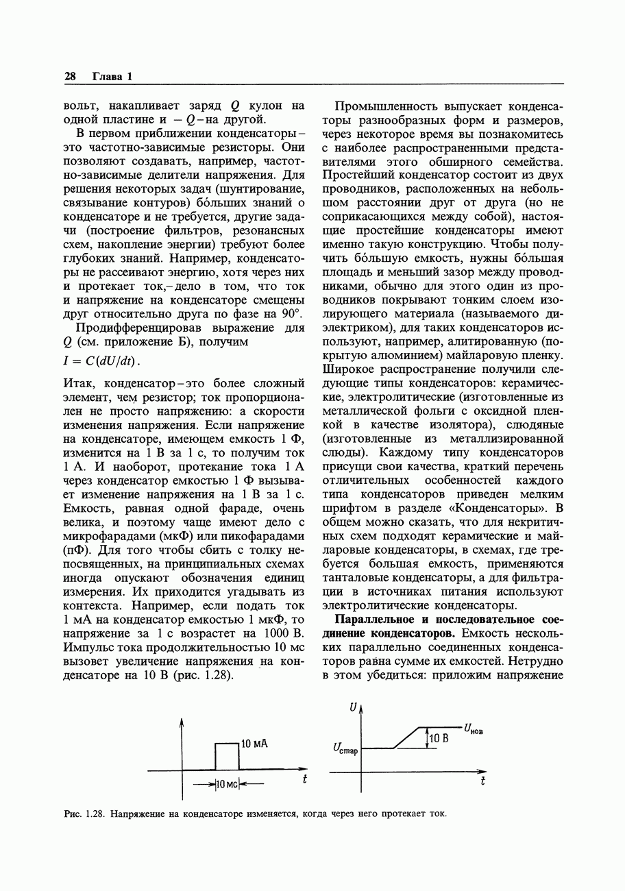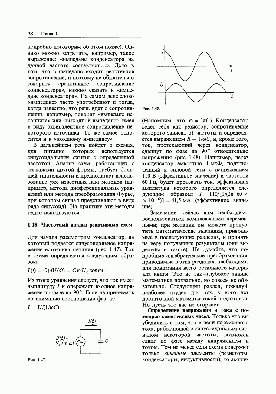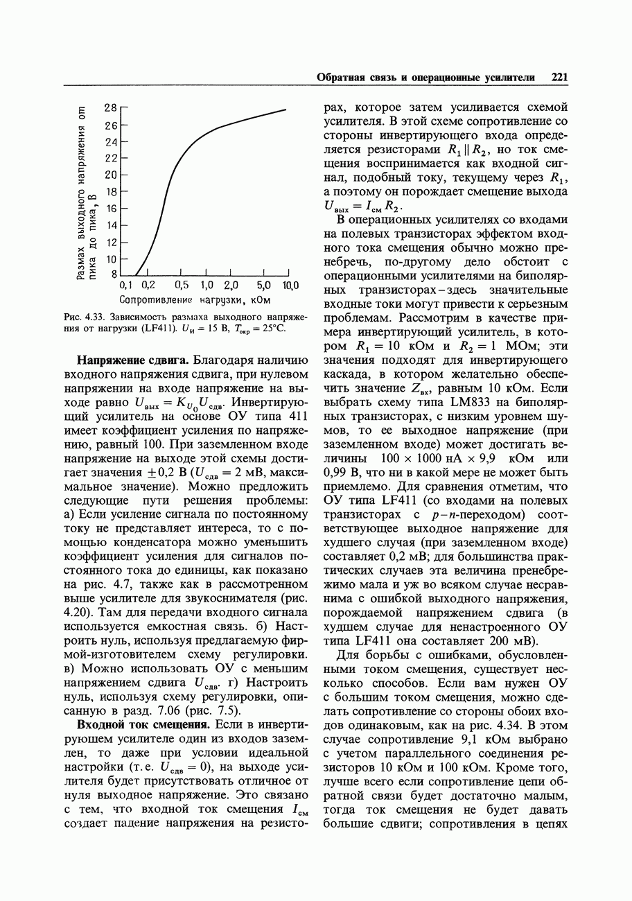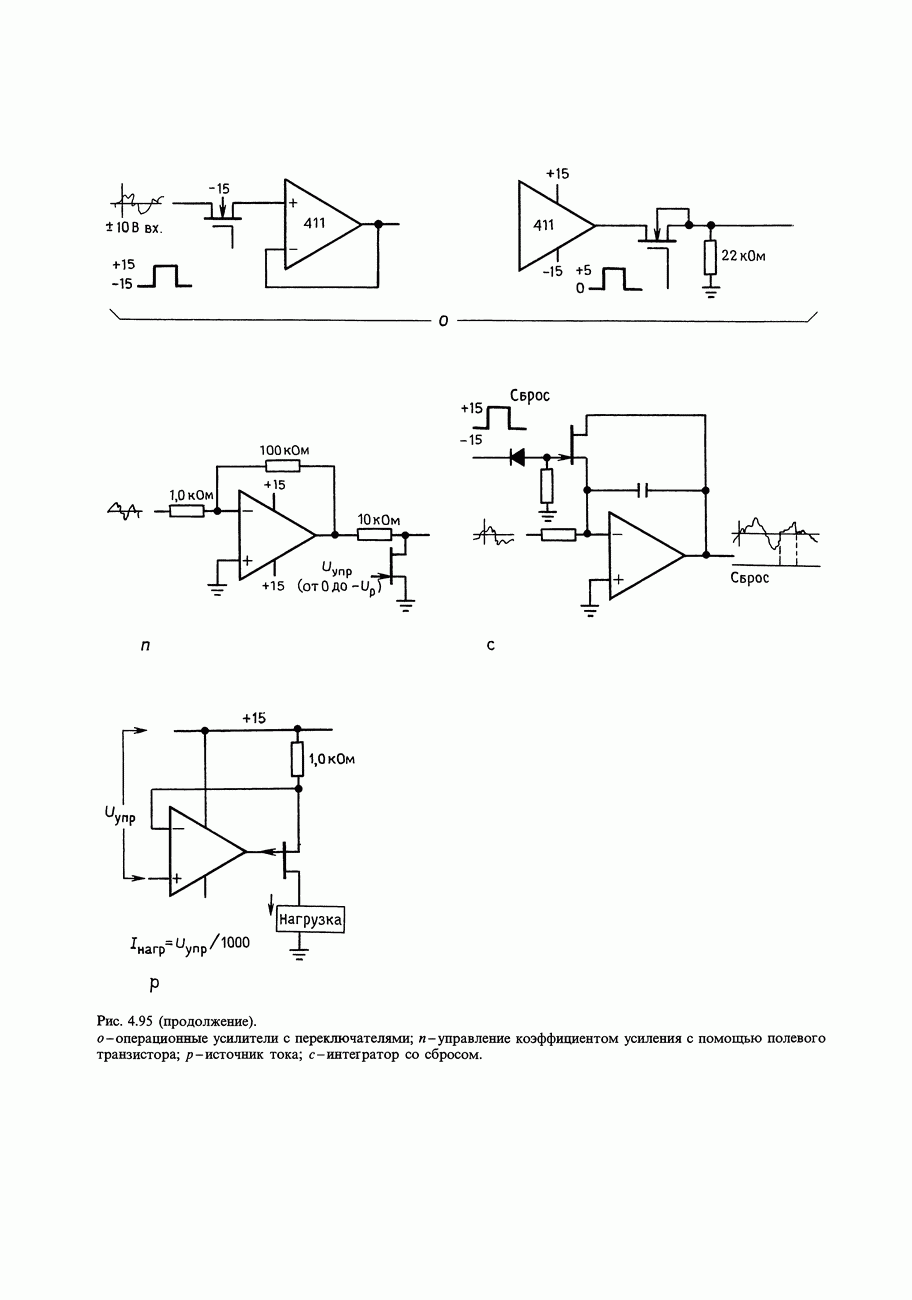Во-первых, полевым транзисторам отдают предпочтение перед биполярными, когда хотят получить очень малый входной ток; при этом емкостные токи при тех же величинах емкостей принимают более угрожающие размеры. Во-вторых, полевые транзисторы часто имеют значительно более высокие значения емкостей, чем эквивалентные биполярные. Чтобы оценить емкостный эффект, рассмотрим усилитель на ПТ, предназначенный для работы с источником сигнала, имеющим сопротивление 100 кОм. Что касается постоянного тока, то здесь нет проблем, так как ток, равный пикоамперу, создает на внутреннем сопротивлении указанного источника падение напряжения всего в микровольт. Однако на частоте, скажем, 1 МГц входная емкость в В качестве еще одного примера представим себе переключение