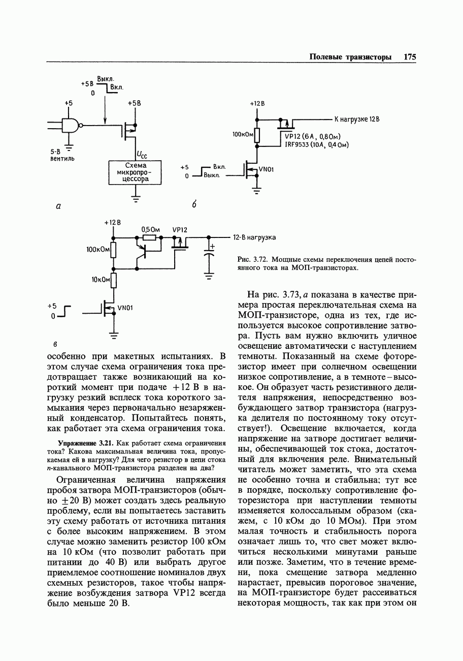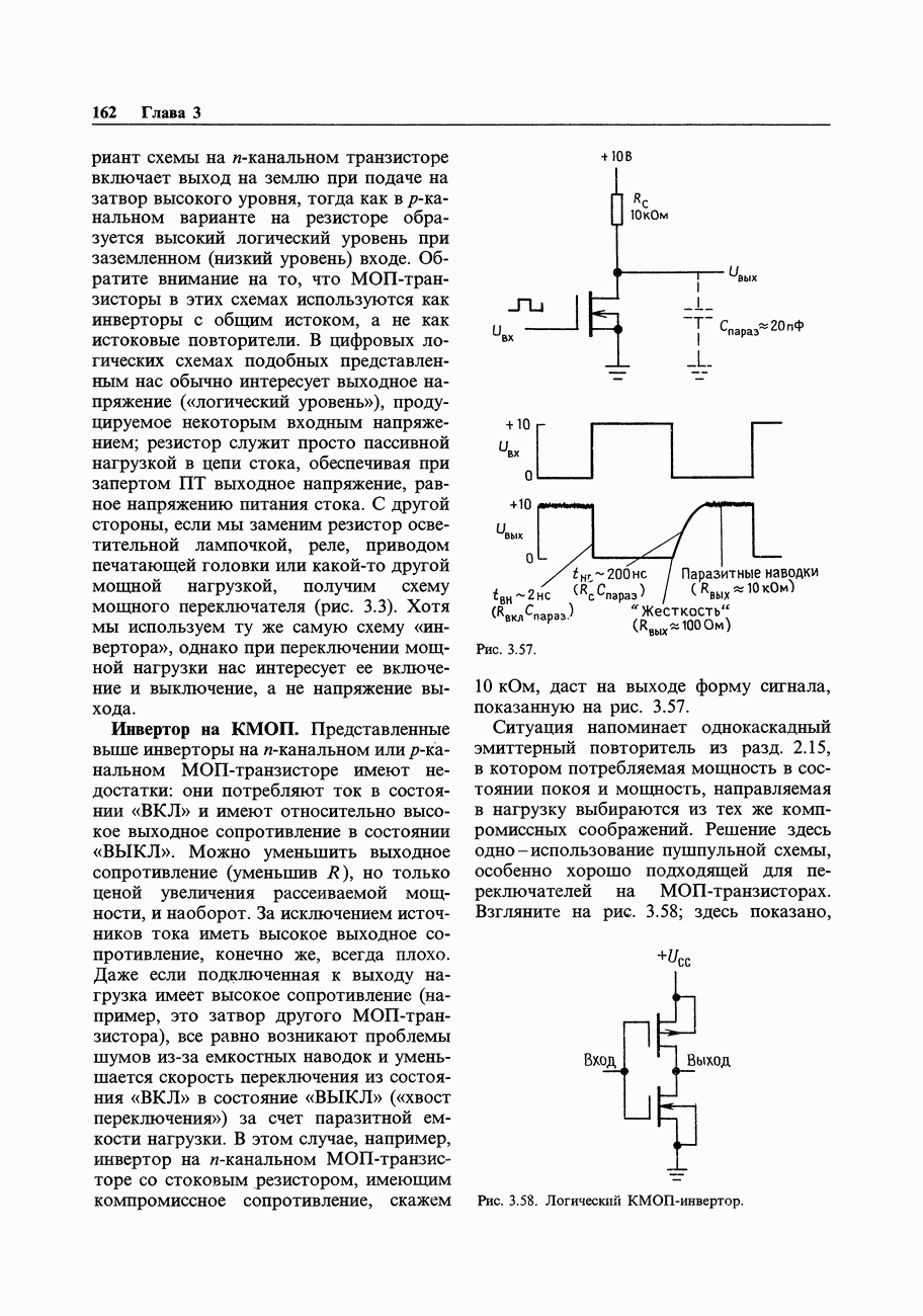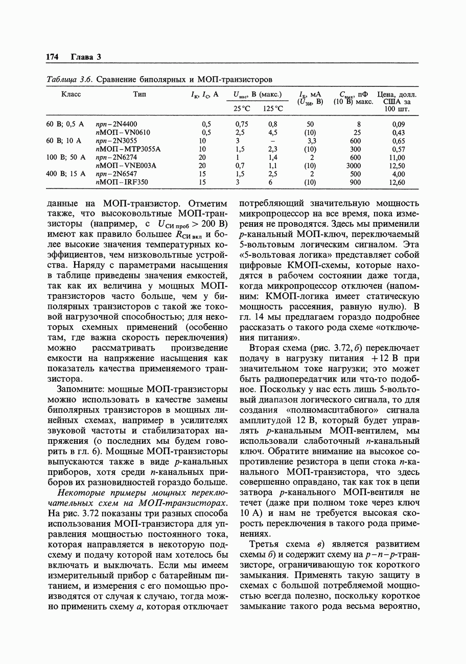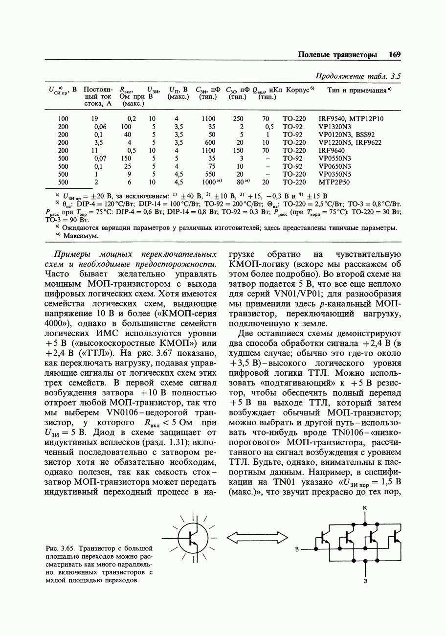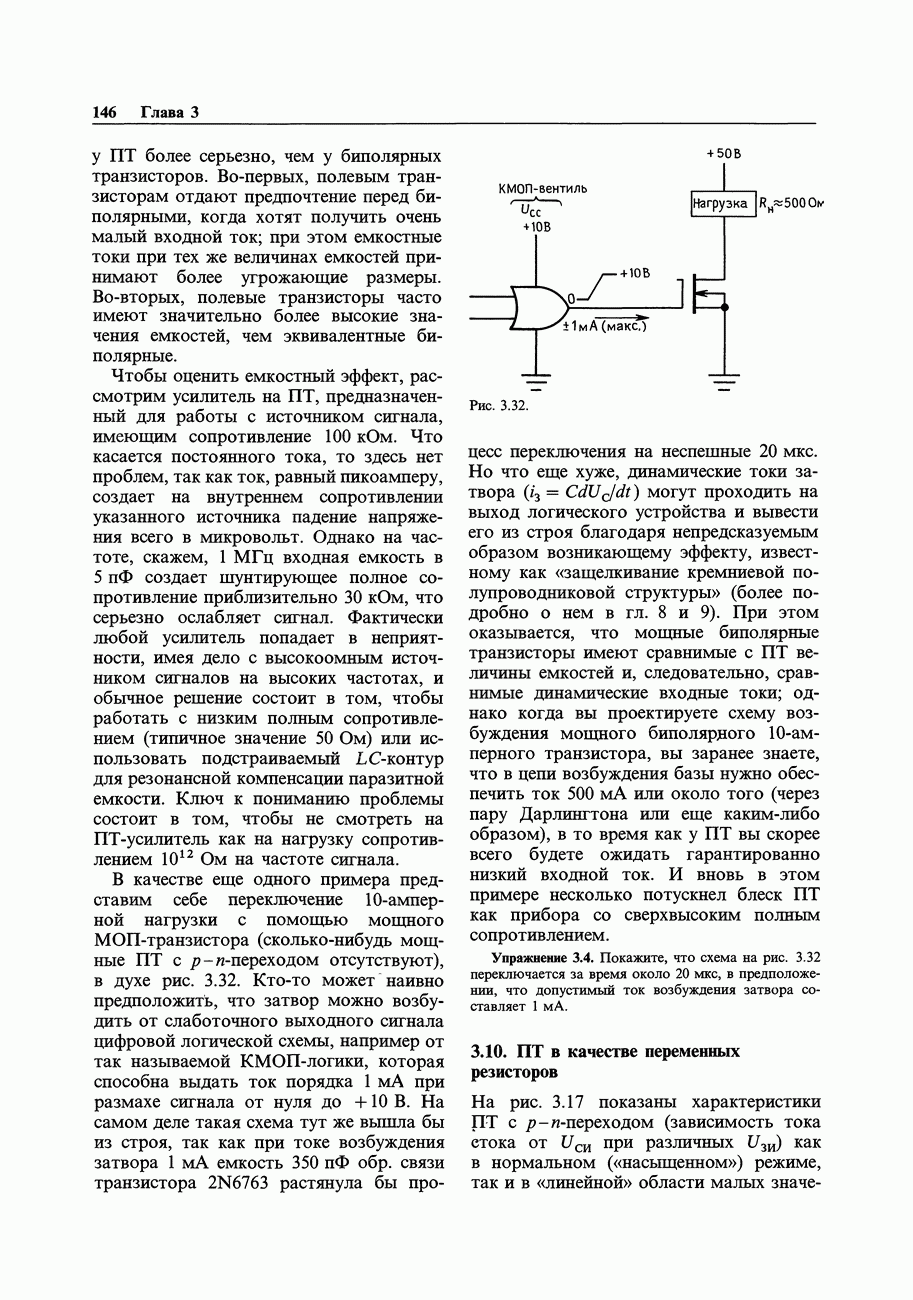 Рис. 3.32. При этом оказывается, что мощные биполярные транзисторы имеют сравнимые с ПТ величины емкостей и, следовательно, сравнимые динамические входные токи; однако когда вы проектируете схему возбуждения мощного бипо лярд ого Упражнение 3.4. Покажите, что схема на рис. 3.32 переключается за время около