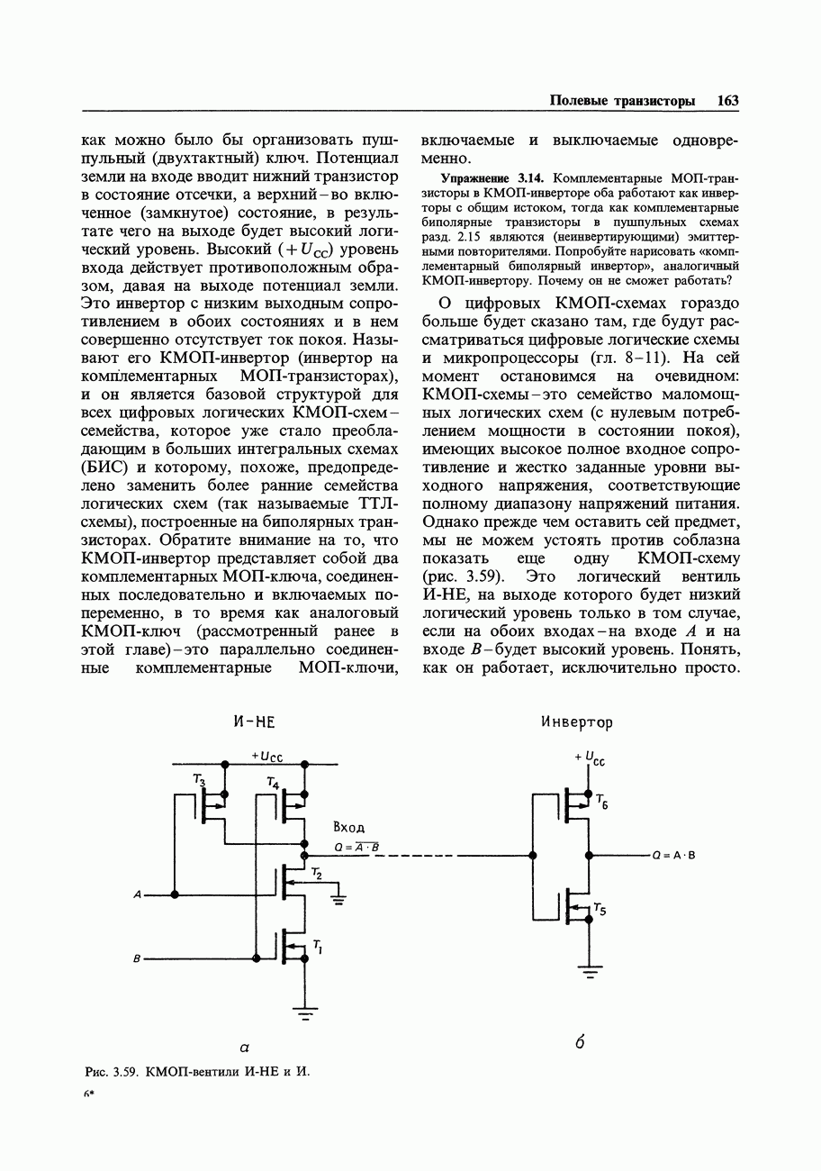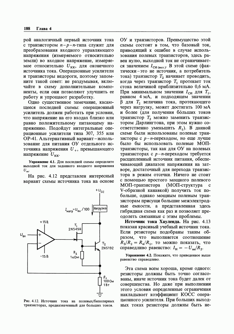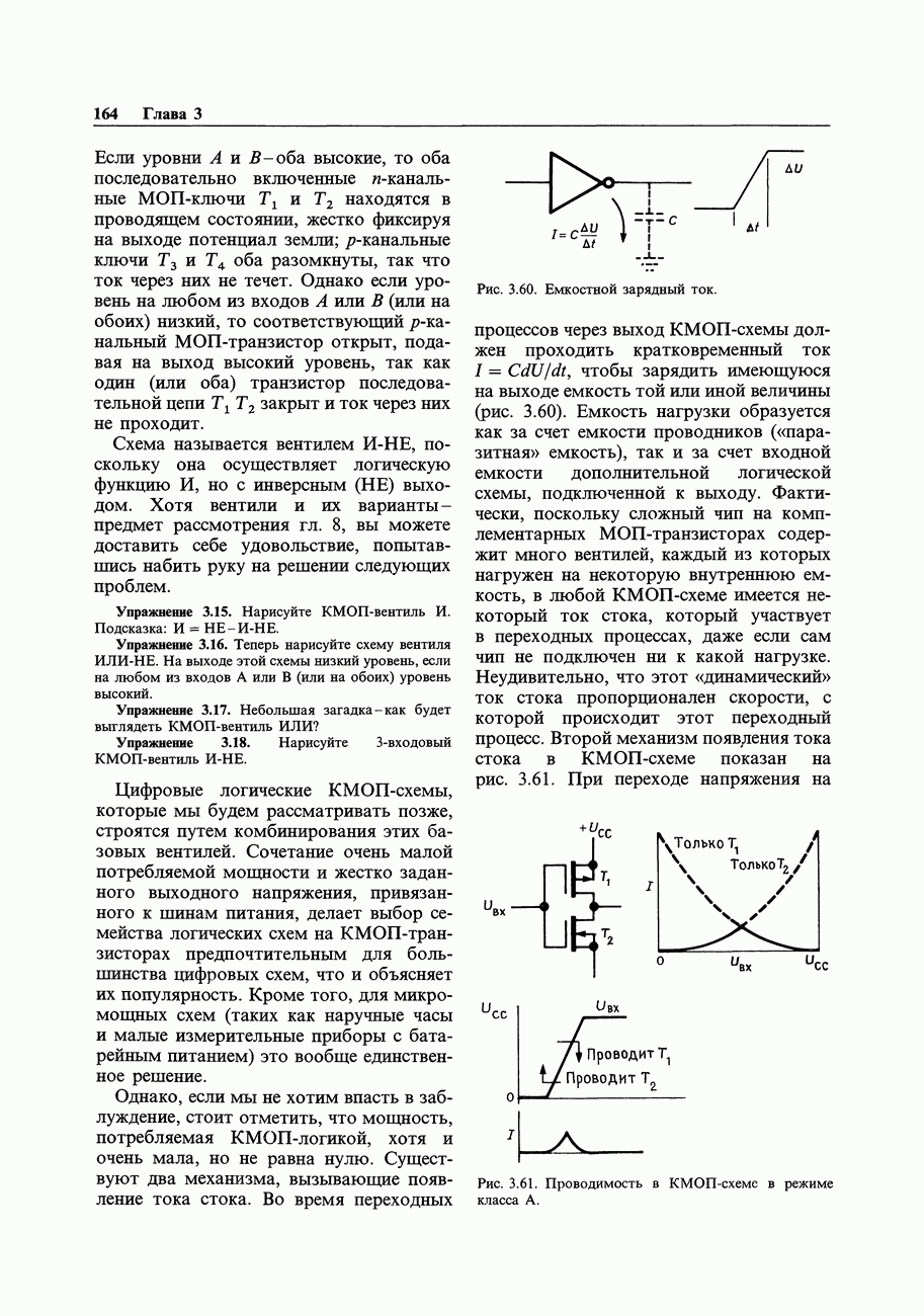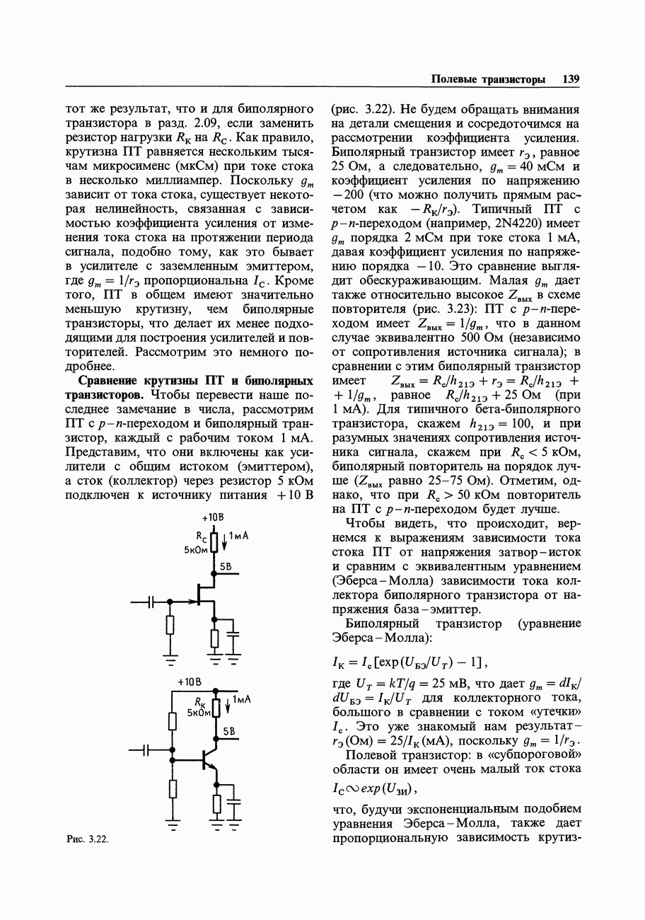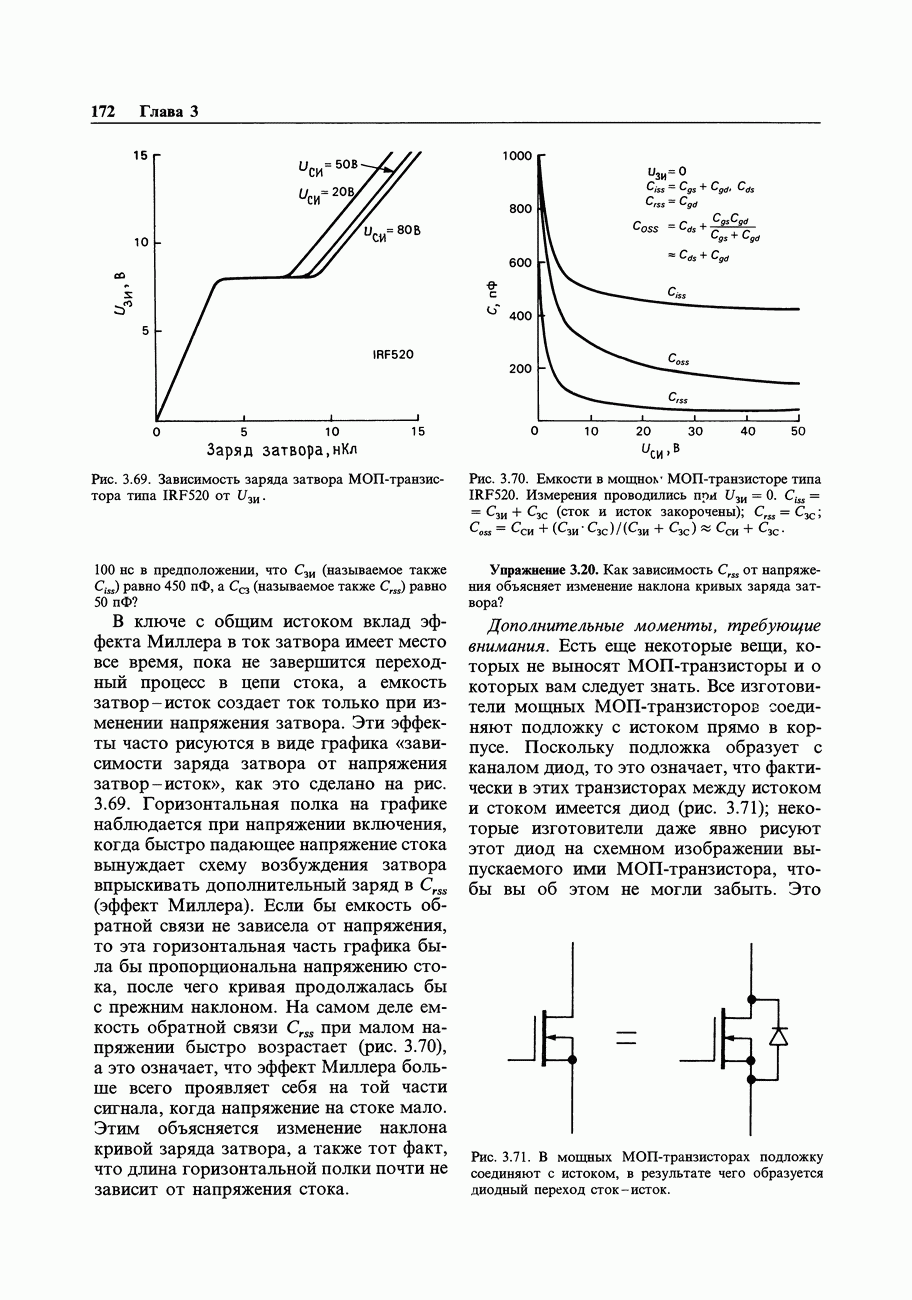 Рис. 3.32. При этом оказывается, что мощные биполярные транзисторы имеют сравнимые с ПТ величины емкостей и, следовательно, сравнимые динамические входные токи; однако когда вы проектируете схему возбуждения мощного бипо лярд ого Упражнение 3.4. Покажите, что схема на рис. 3.32 переключается за время около
