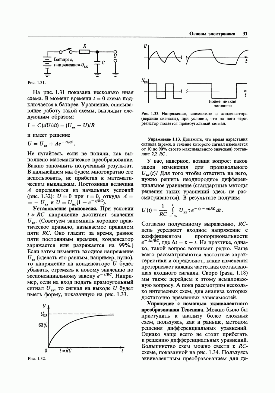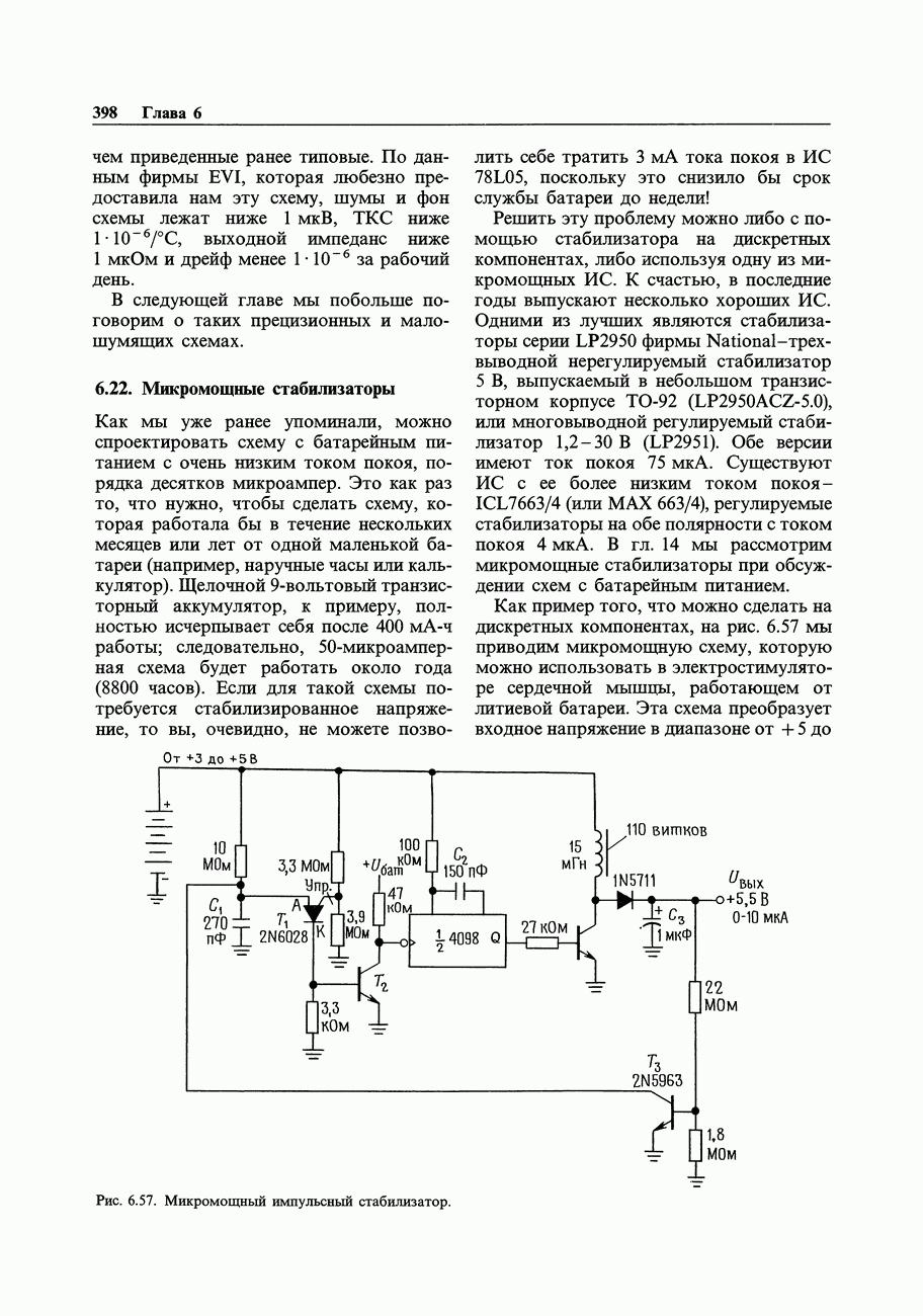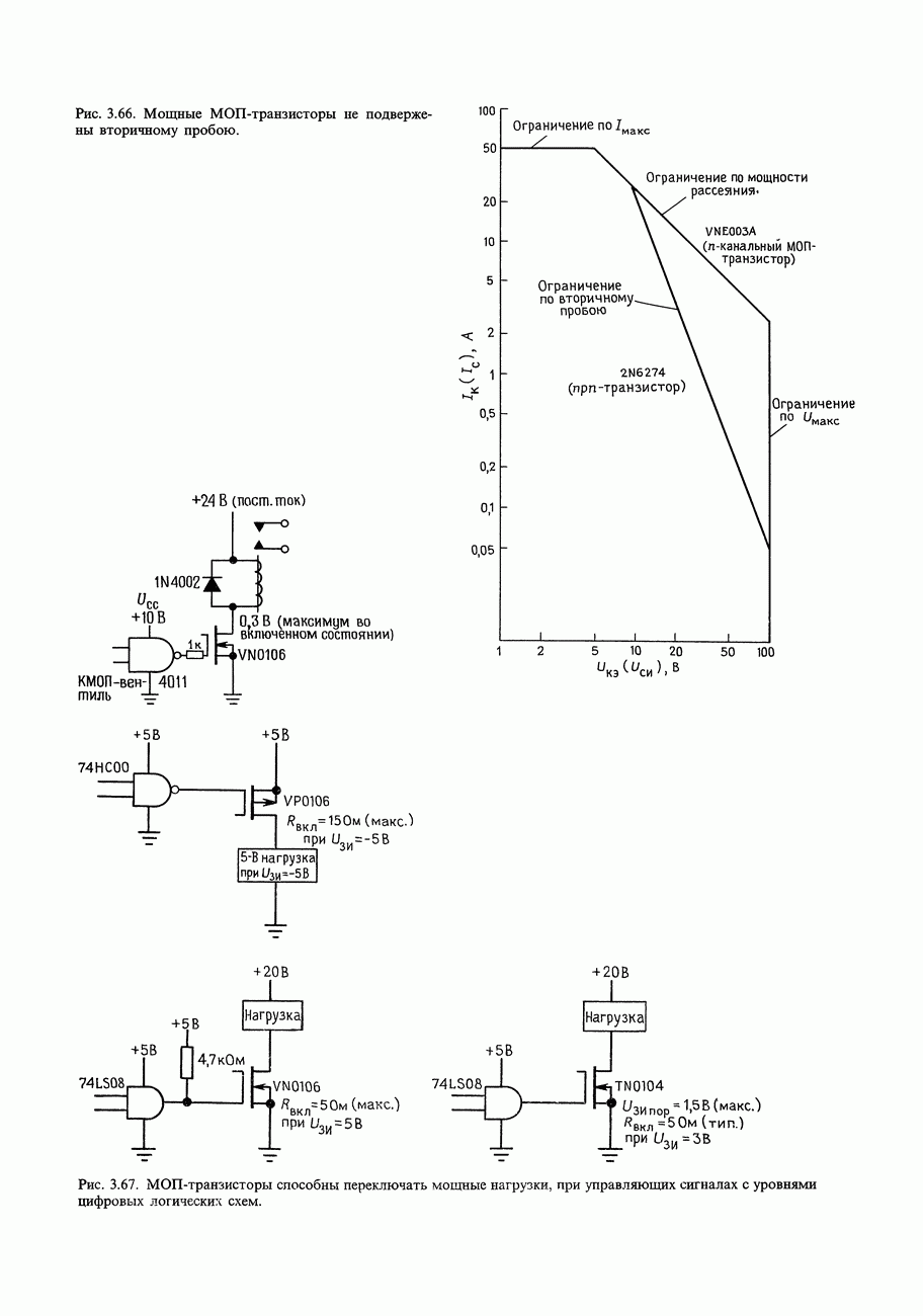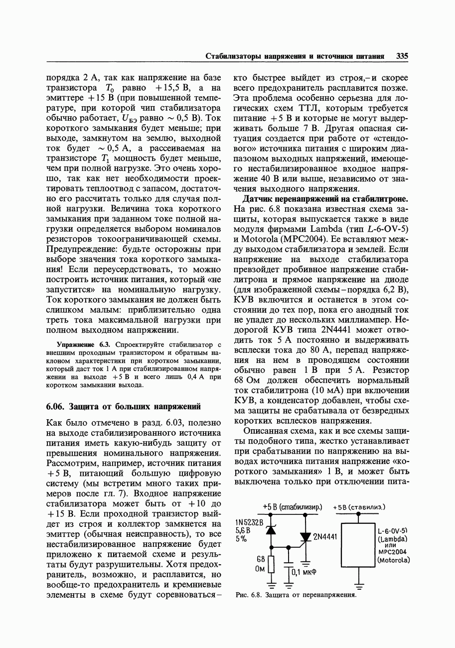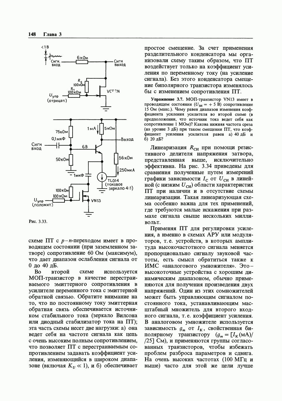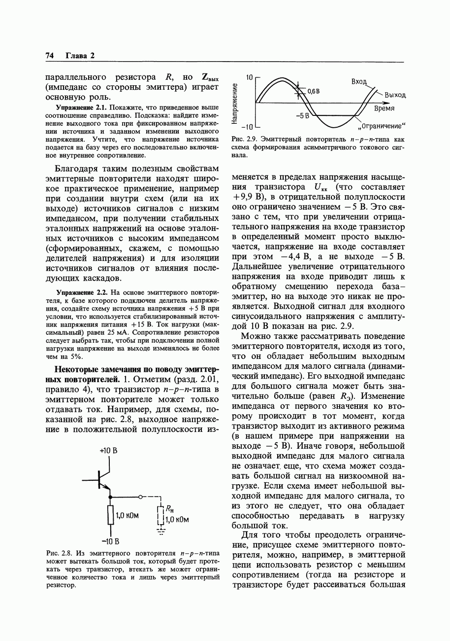 Рис. 3.32. При этом оказывается, что мощные биполярные транзисторы имеют сравнимые с ПТ величины емкостей и, следовательно, сравнимые динамические входные токи; однако когда вы проектируете схему возбуждения мощного бипо лярд ого Упражнение 3.4. Покажите, что схема на рис. 3.32 переключается за время около