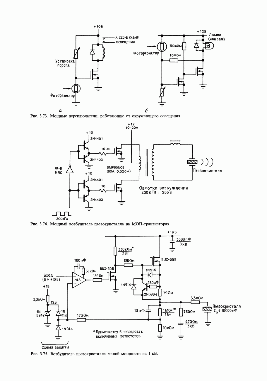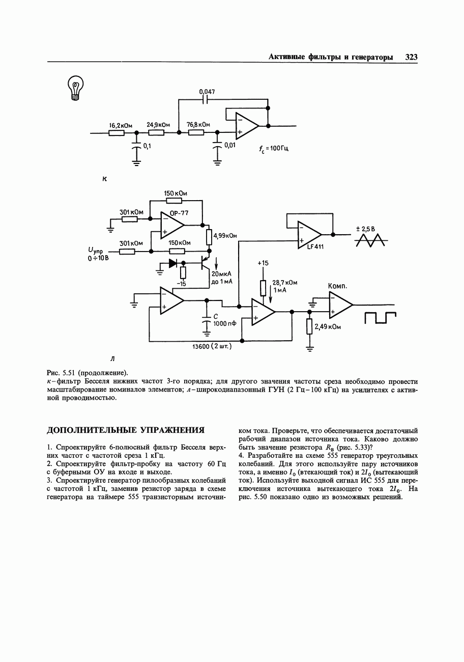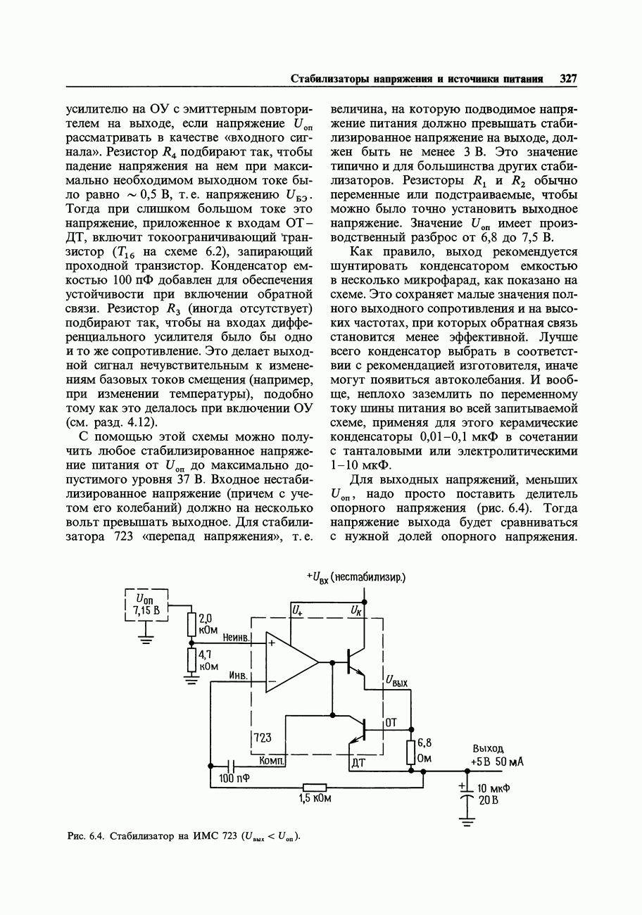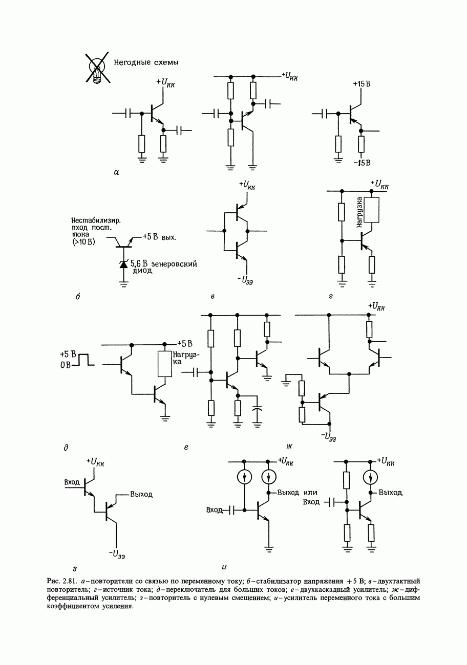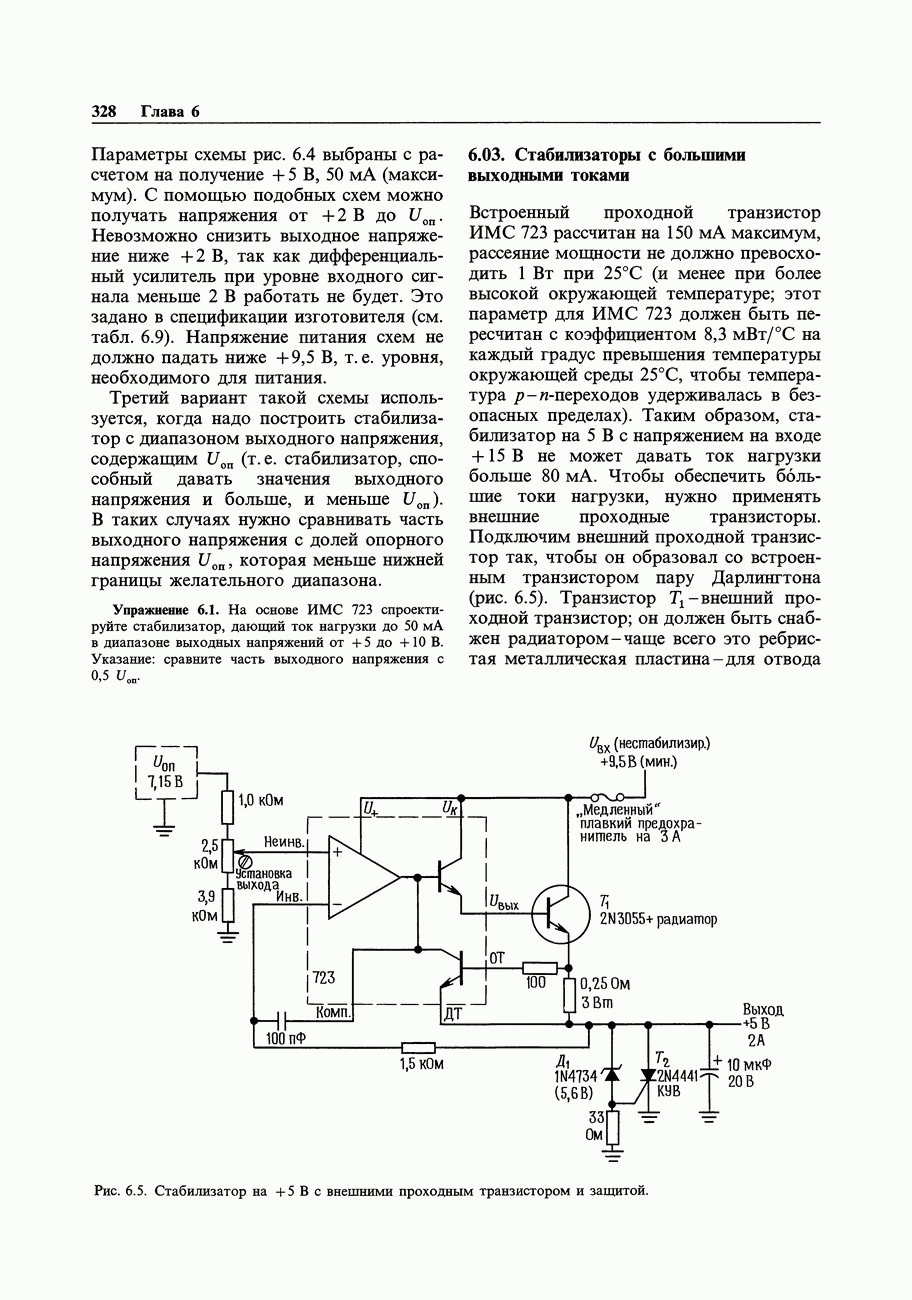 Рис. 3.32. При этом оказывается, что мощные биполярные транзисторы имеют сравнимые с ПТ величины емкостей и, следовательно, сравнимые динамические входные токи; однако когда вы проектируете схему возбуждения мощного бипо лярд ого Упражнение 3.4. Покажите, что схема на рис. 3.32 переключается за время около