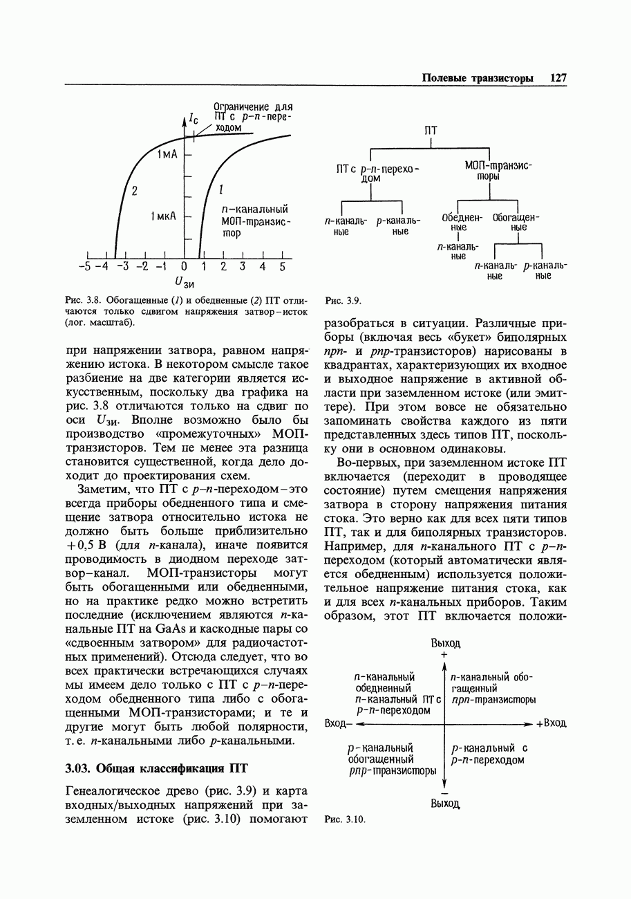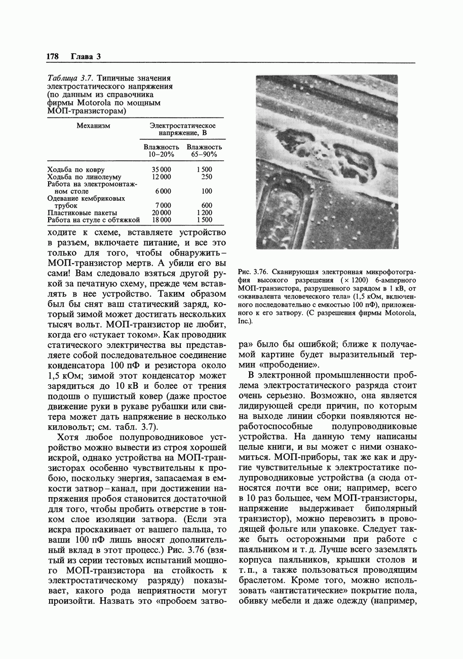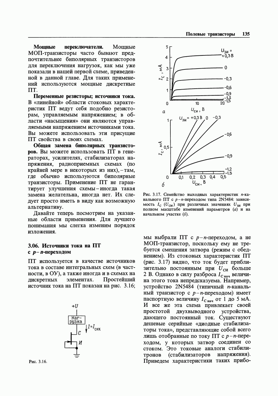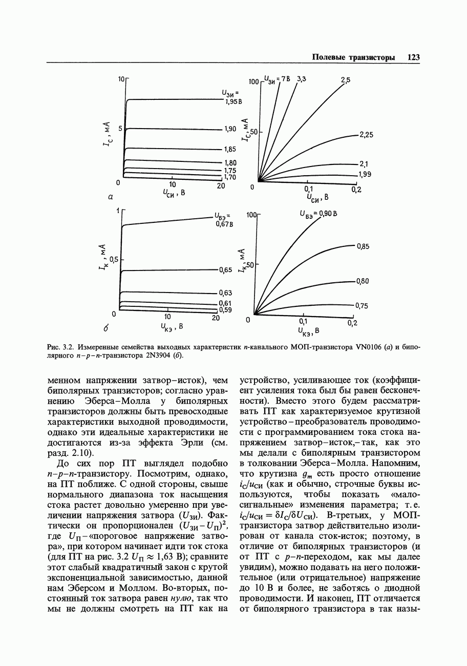 3.09. Ток затвора ПТМы уже говорили вначале, что ПТ вообще и МОП-транзисторы в особенности имеют практически нулевой ток затвора. Это, возможно, наиболее важное свойство ПТ и оно использовалось в описанных в предыдущем разделе высокоомных усилителях и повторителях. Существенным оно будет и в тех применениях, о которых речь впереди - самые существенные из них аналоговые ключи и цифровые логические схемы. Разумеется, при пристальном рассмотрении мы увидим, что какой-то ток через затвор все же течет. Это важно знать, поскольку наивная модель с нулевым током гарантирует, что раньше или позже, но вы ошибетесь. Фактически к возникновению конечного (ненулевого) тока затвора приводит ряд механизмов. Даже у МОП-транзисторов изоляция затвора (двуокись кремния), несовершенна, что приводит к токам утечки, находящимся в пикоамперном диапазоне. У ПТ с В большинстве случаев входной ток затвора пренебрежимо мал в сравнении с током базы биполярного транзистора. Есть, однако, ситуации, когда ПТ может фактически иметь более высокий входной ток! Рассмотрим ряд из них. Утечка затвора. Полное входное напряжение усилителя (или повторителя) на ПТ на низких частотах ограничено утечкой затвора. В паспорте ПТ обычно указывается напряжение пробоя
